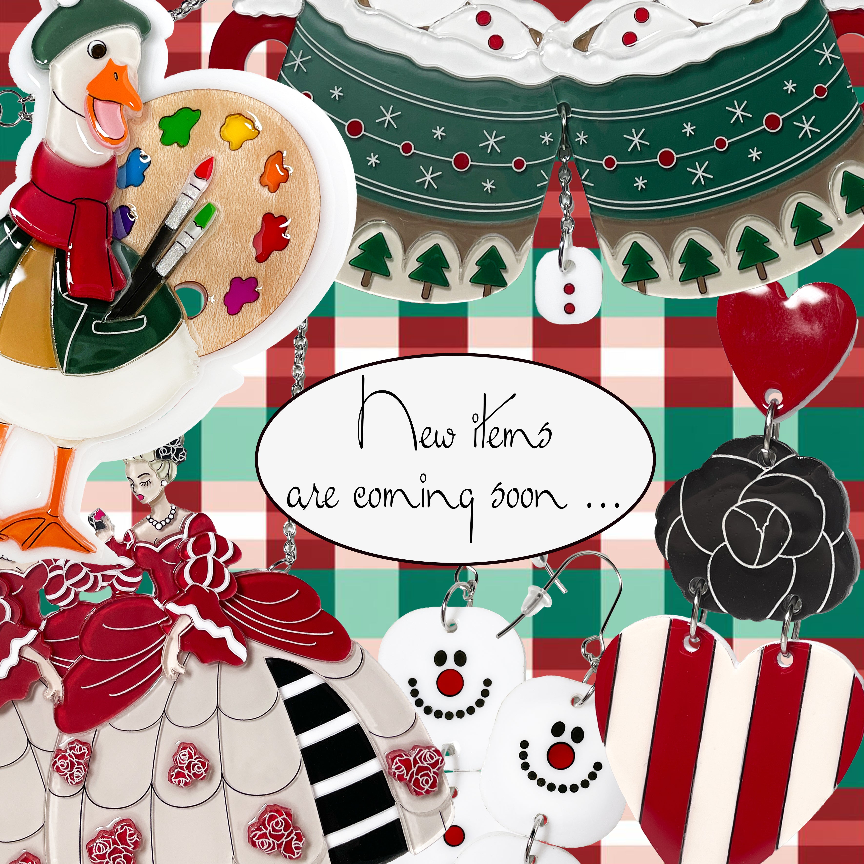 We produce handmade brooches, earrings and necklaces etc. Every item has its own distinction to make the wearer feel special. Our unique accessories are mostly made from a variety of paints, quality acrylic plates and resin, which, when mixed with other materials such as Japanese paper, Origami, wood, yarn and fur, create special art items. Due to the limited number of materials and blended paints, all products are not available for continued sale.
