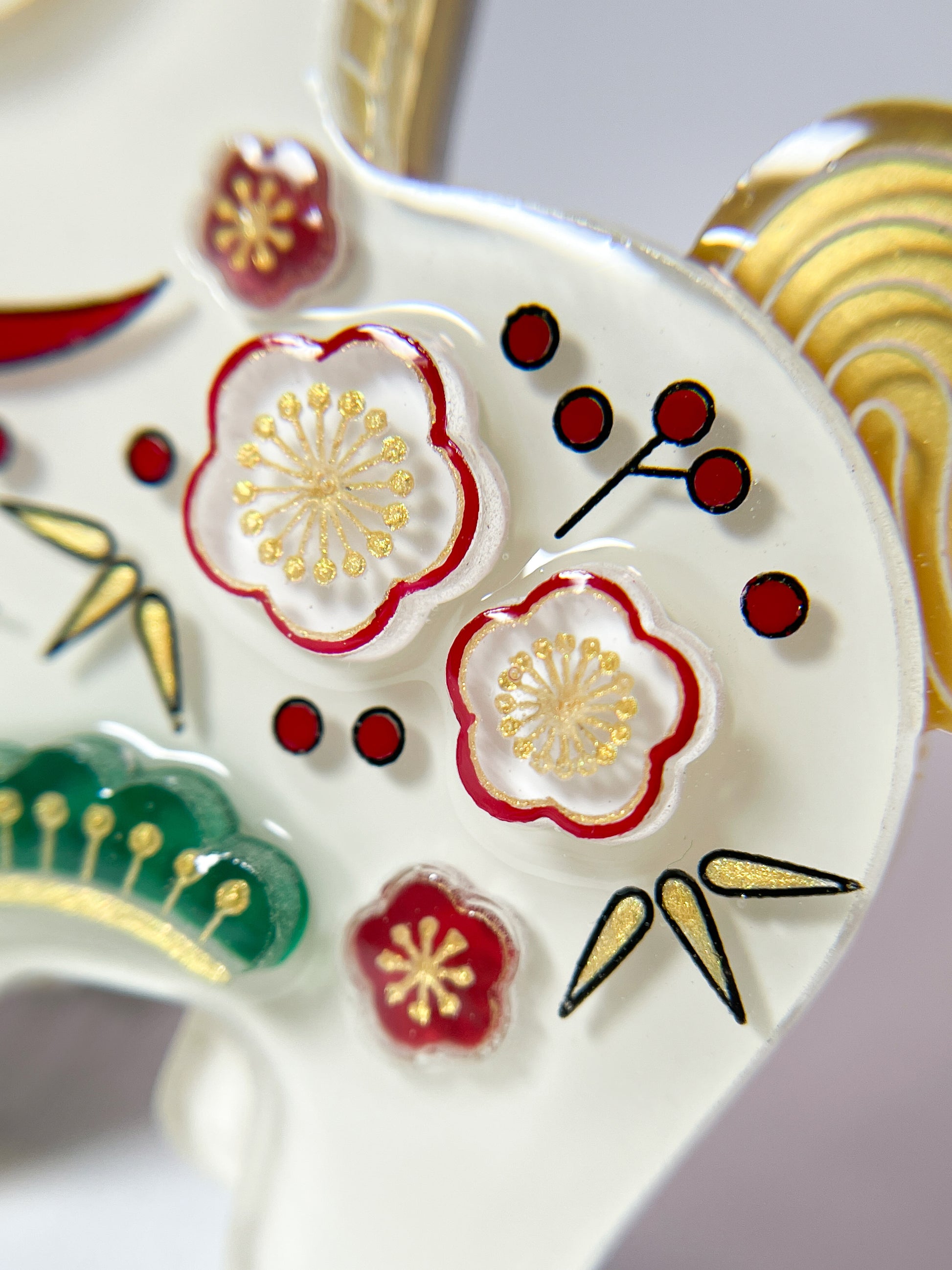 Handgefertigte Acrylbrosche, hergestellt in Japan.