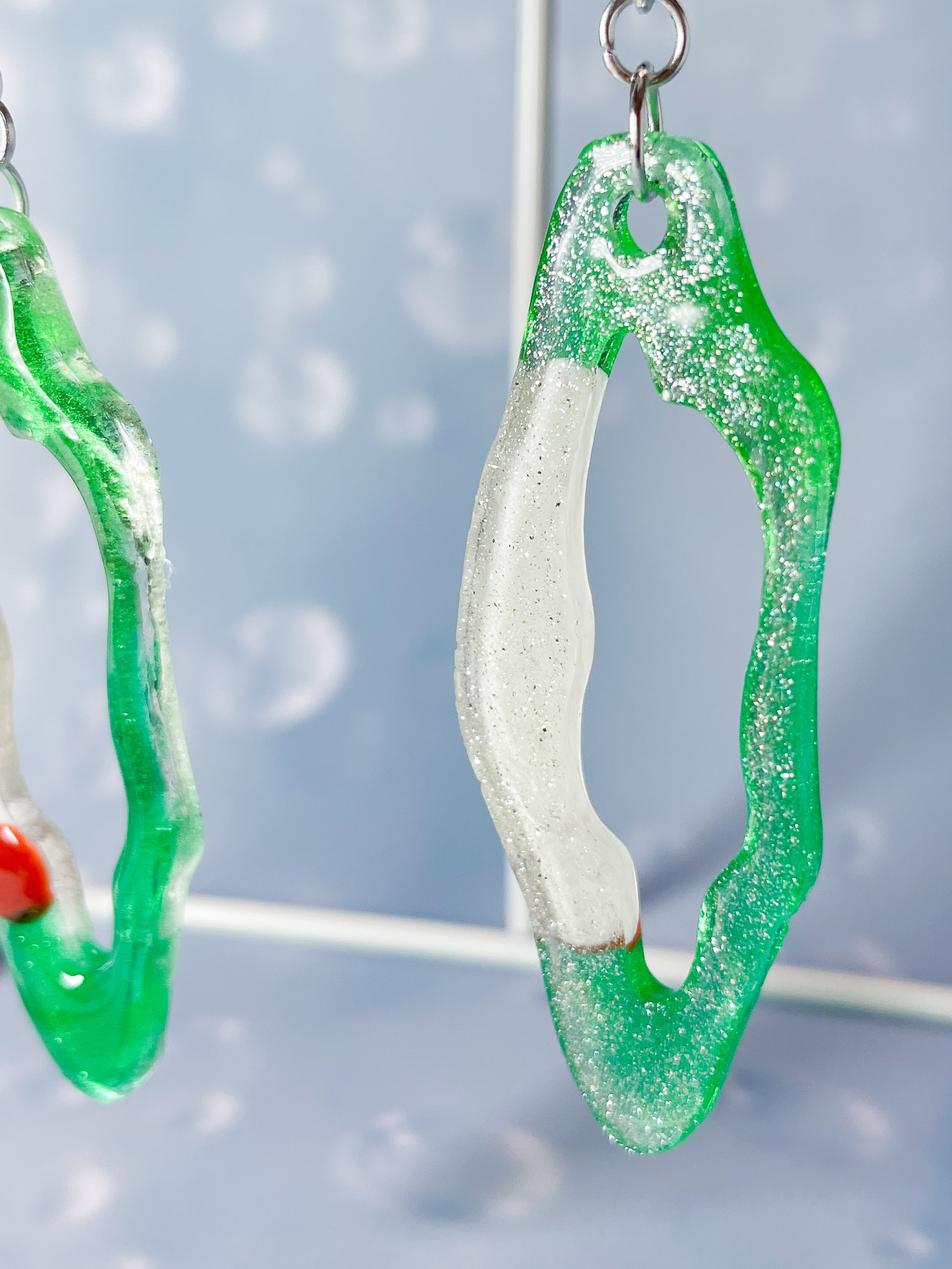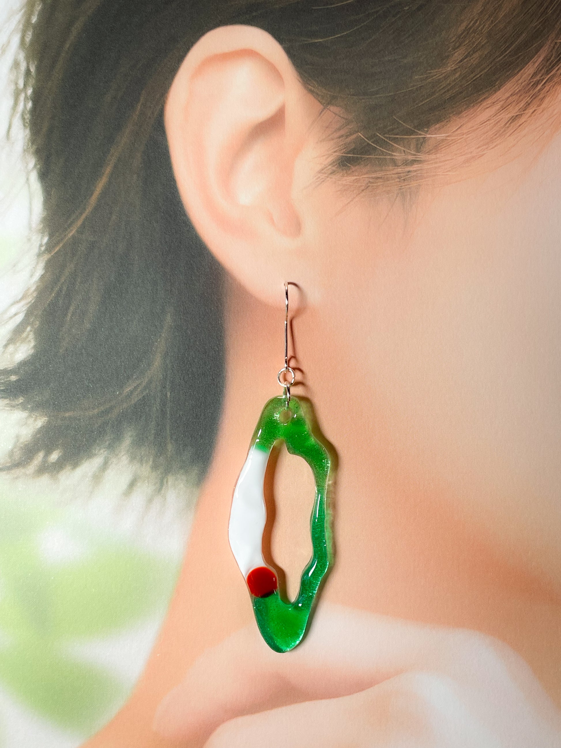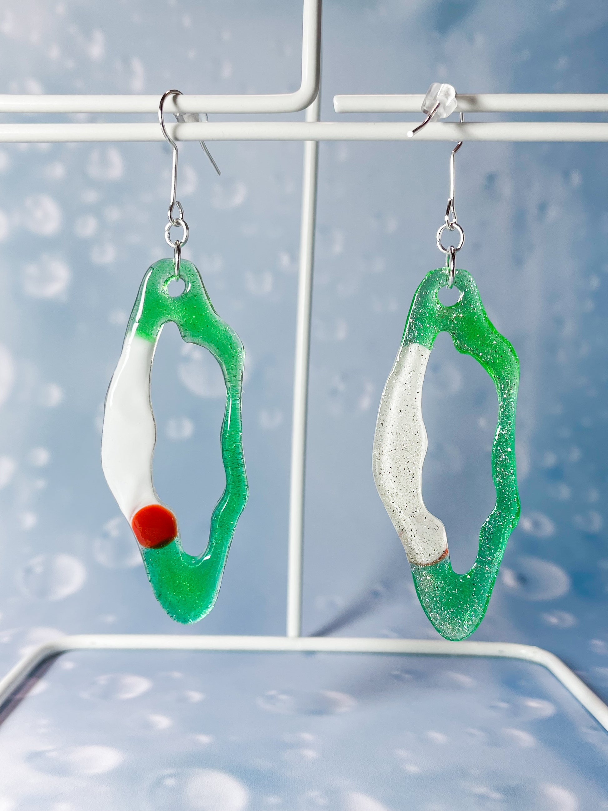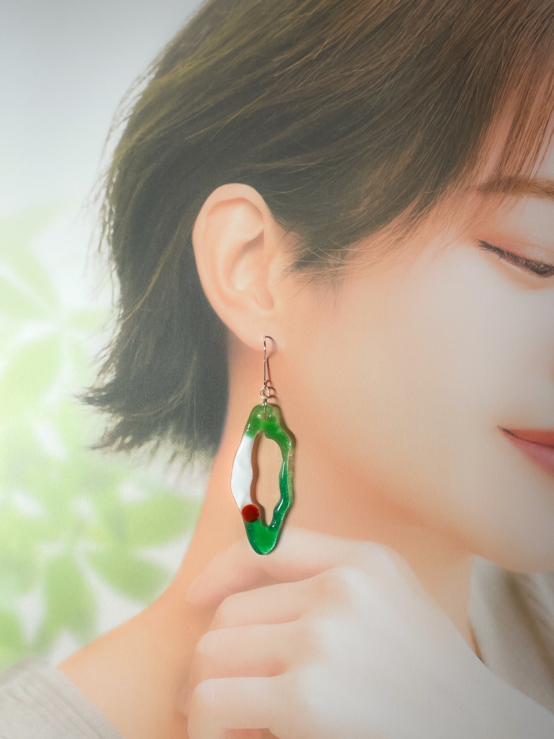 Those earrings are made from 2 pieces of acrylic plates, hand-painted and coated with acrylic UV/LED resin and finished with hypoallergenic silver hooks.