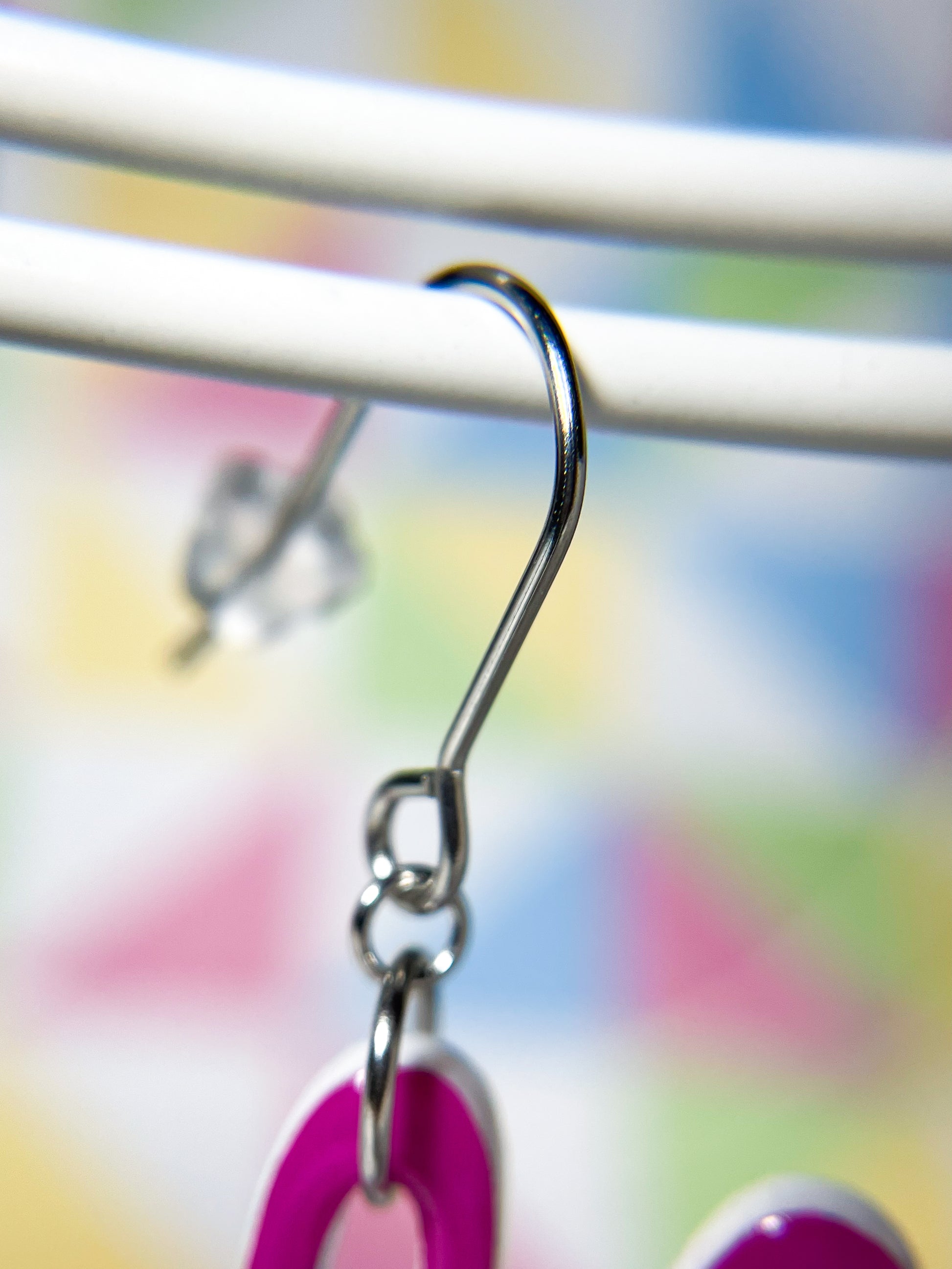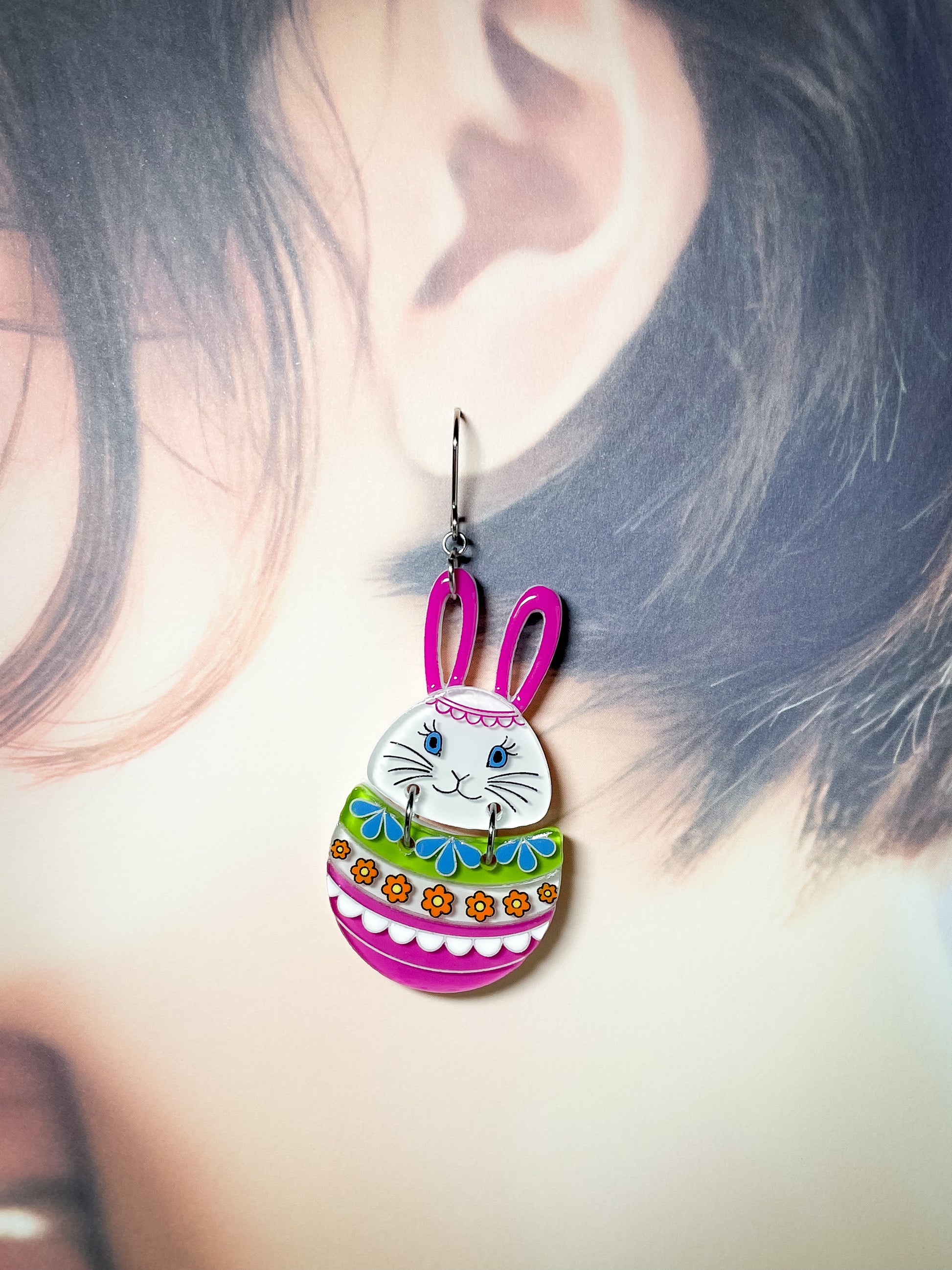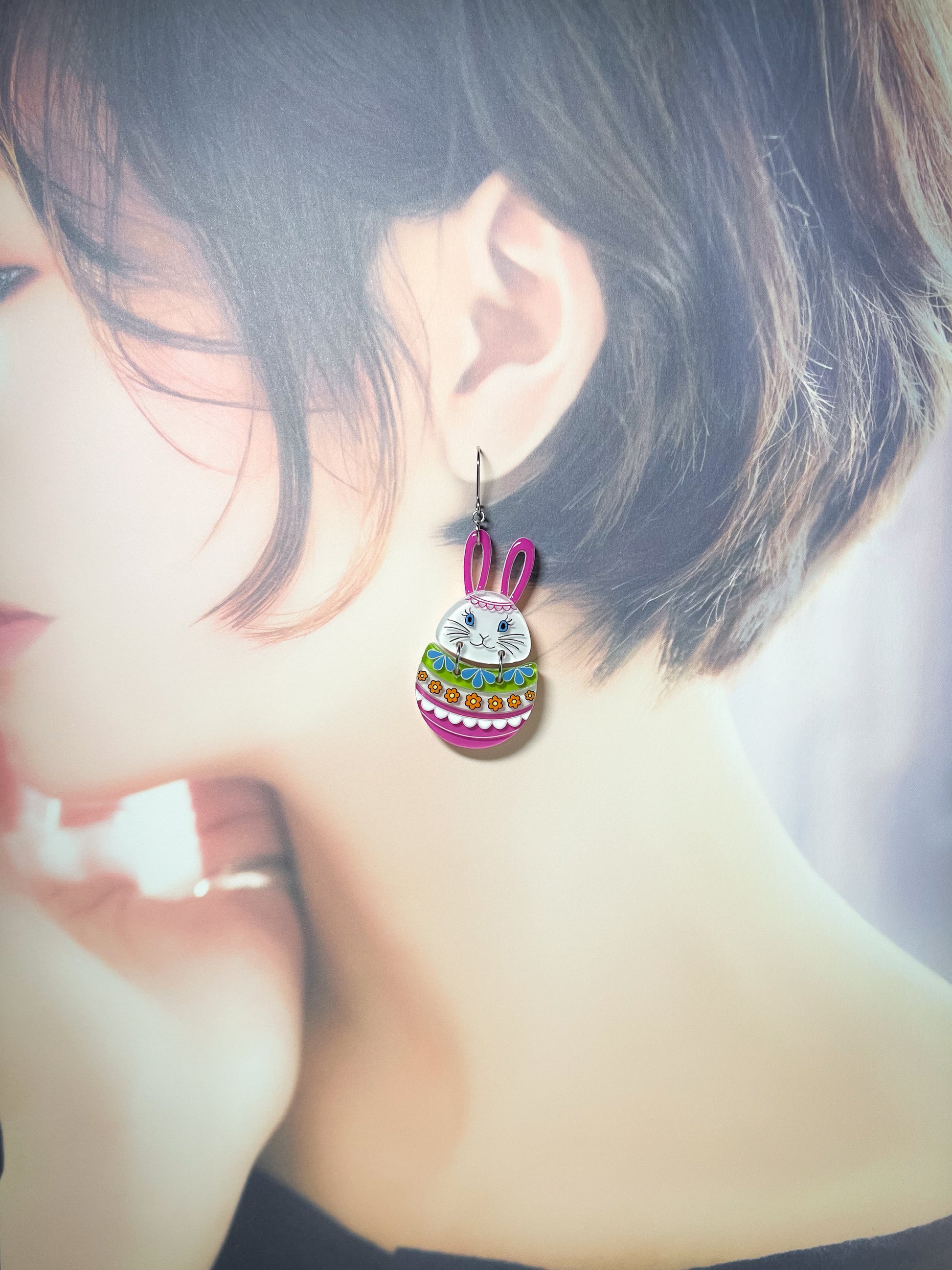 These earrings are made from 12 pieces of acrylic plates, hand-painted and coated with acrylic UV/LED resin and finished with surgical stainless steel silver hooks.