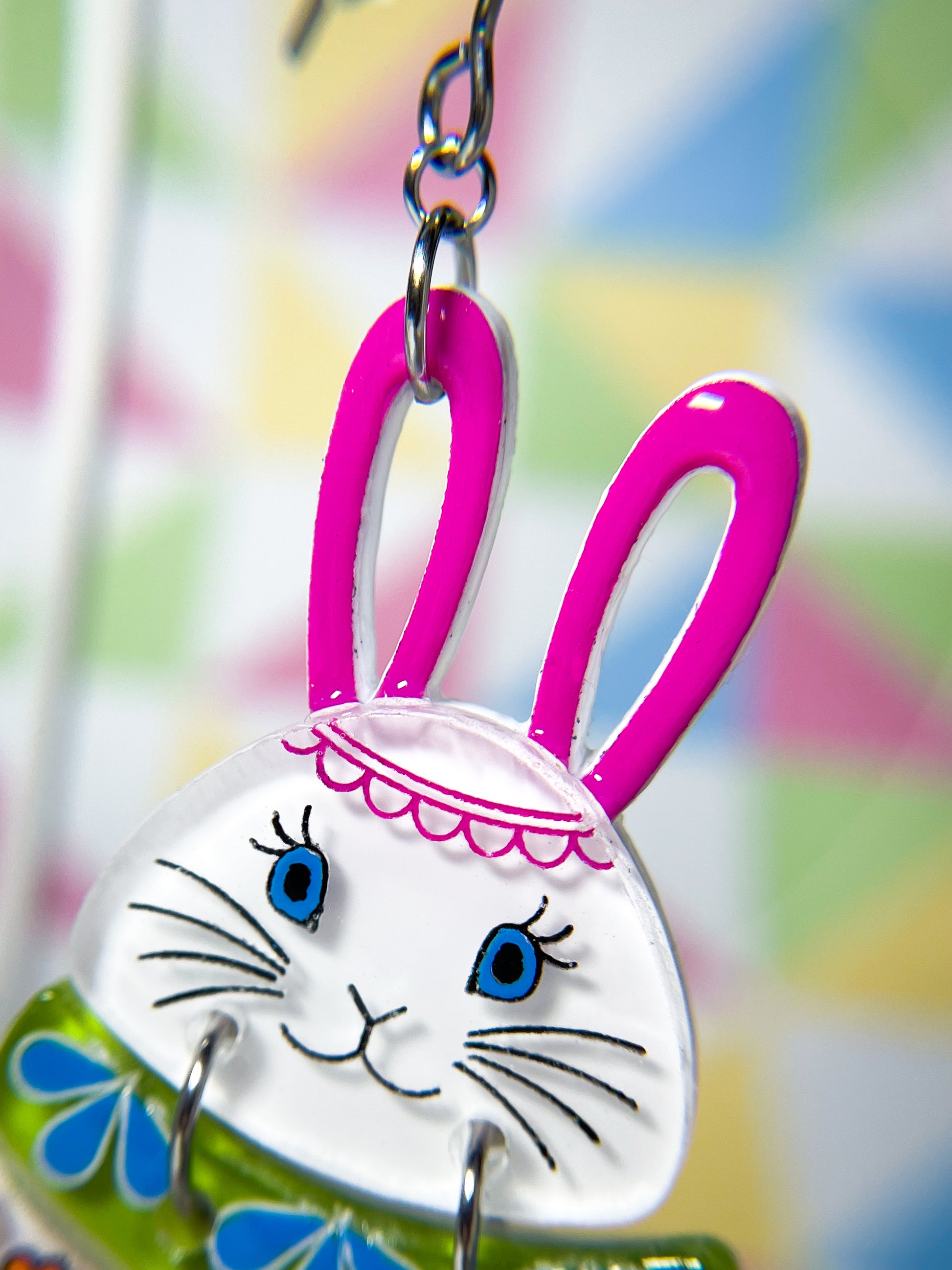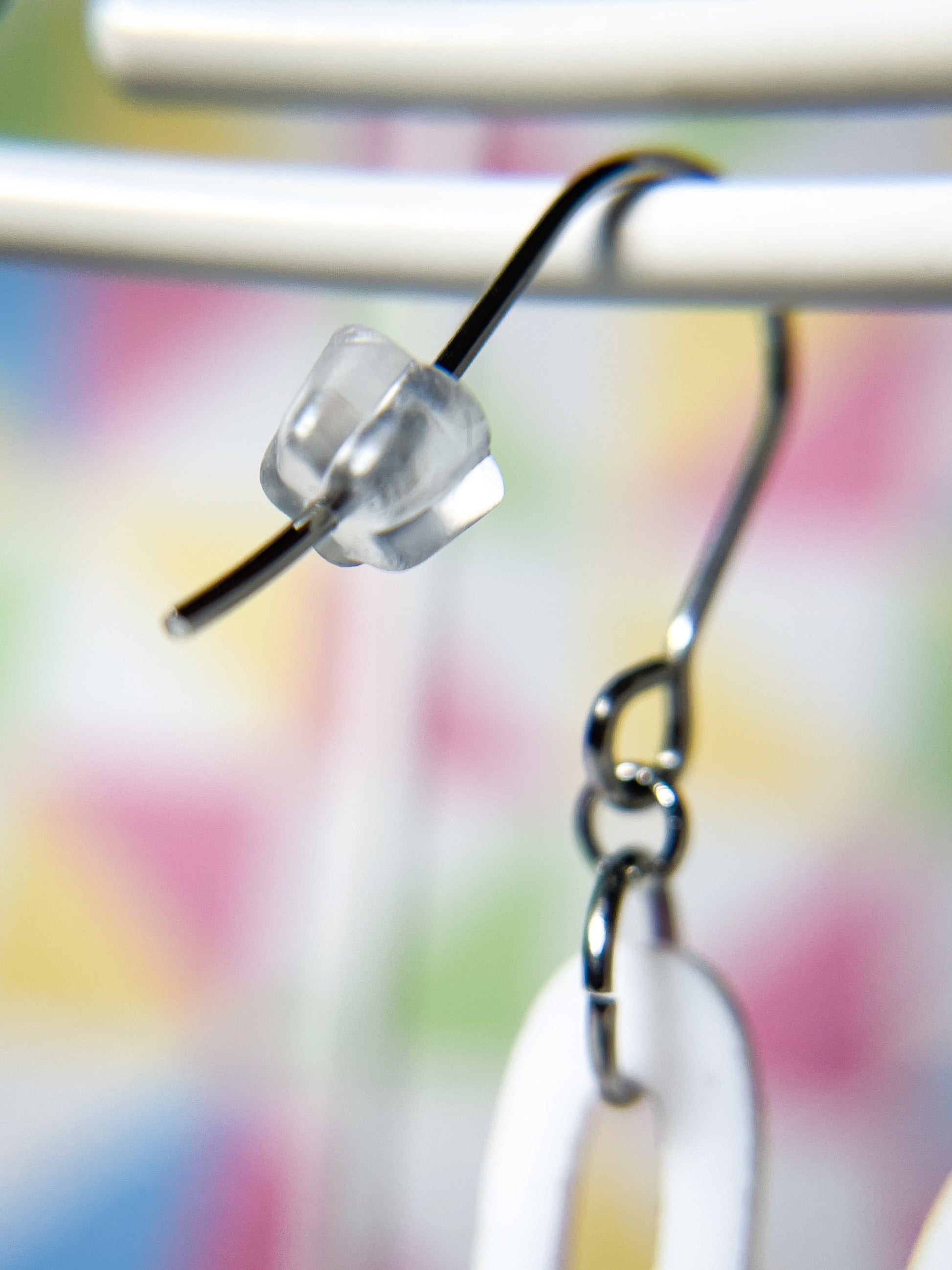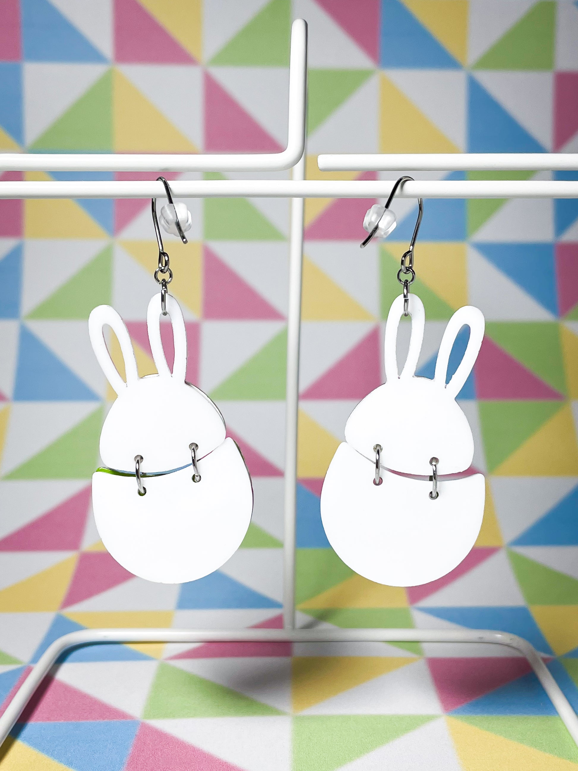 These earrings are made from 12 pieces of acrylic plates, hand-painted and coated with acrylic UV/LED resin and finished with surgical stainless steel silver hooks.