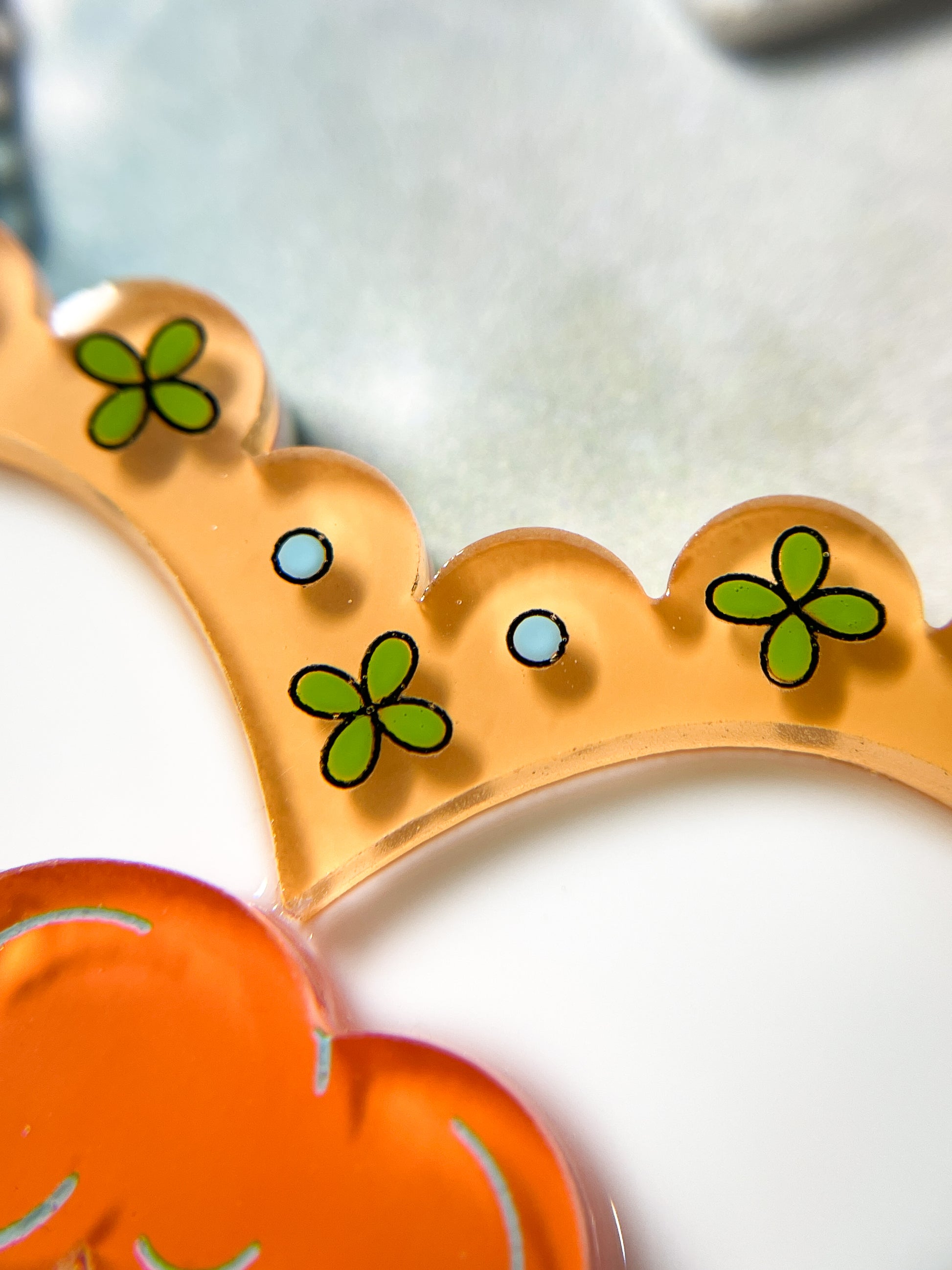 This necklace is made from 15 pieces of hand-painted acrylic plates, assembled and coated with acrylic UV/LED resin and finished with a silver surgical stainless steel chain with an extender.
