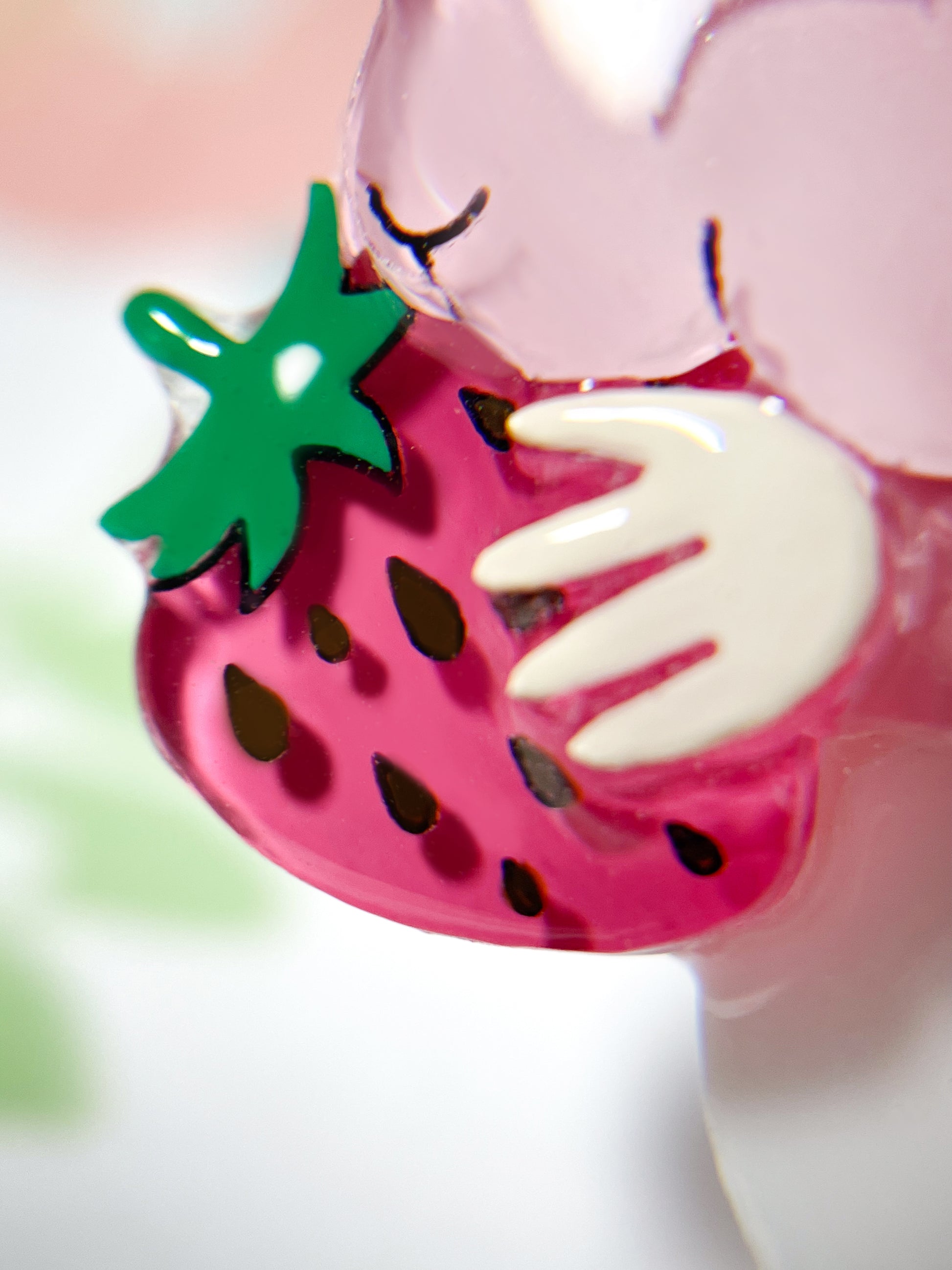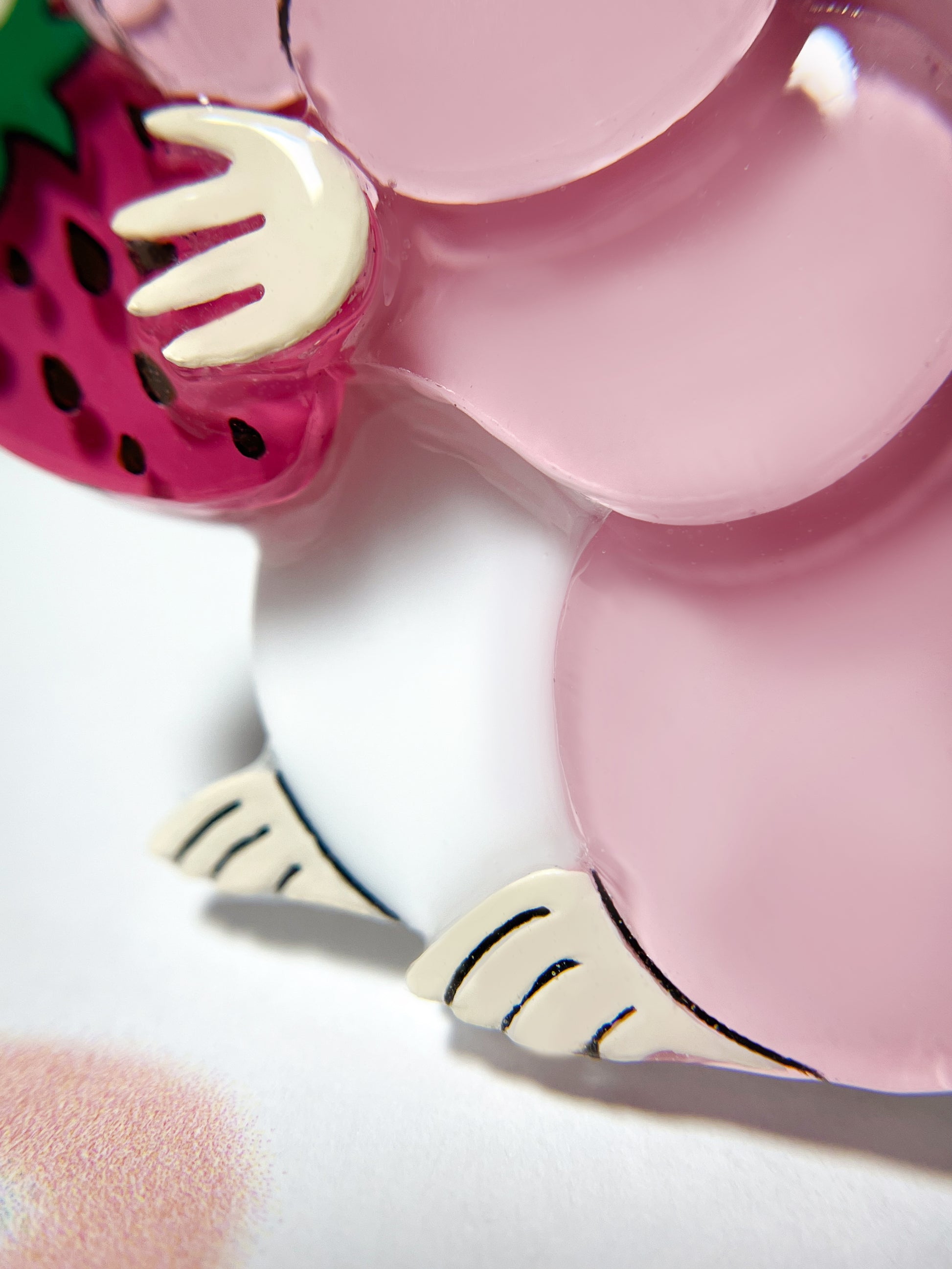This brooch is made from 6 pieces of hand-painted acrylic plates, assembled and coated with acrylic UV/LED resin and backed with a silver brooch pin.