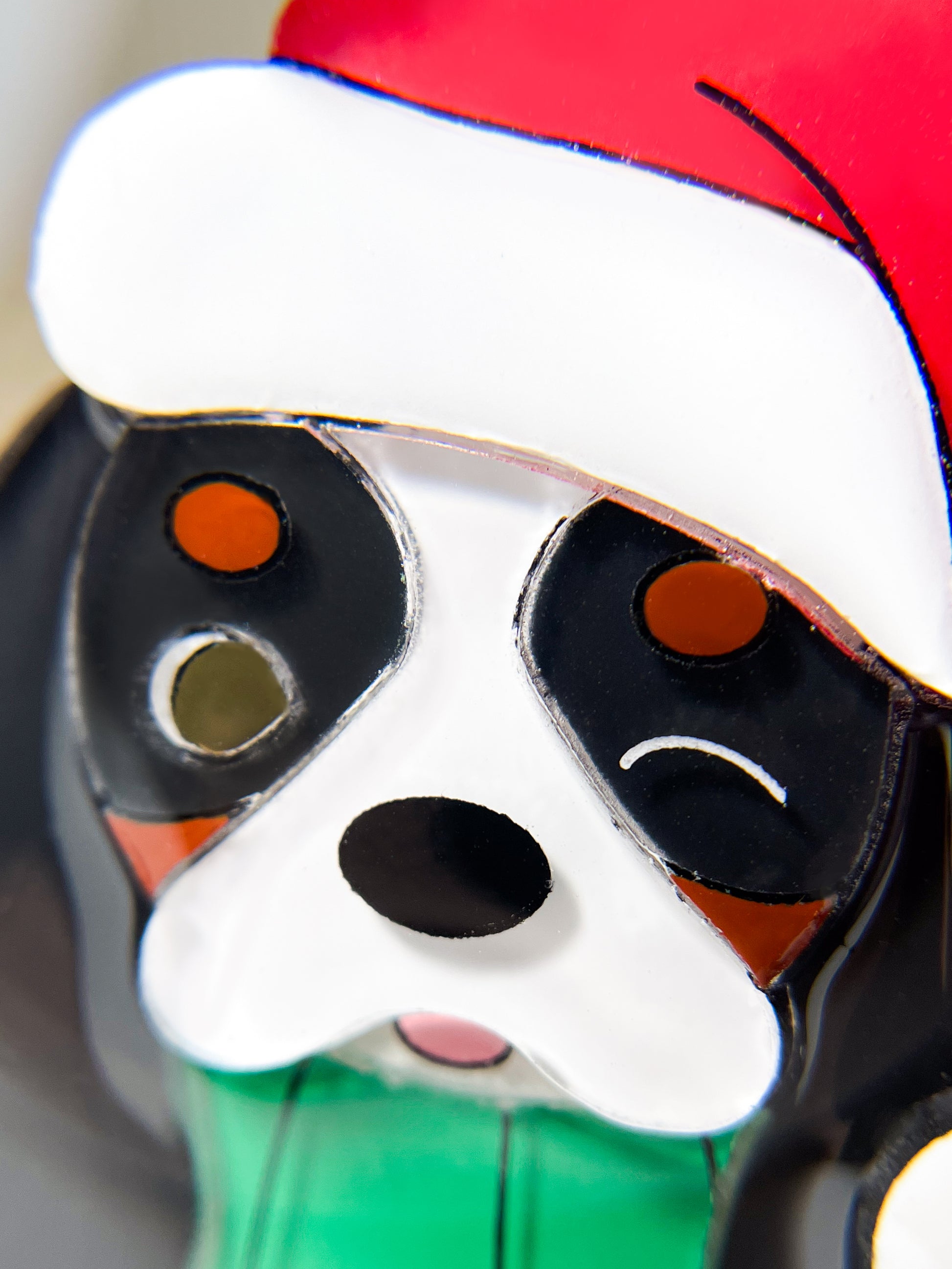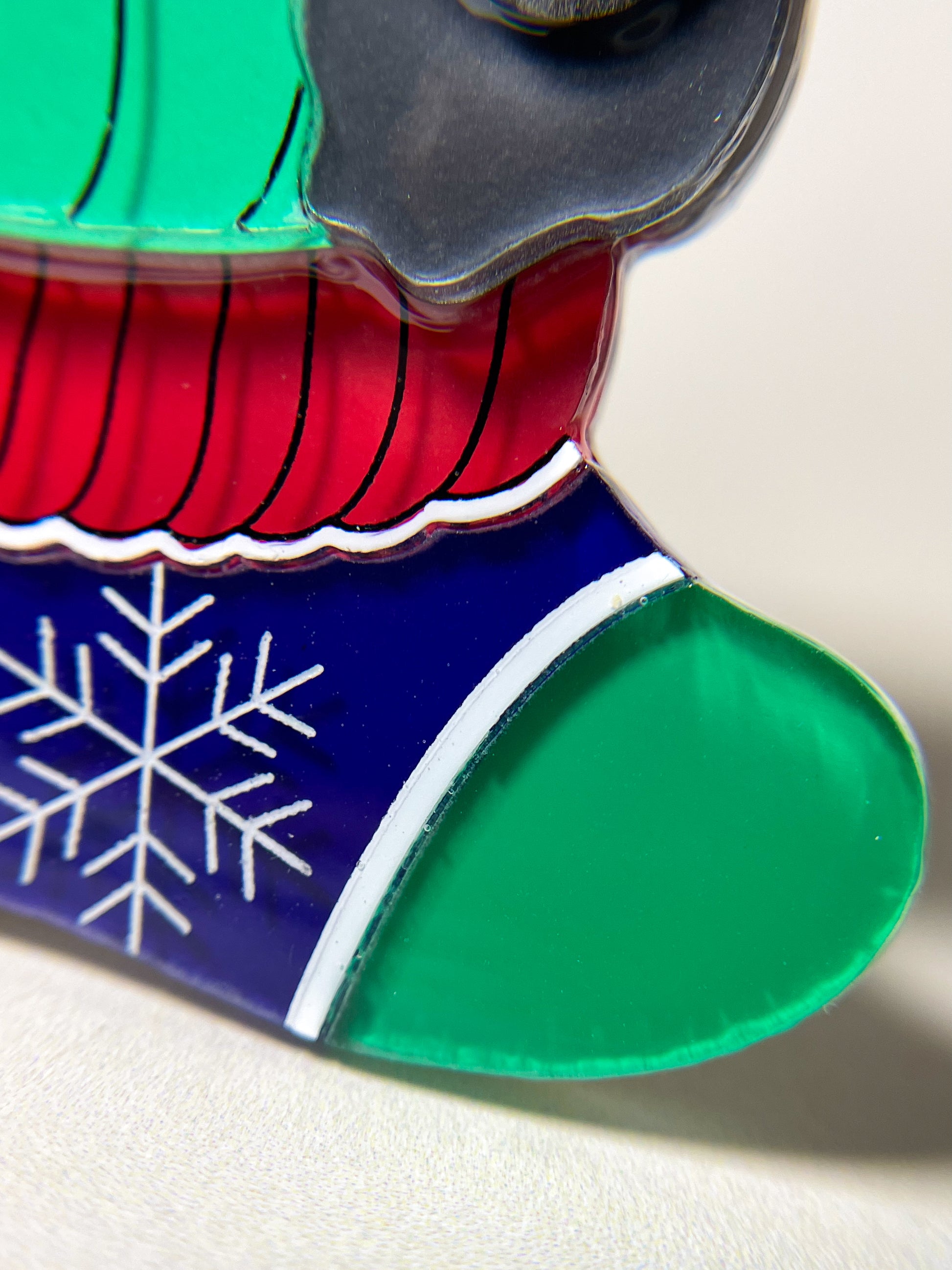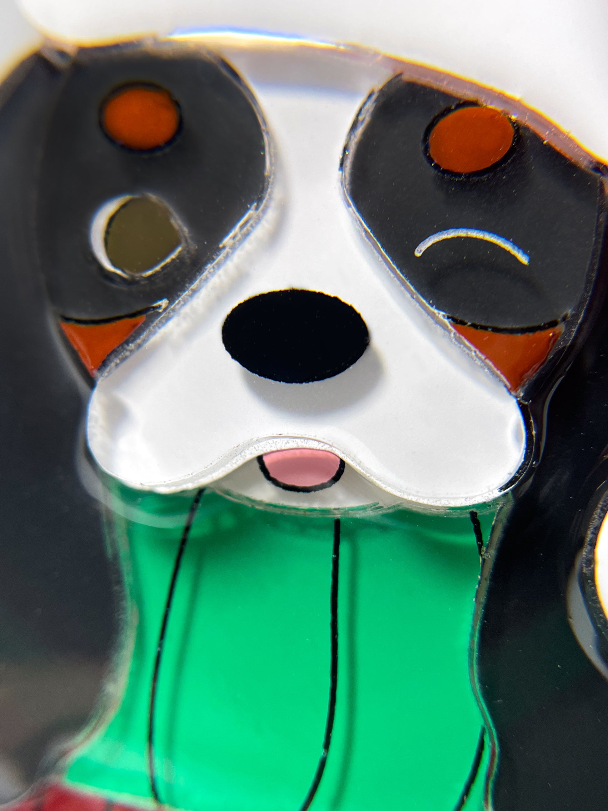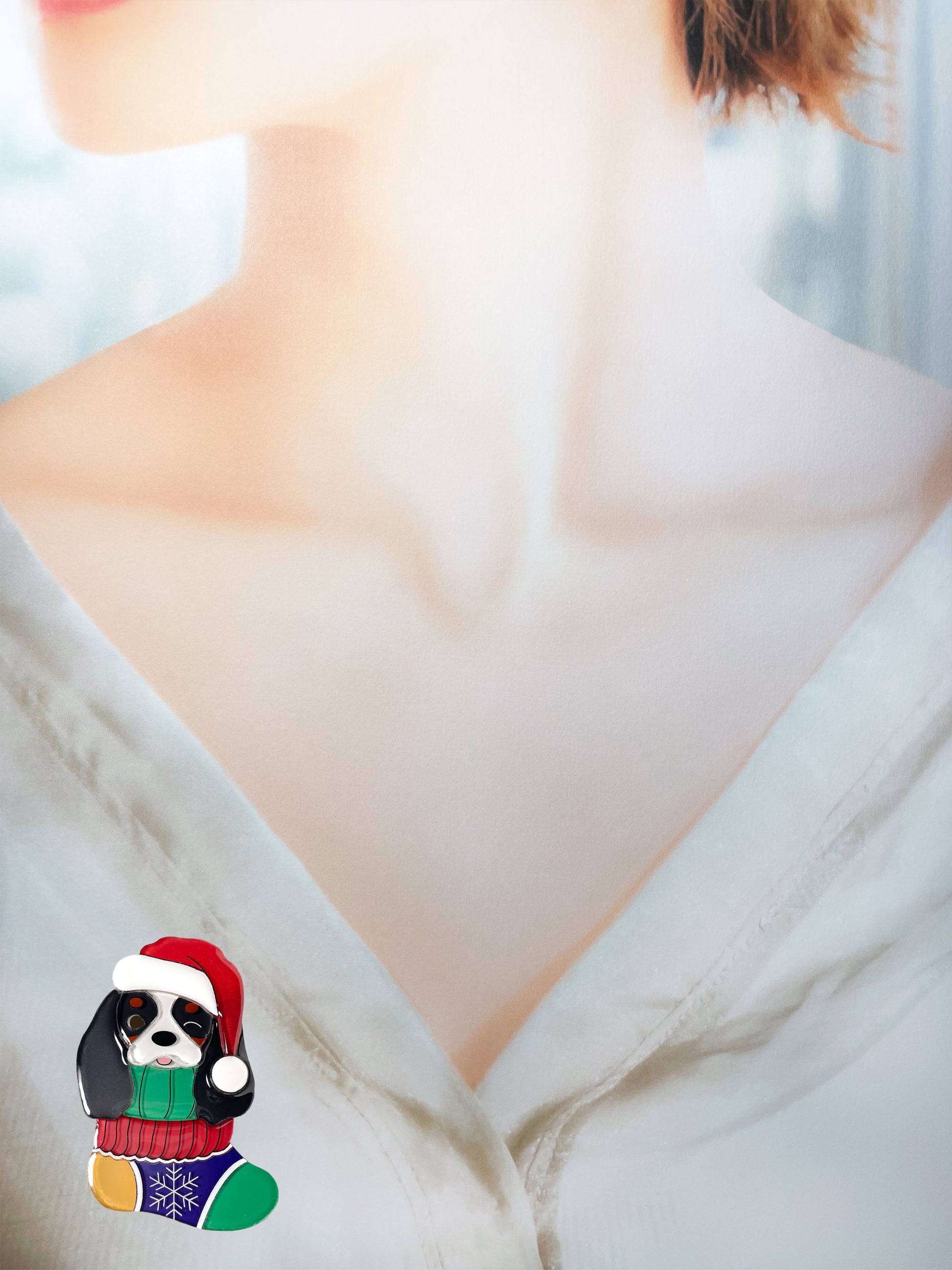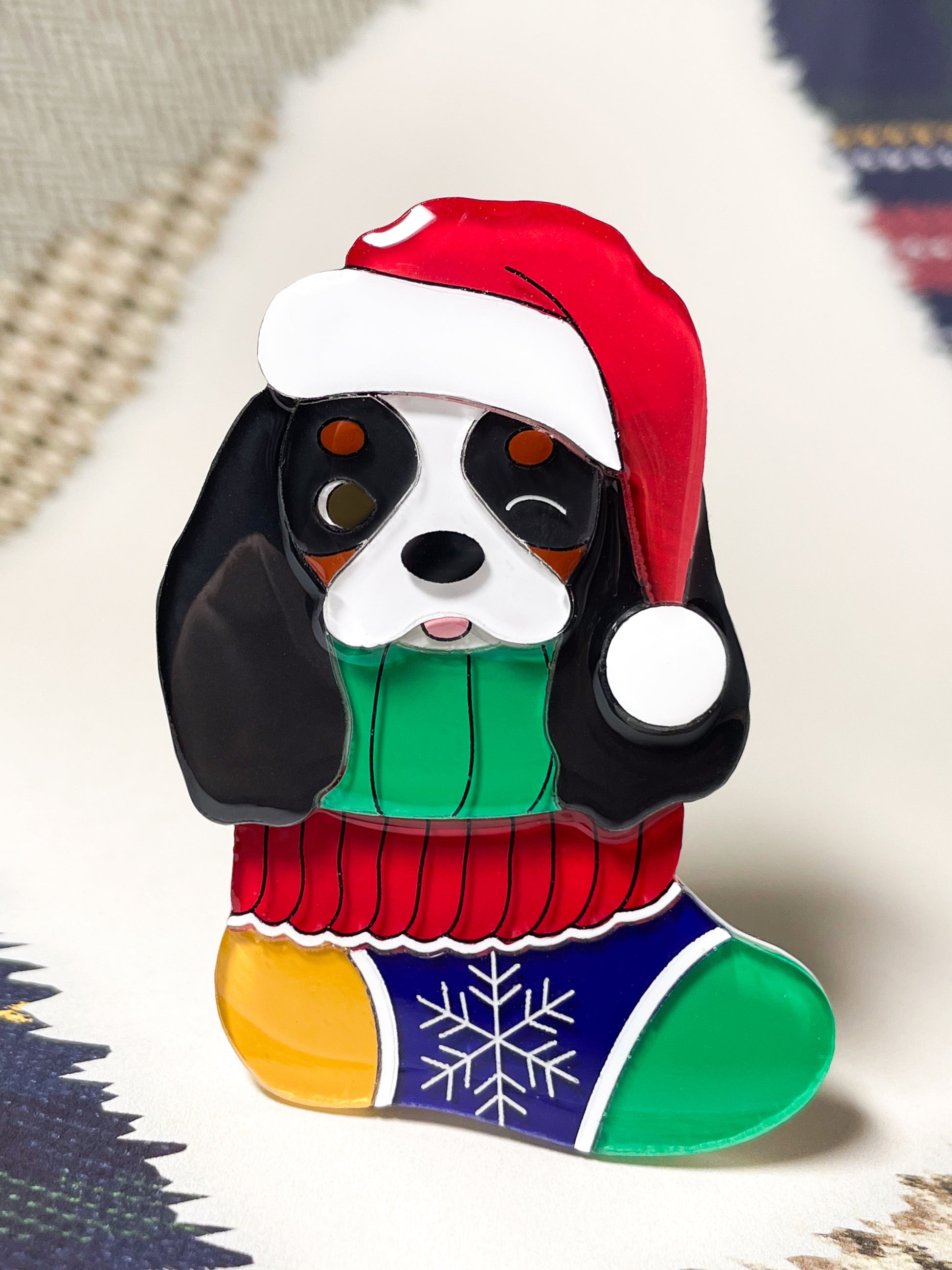 Cavalier in Christmas Stocking Brooch (Tri color)