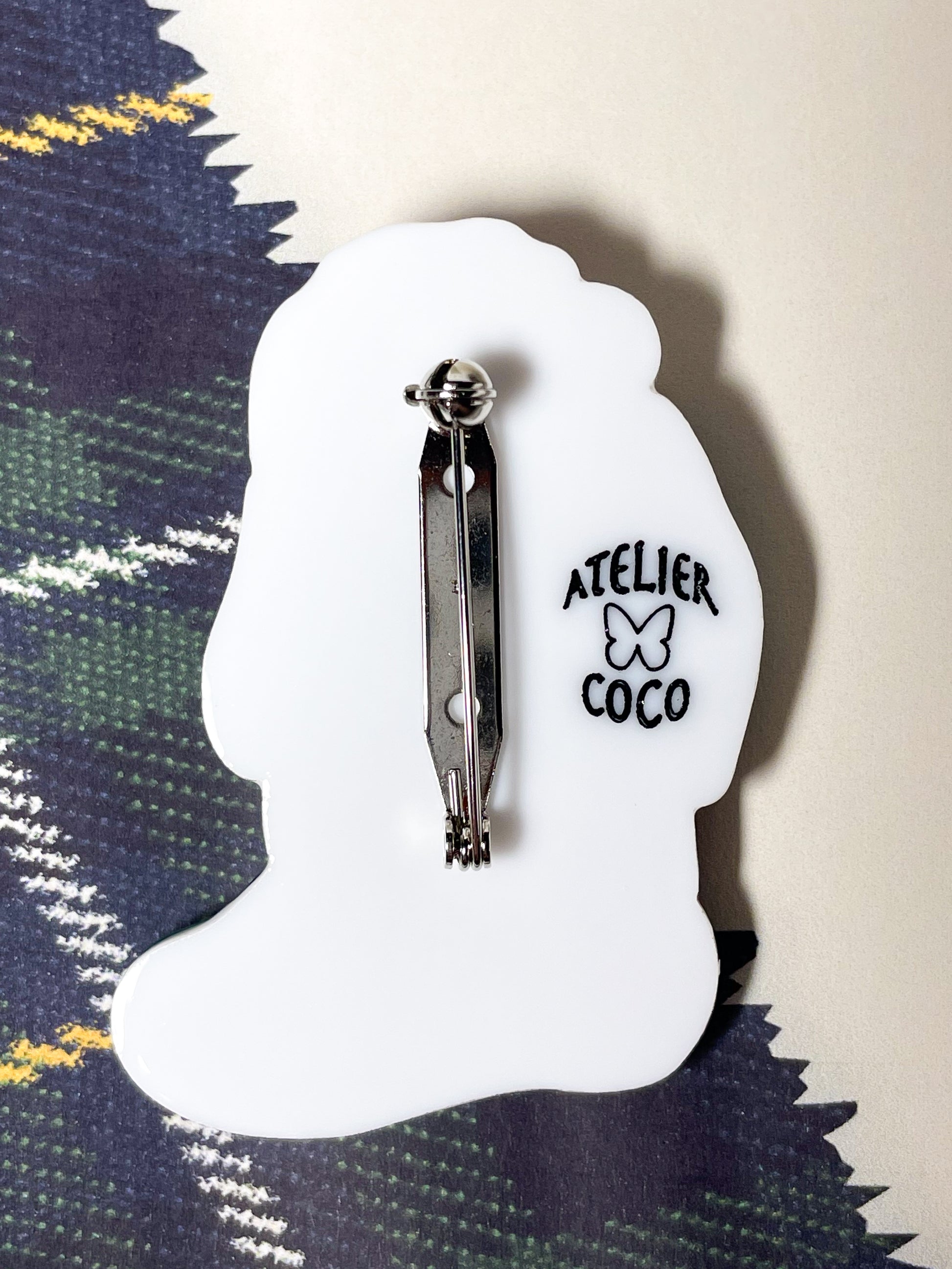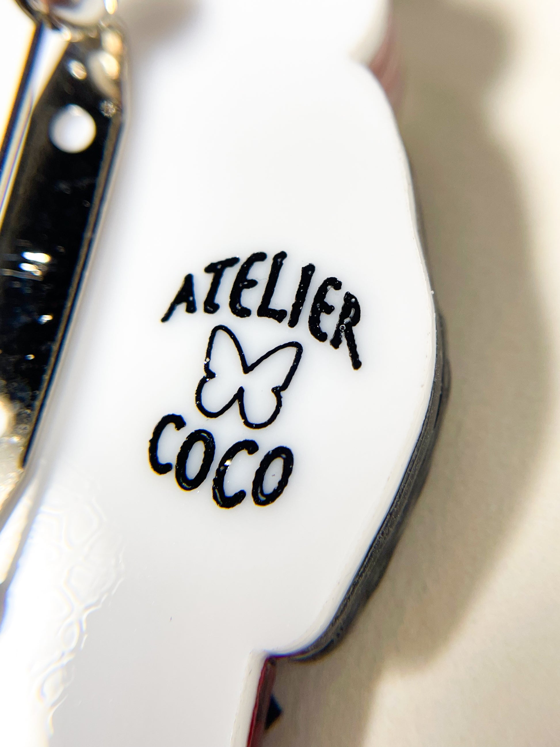 Original design by a Japanese accessory artist Coco and each brooch has the "ATELIER COCO" logo.