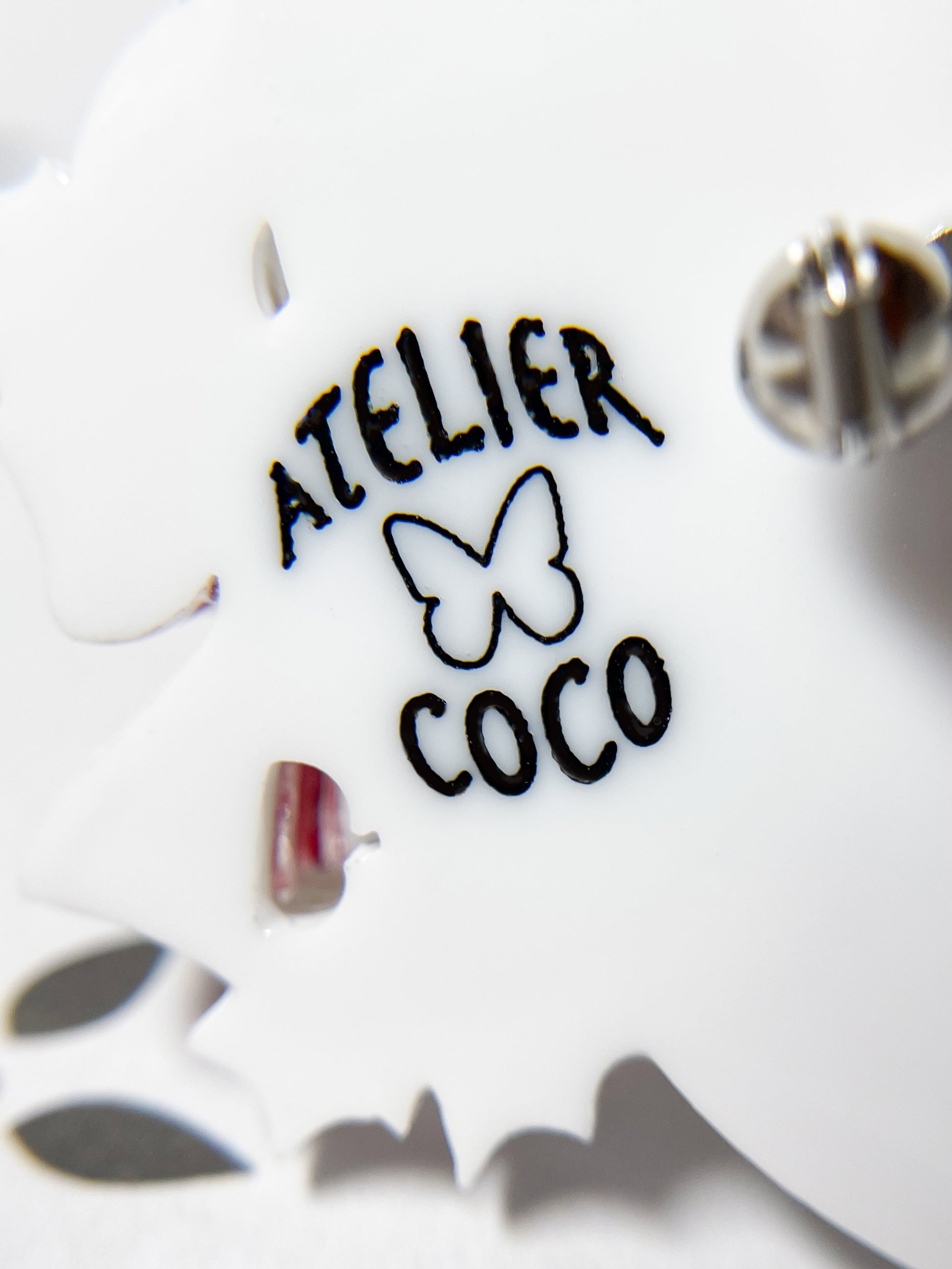 Original design by a Japanese accessory artist Coco and each brooch has the "ATELIER COCO" logo on the back.
