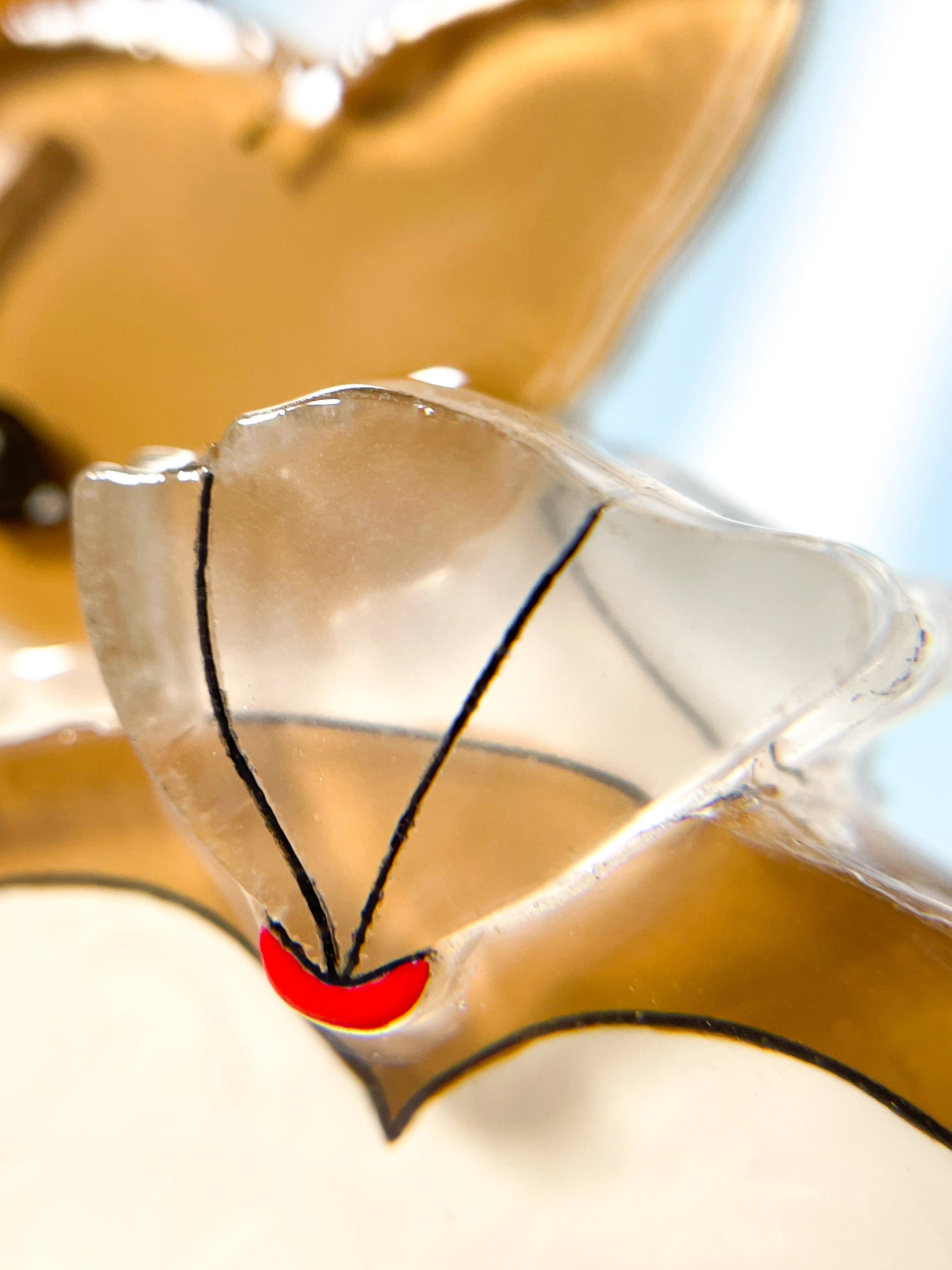 This brooch is made from 9 pieces of hand-painted acrylic plates, assembled and coated with acrylic UV/LED resin and backed with a silver brooch pin.