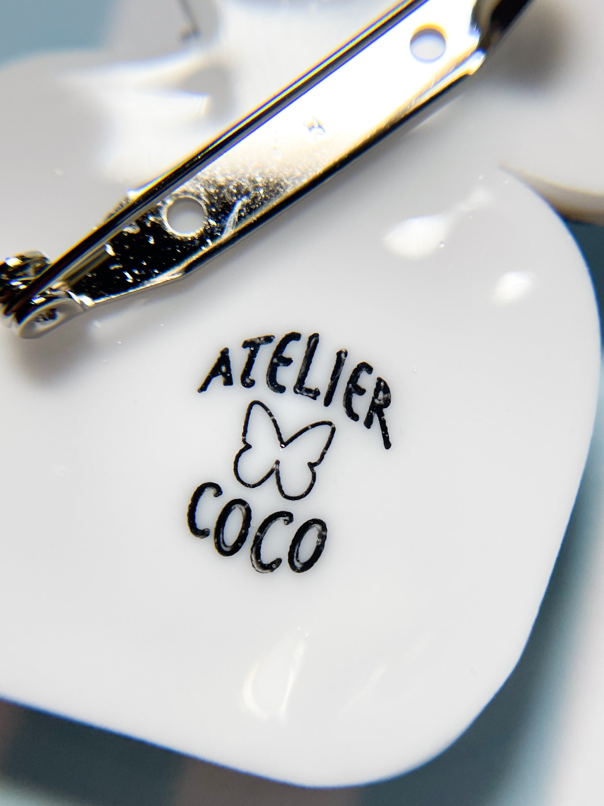 Original design by a Japanese accessory artist Coco and each brooch has the "ATELIER COCO" logo on the back.