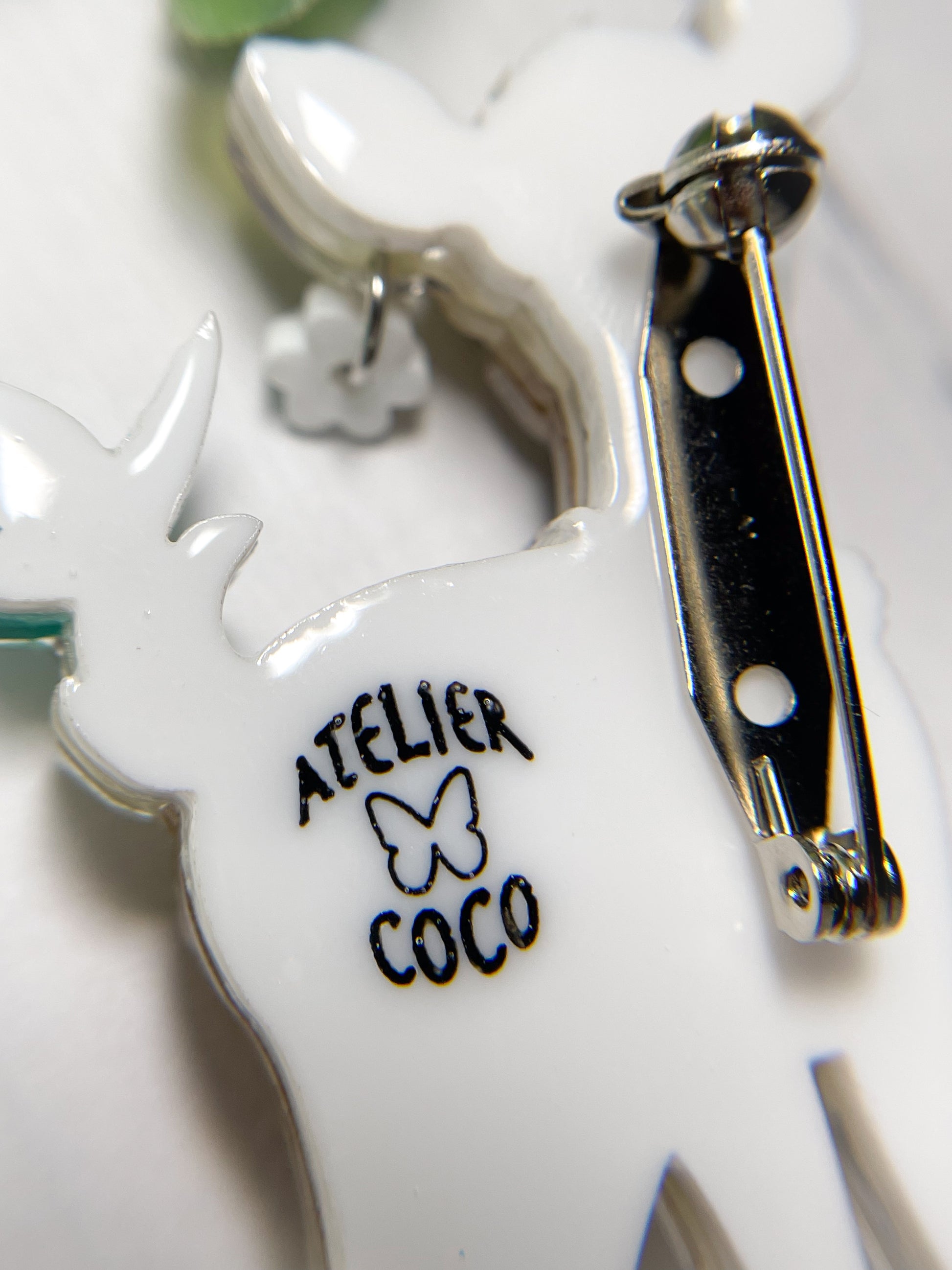 Original design by a Japanese accessory artist Coco and each brooch has the "ATELIER COCO" logo on the back.