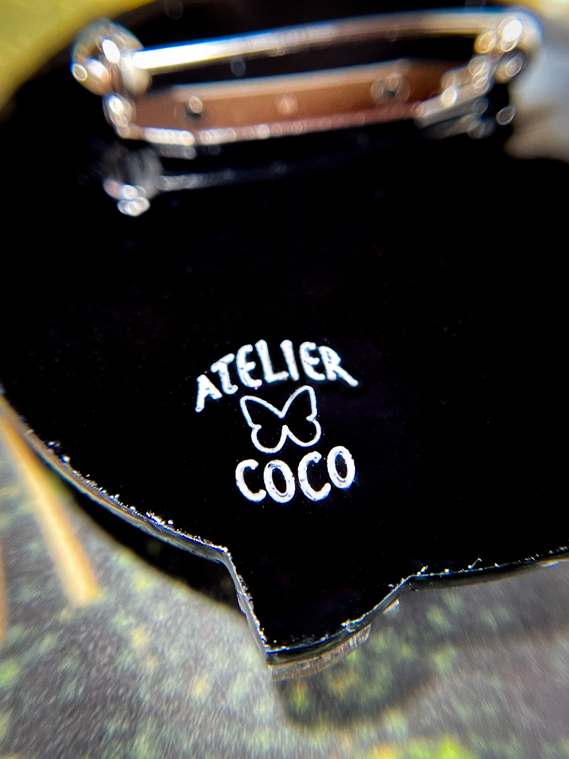 Original design by a Japanese accessory artist Coco and each brooch has the "ATELIER COCO" logo on the back.