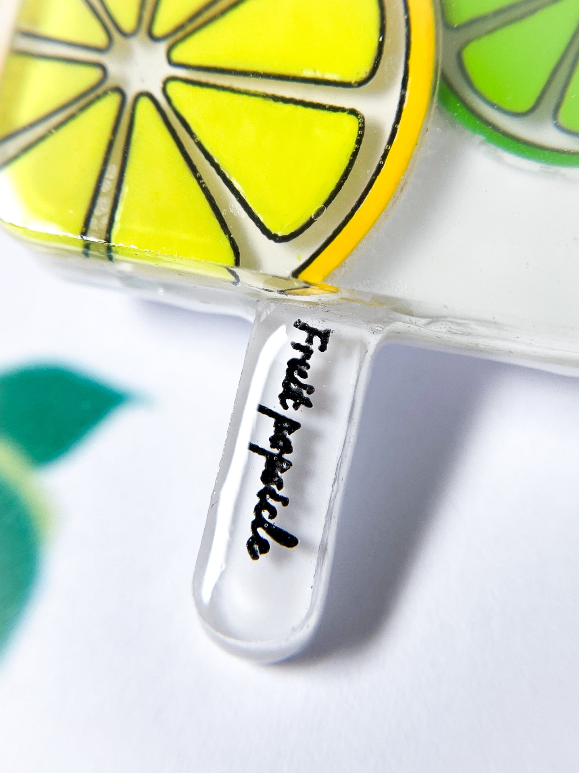 This brooch is made from 8 pieces of hand-painted acrylic plates, assembled and coated with acrylic UV/LED resin and backed with a silver brooch pin.