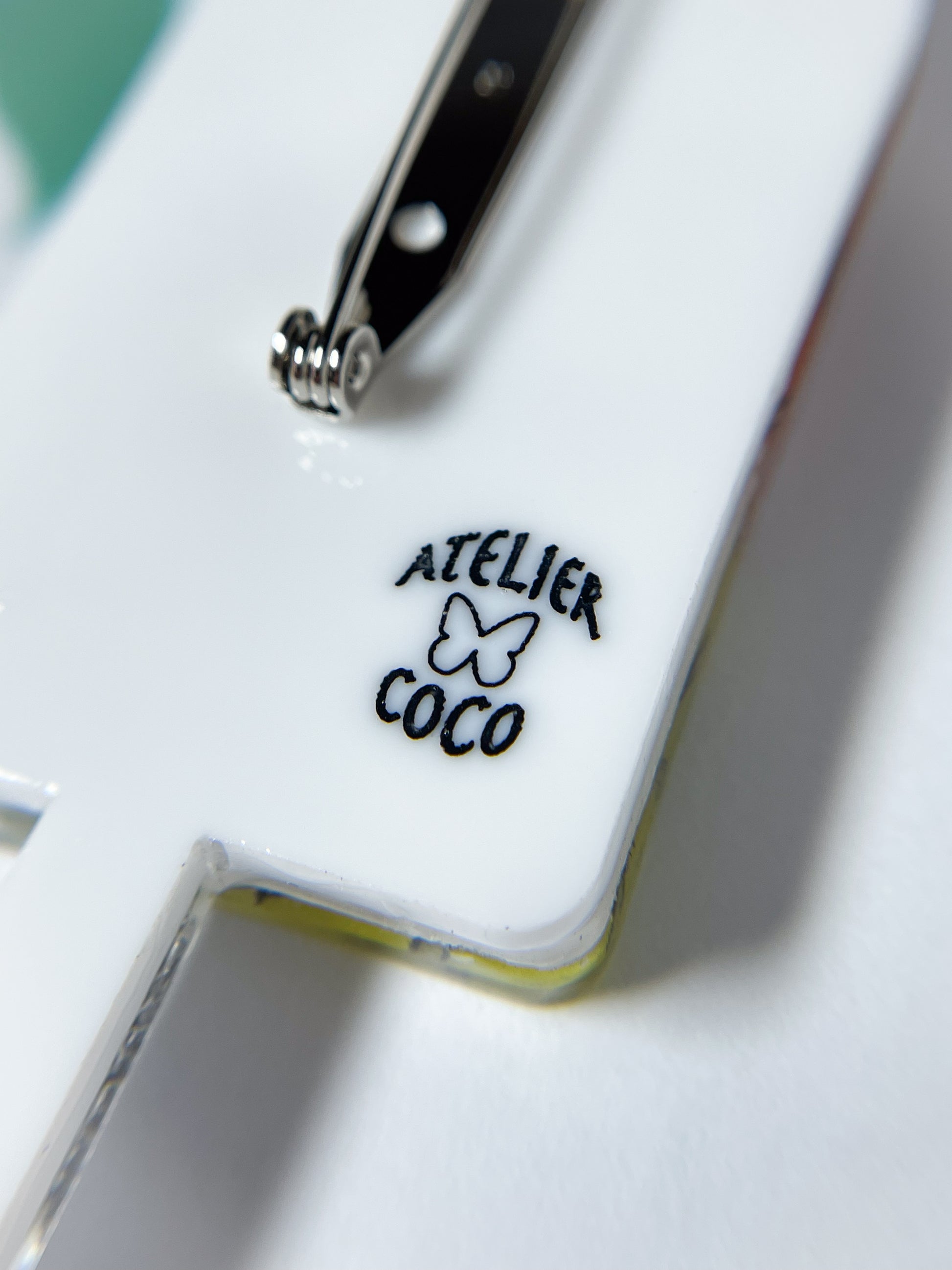 Original design by a Japanese accessory artist Coco and each brooch has the "ATELIER COCO" logo on the back.