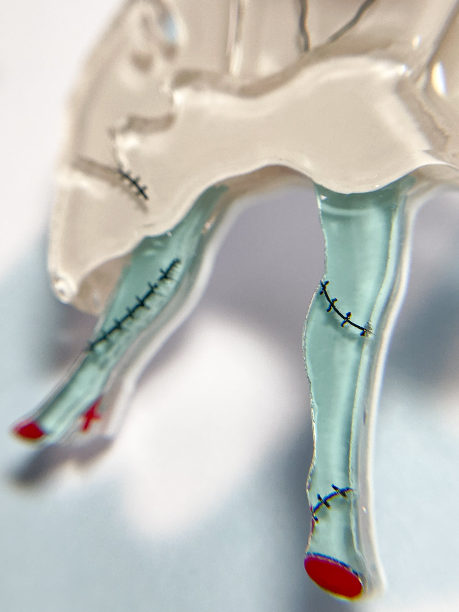 This brooch is made from 5 pieces of hand-painted acrylic plates, assembled and coated with acrylic UV/LED resin and backed with a silver brooch pin.