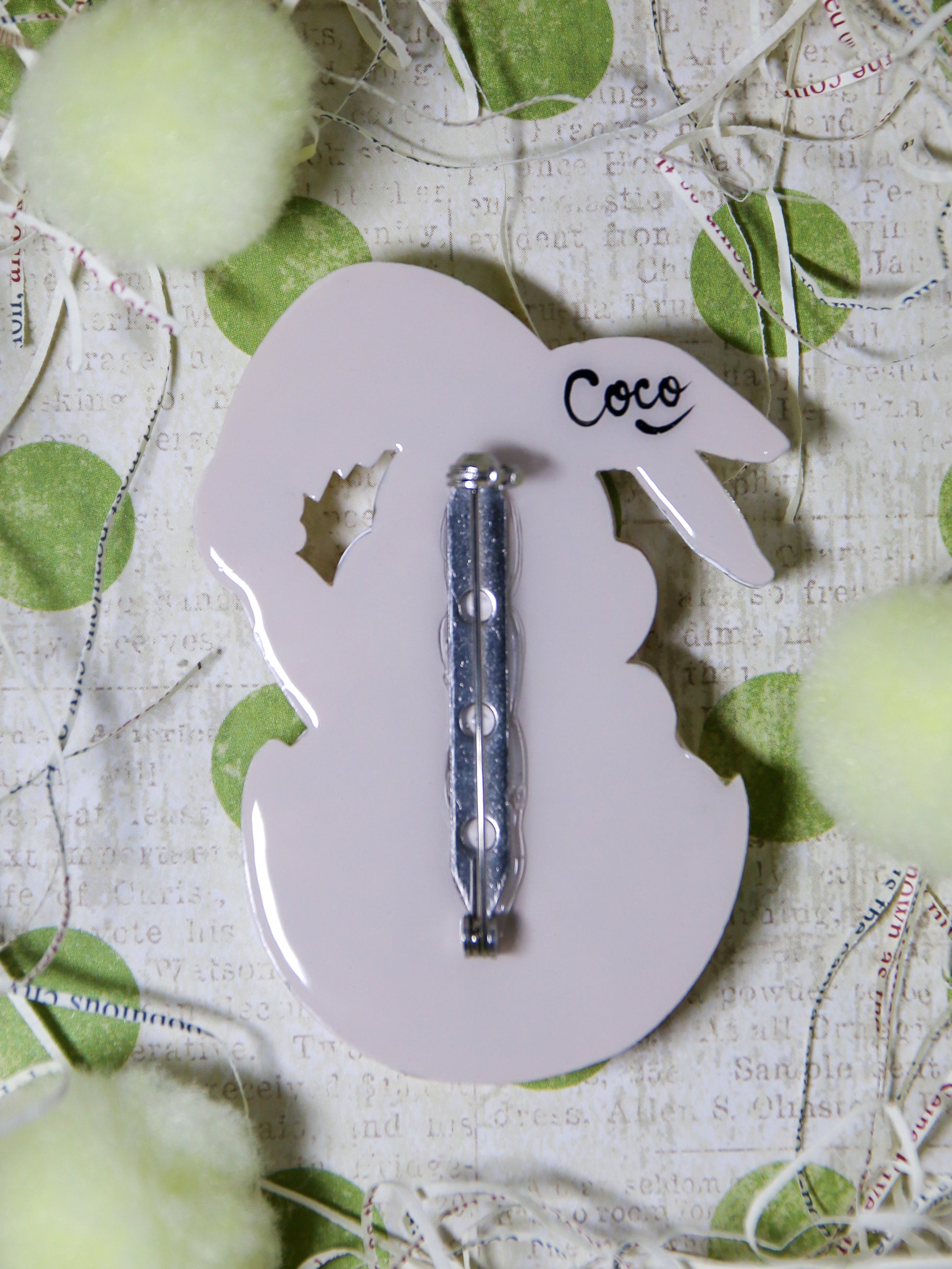 This brooch is made from 7 pieces of hand-painted acrylic plates, assembled and coated with acrylic UV/LED resin and backed with a silver brooch pin.