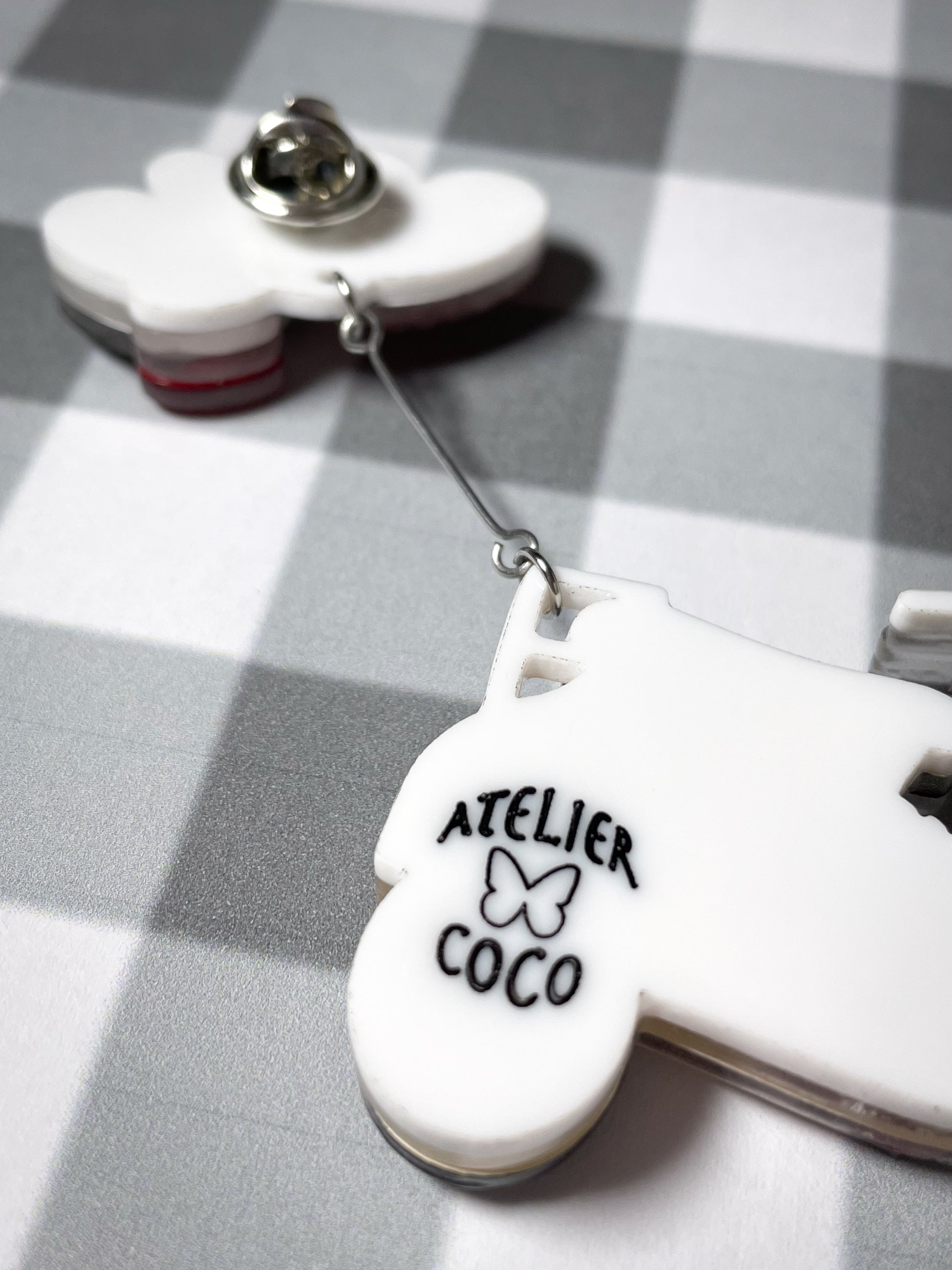 Original design by a Japanese accessory artist Coco and each brooch has the "ATELIER COCO" logo on the back.