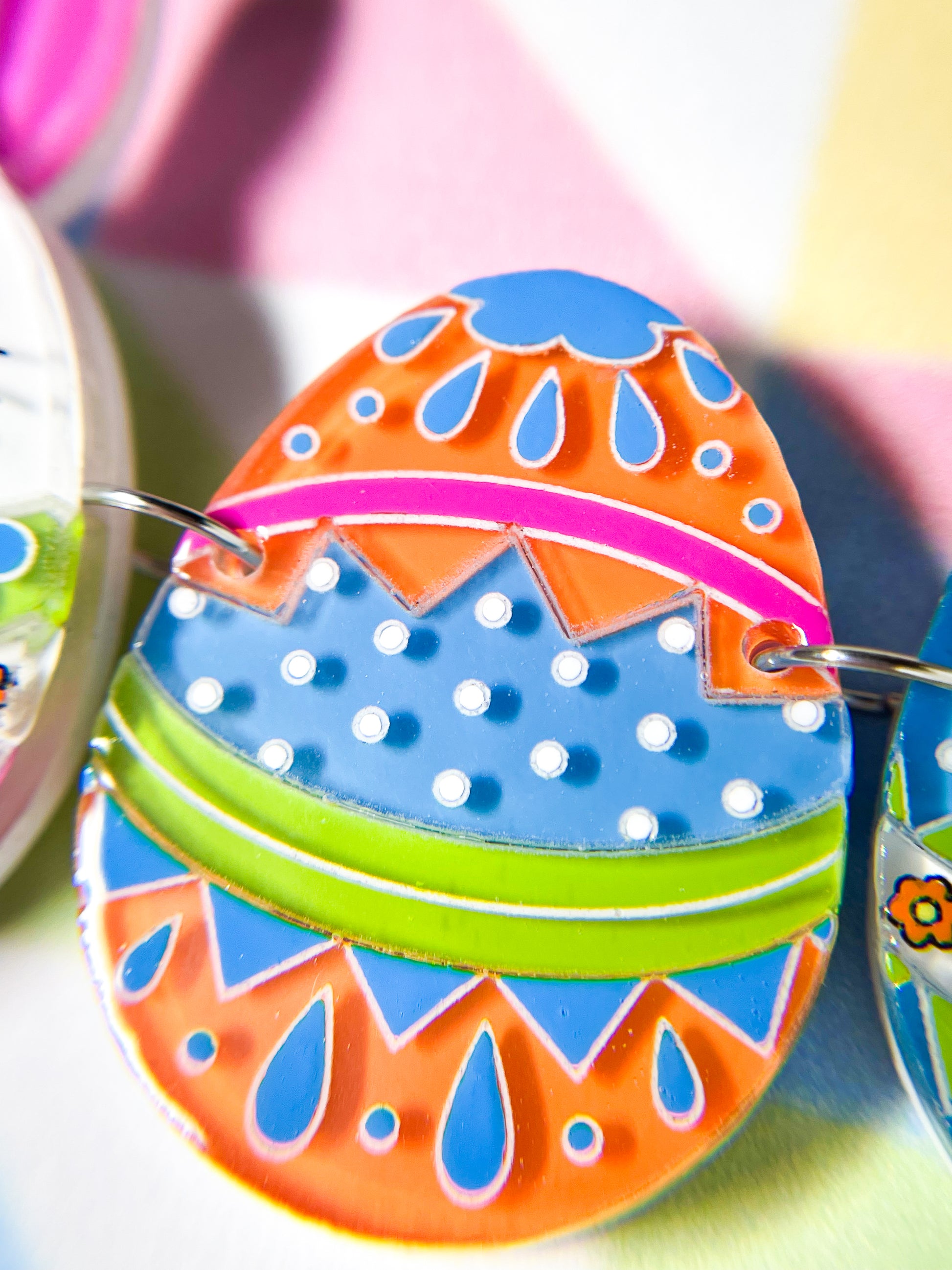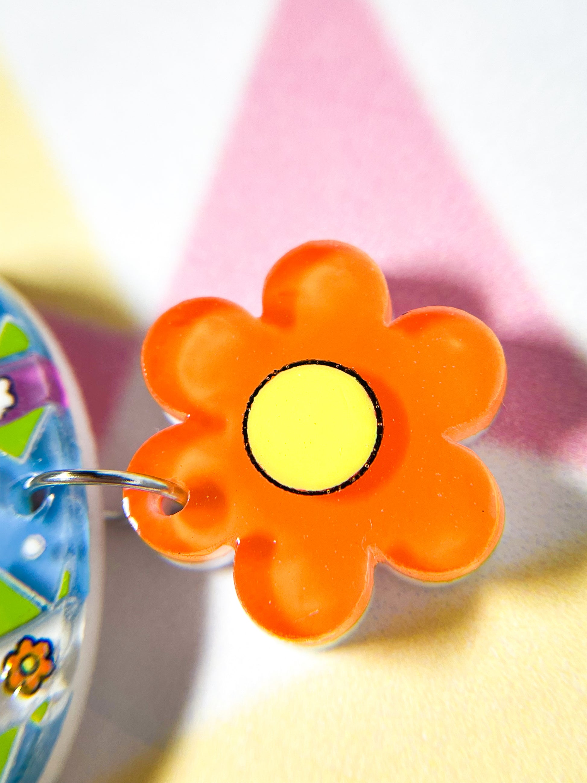 This brooch is made from 21 pieces of hand-painted acrylic plates, assembled and coated with acrylic UV/LED resin and backed with a silver brooch pin and a butterfly tack pin.