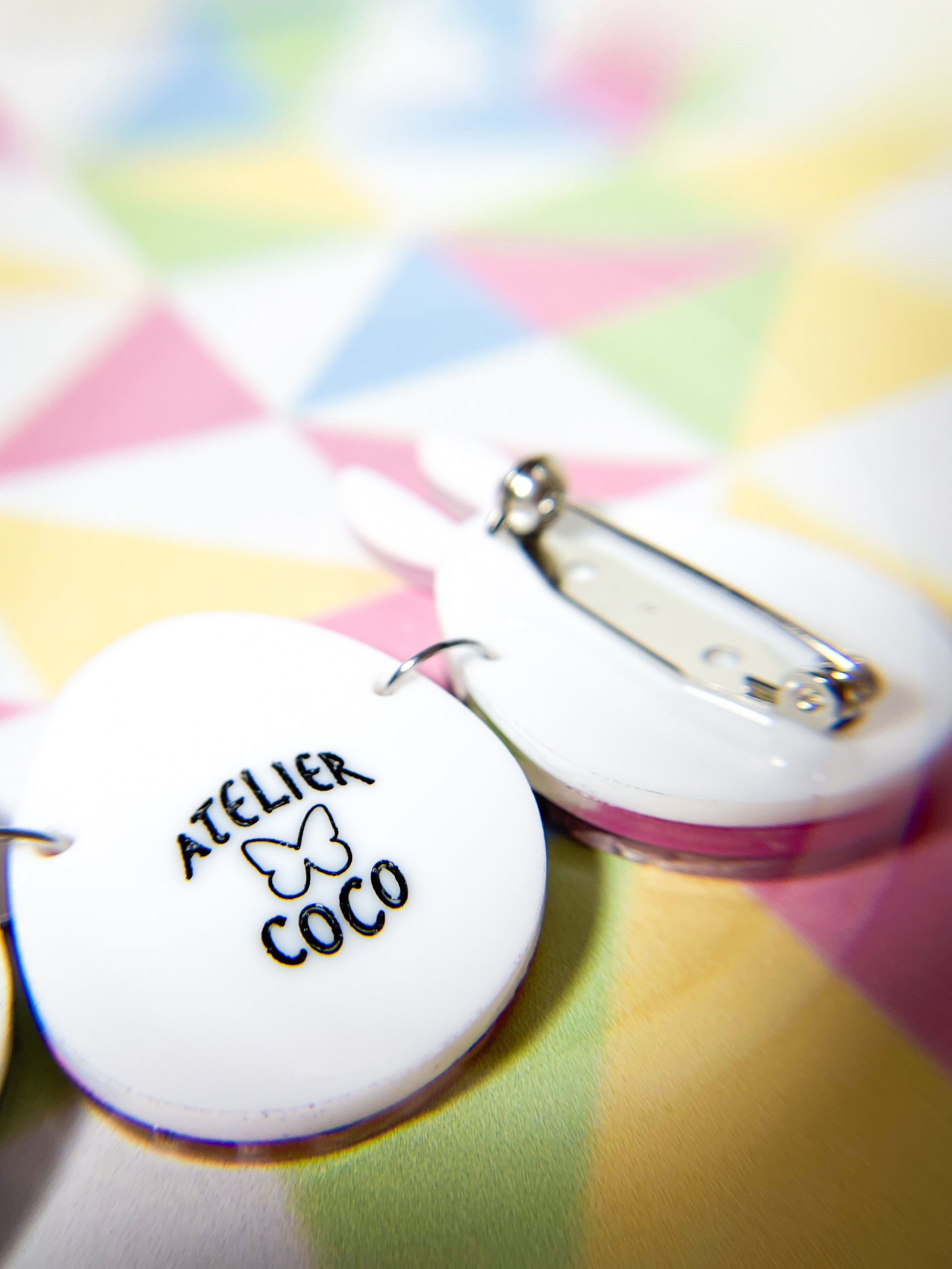 Original design by a Japanese accessory artist Coco and each brooch has the "ATELIER COCO" logo on the back.