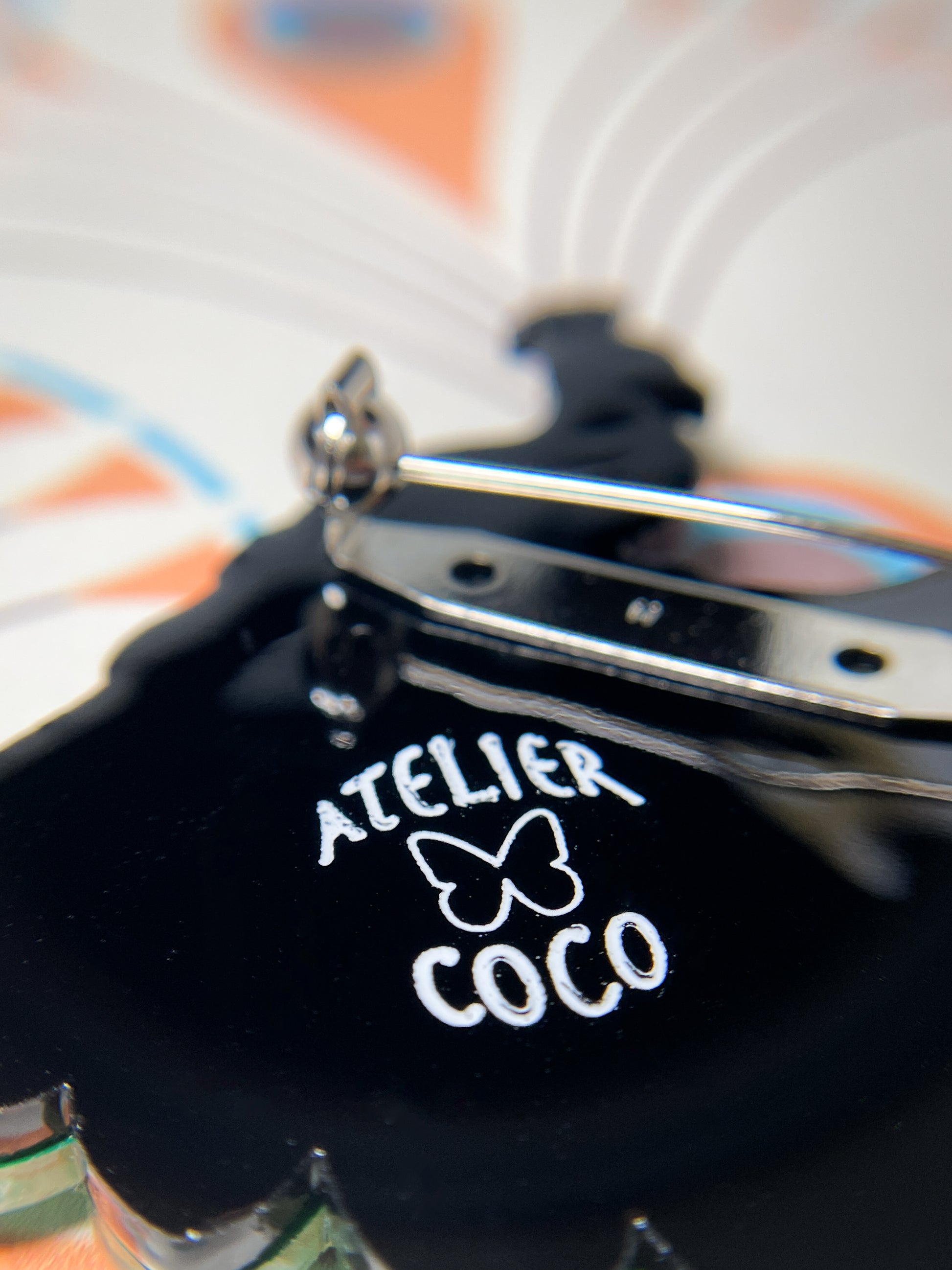 Original design by a Japanese accessory artist Coco and each brooch has the "ATELIER COCO" logo on the back.