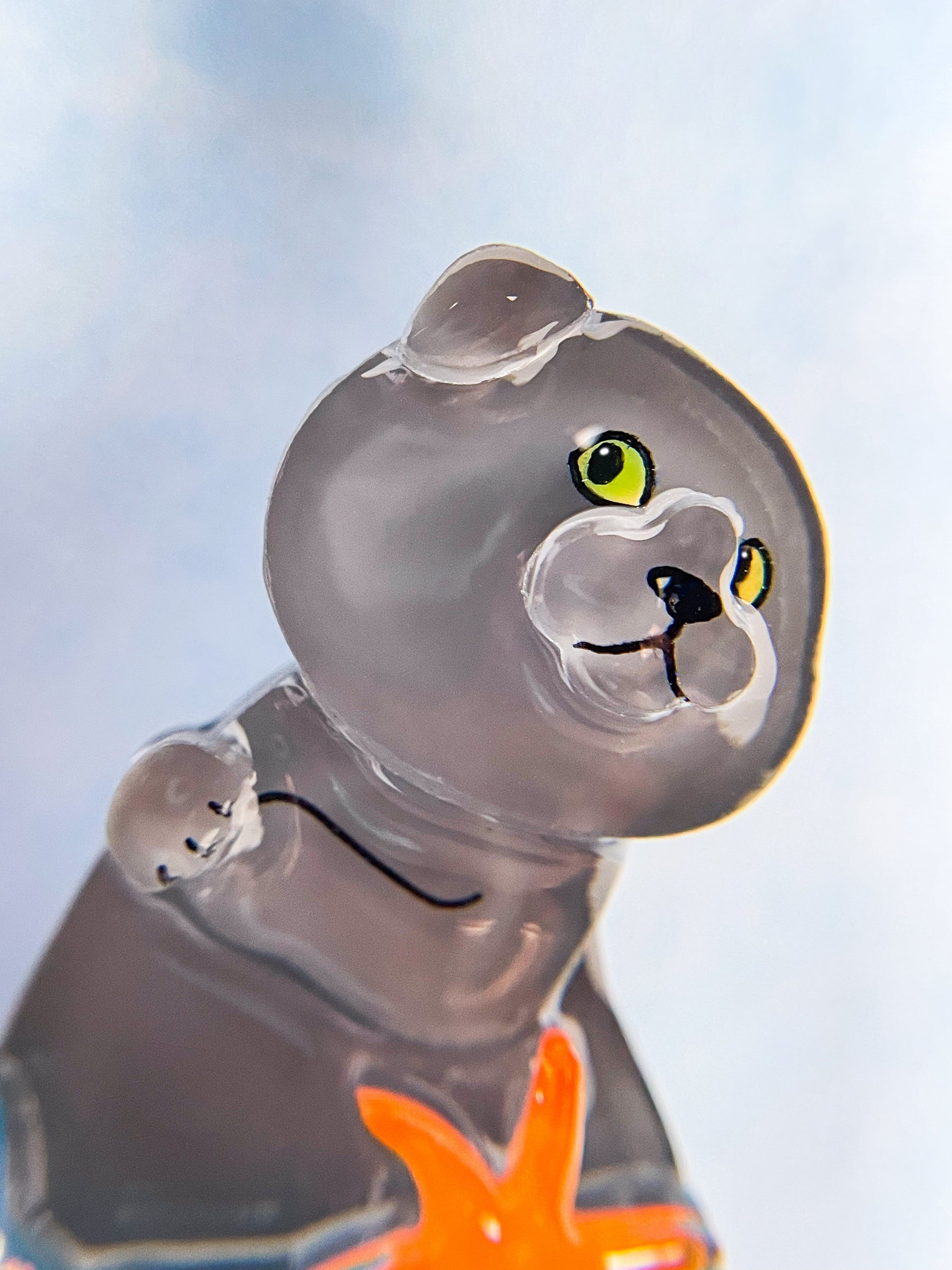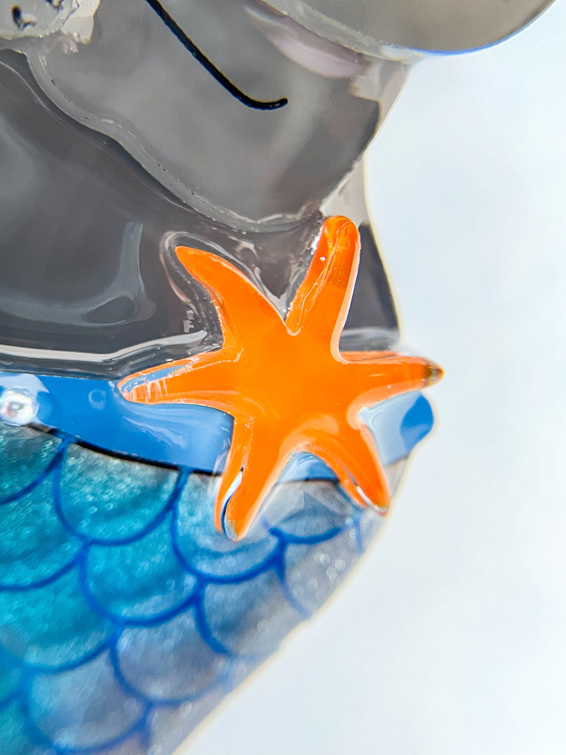 This brooch is made from 8 pieces of hand-painted acrylic plates, small half pearls and crystal rhinestones, assembled and coated with acrylic UV/LED resin and backed with a silver brooch pin.