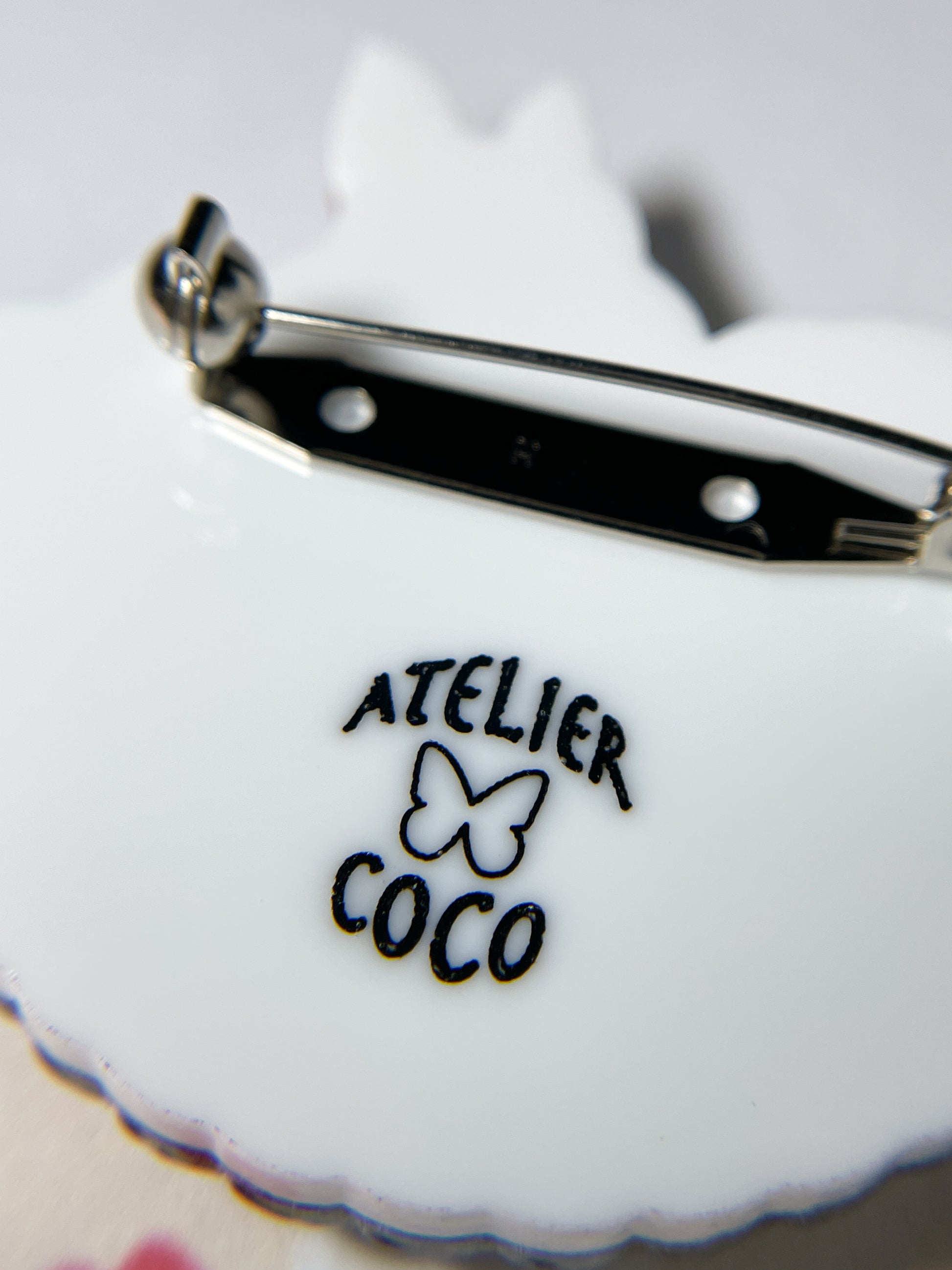 Original design by a Japanese accessory artist Coco and each brooch has the "ATELIER COCO" logo on the back.