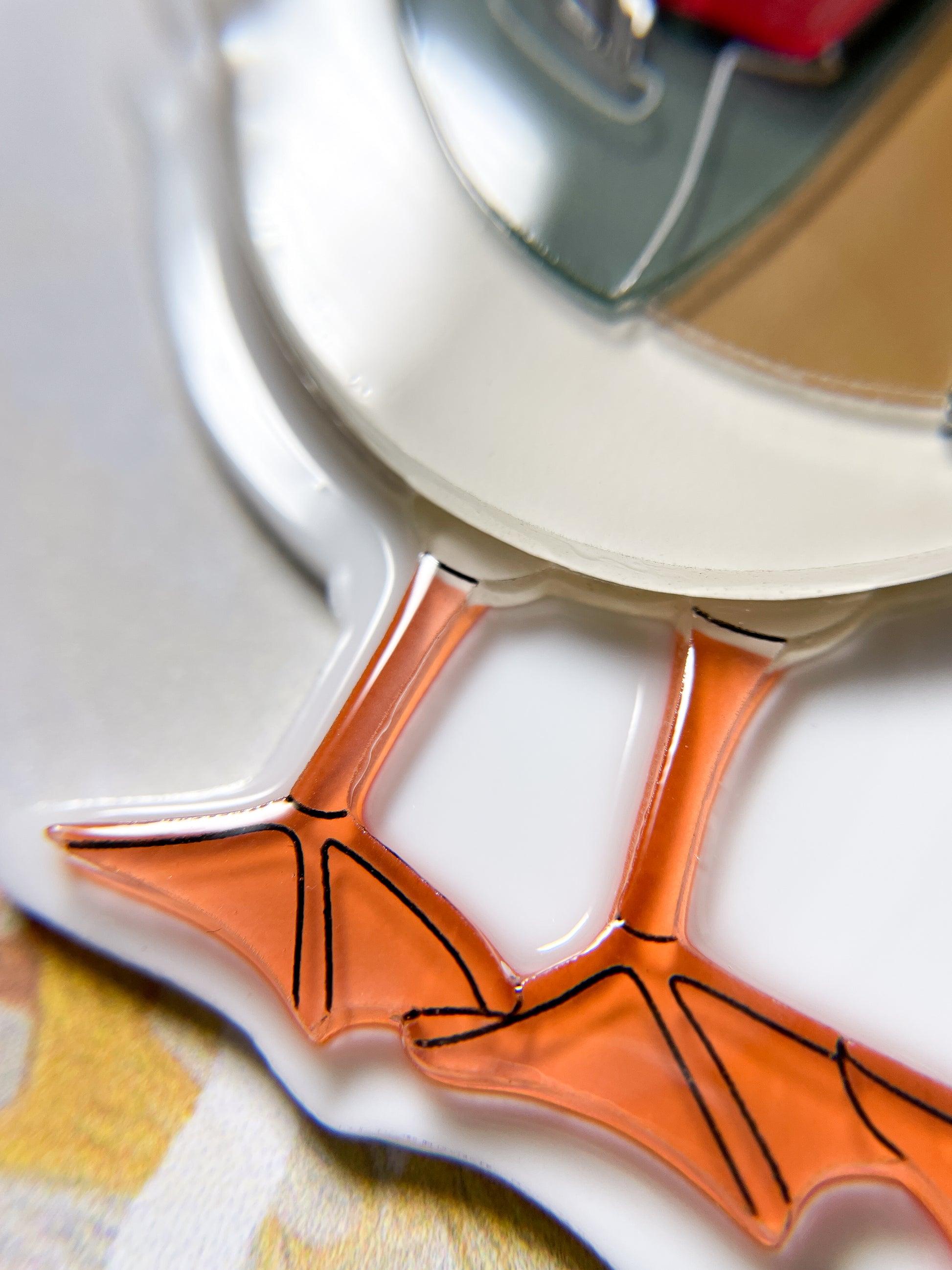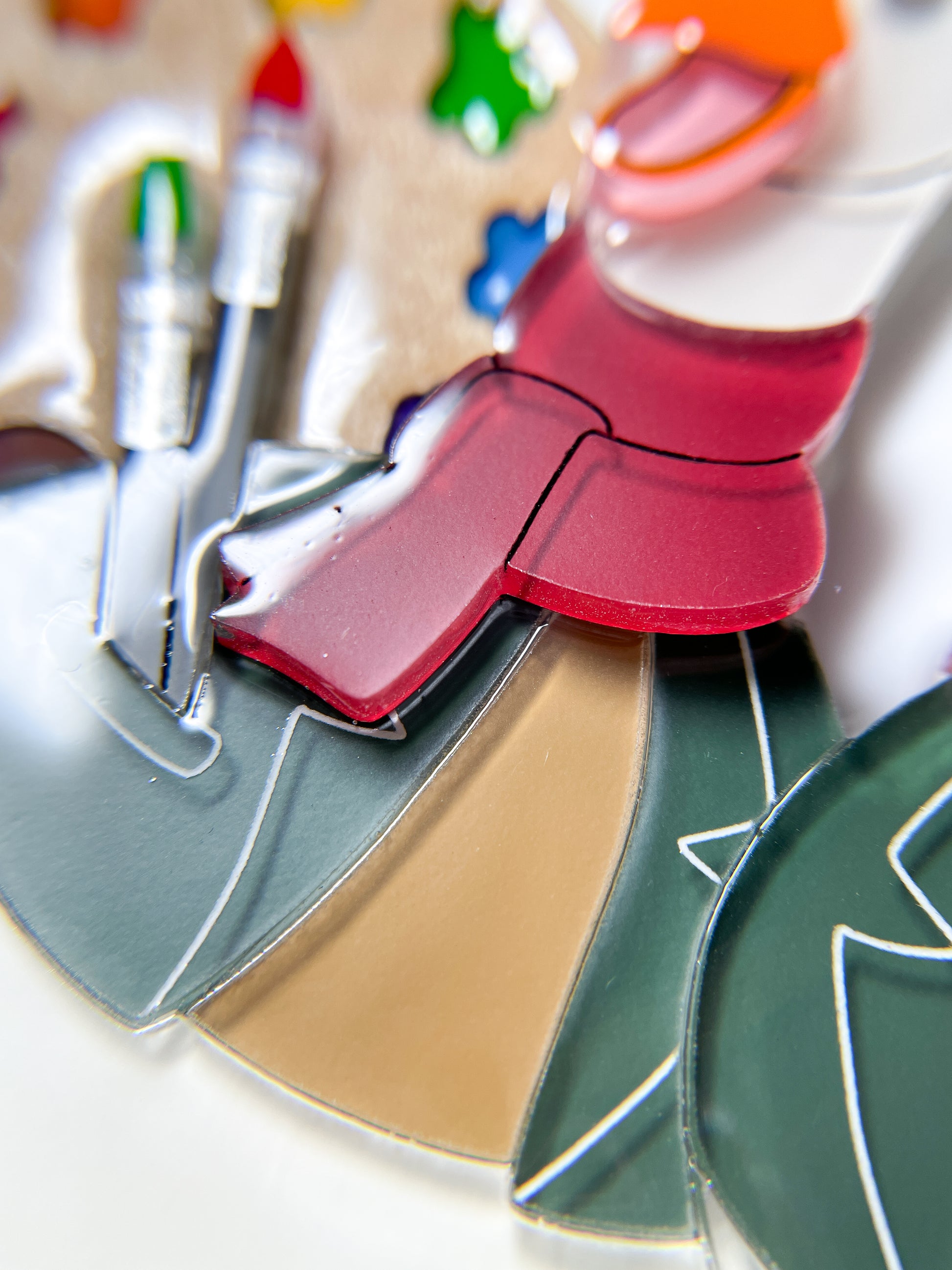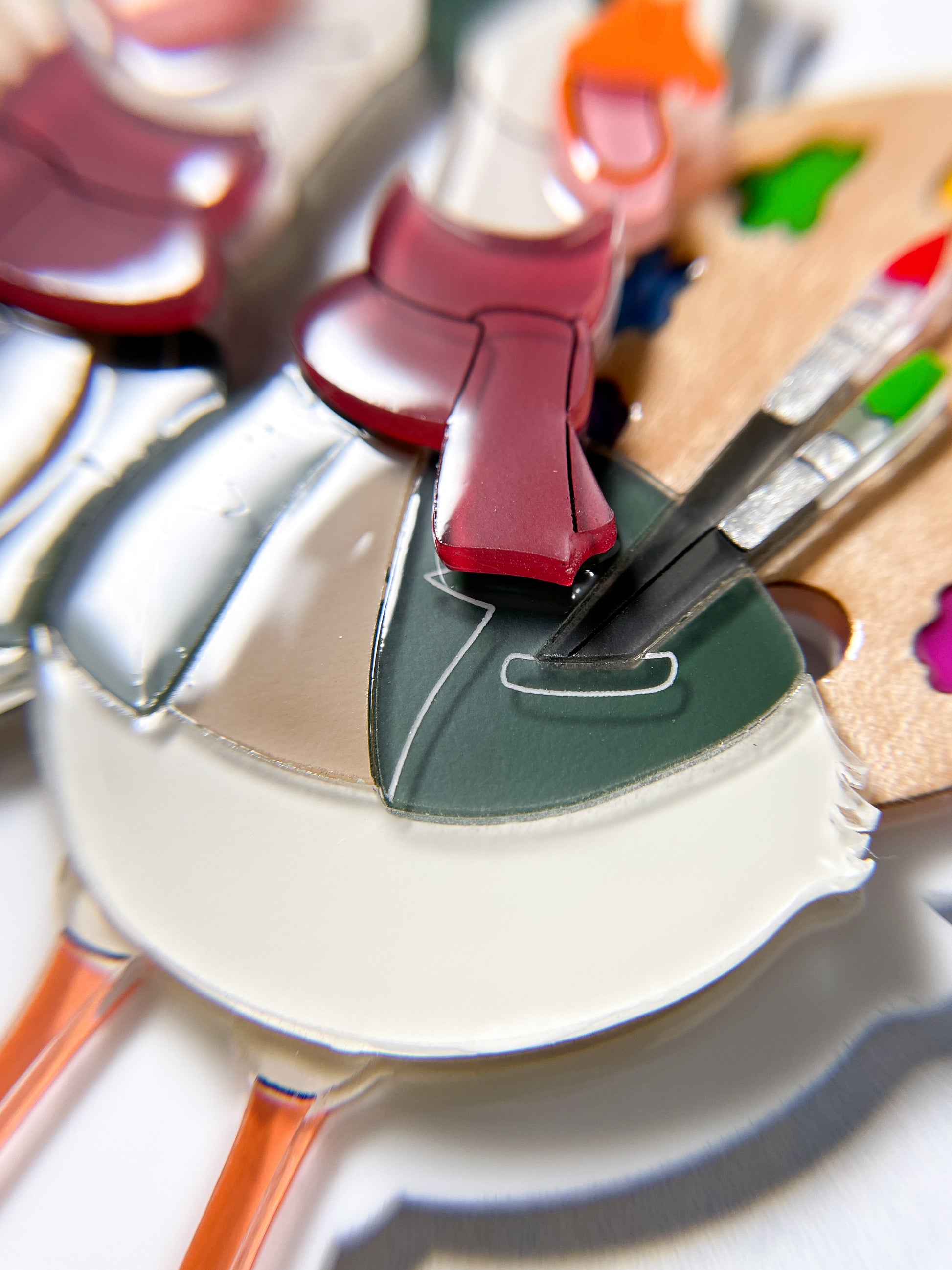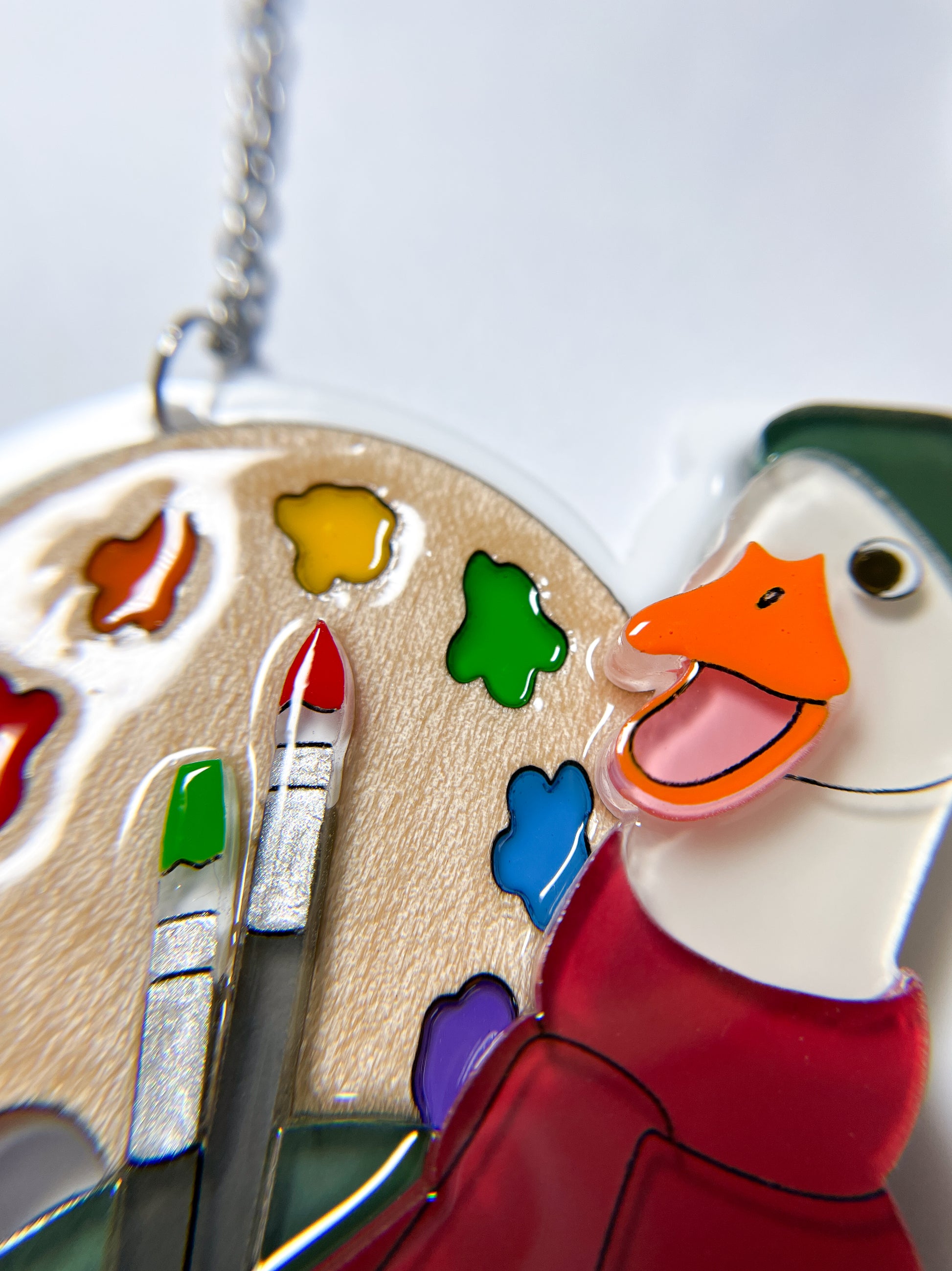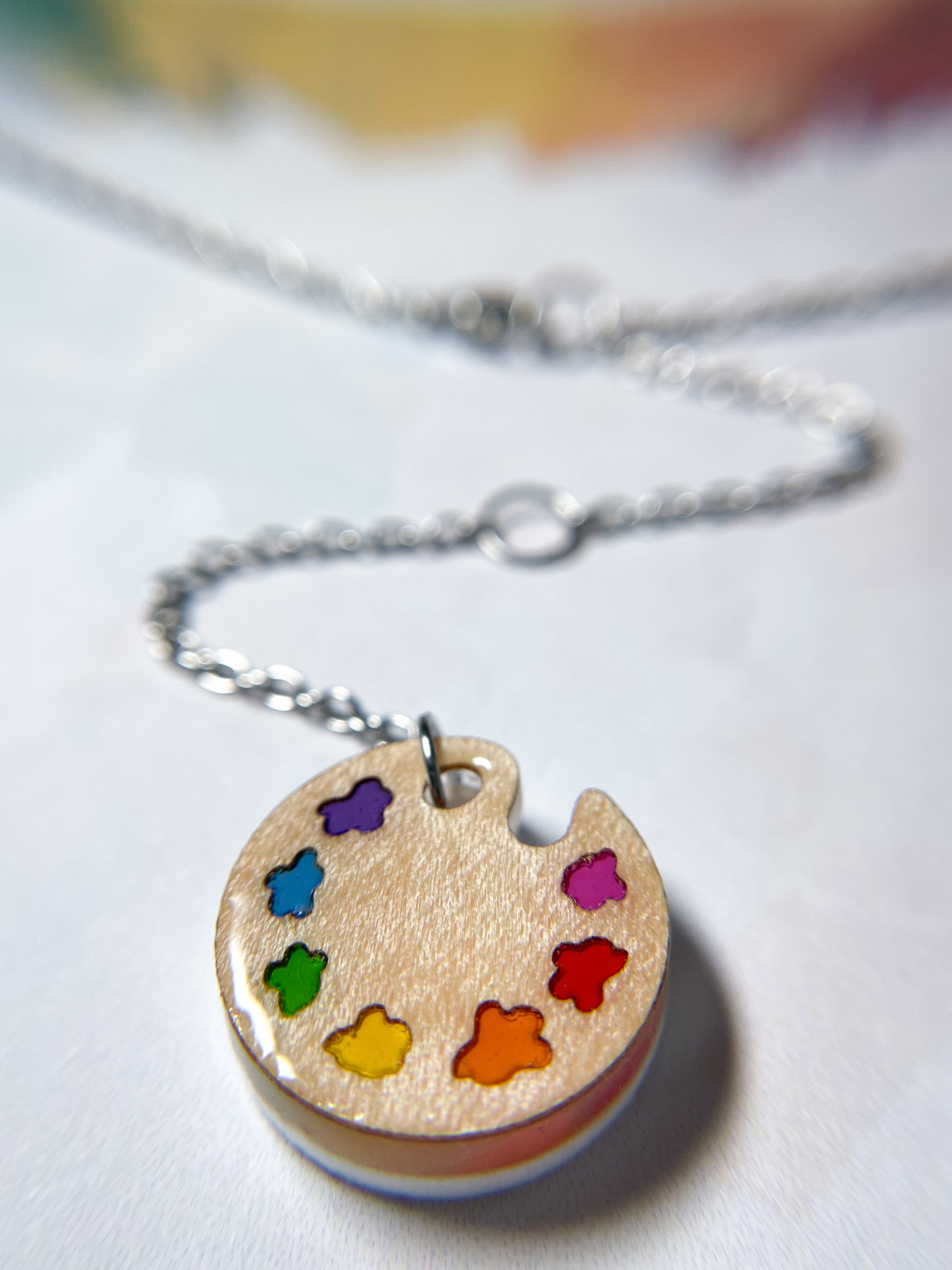 This necklace is made from 24 pieces of hand-painted acrylic plates, assembled and coated with acrylic UV/LED resin and finished with a silver surgical stainless steel chain with an extender.