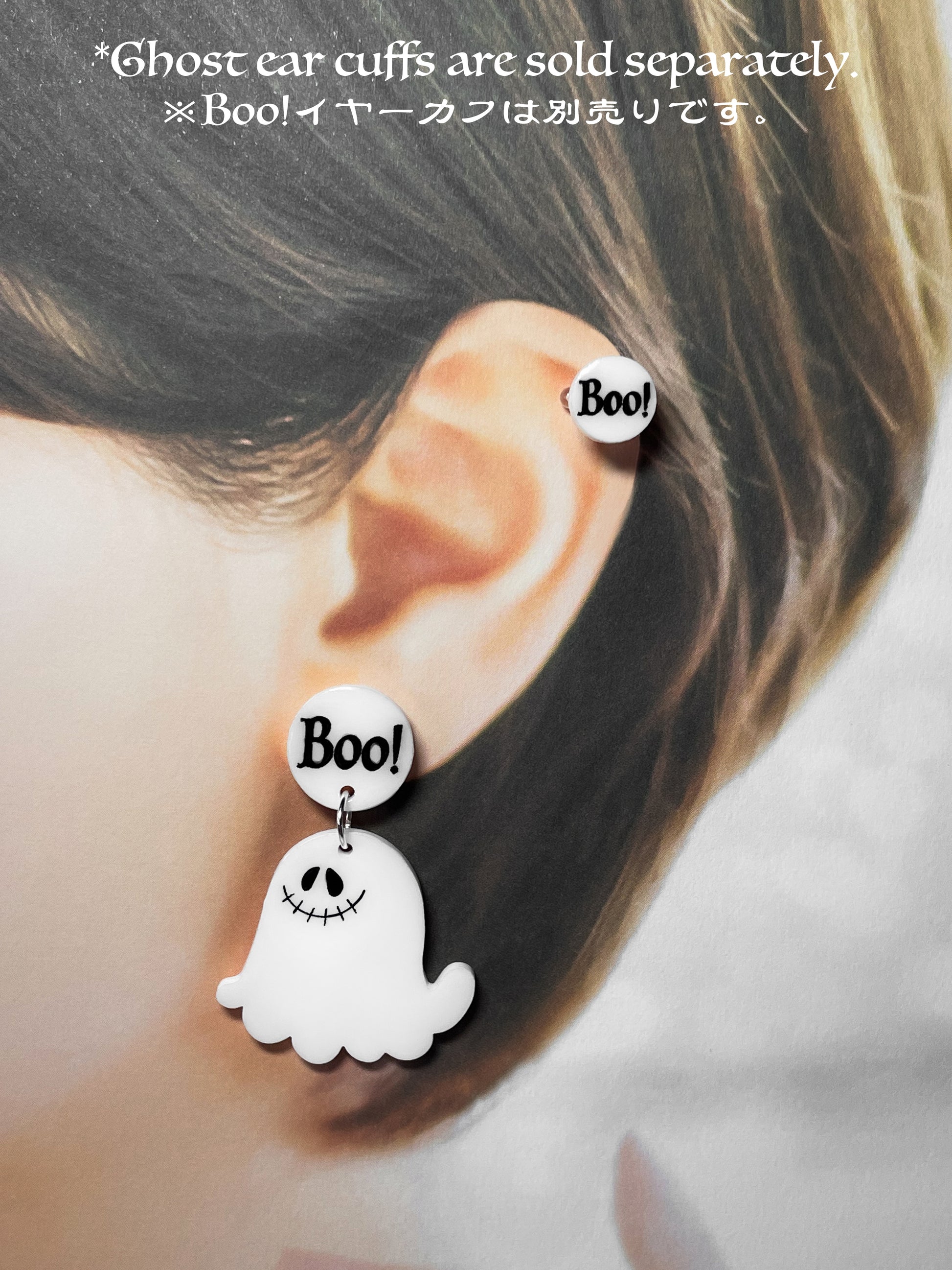 Boo! Ghost drop earrings (asymmetry)