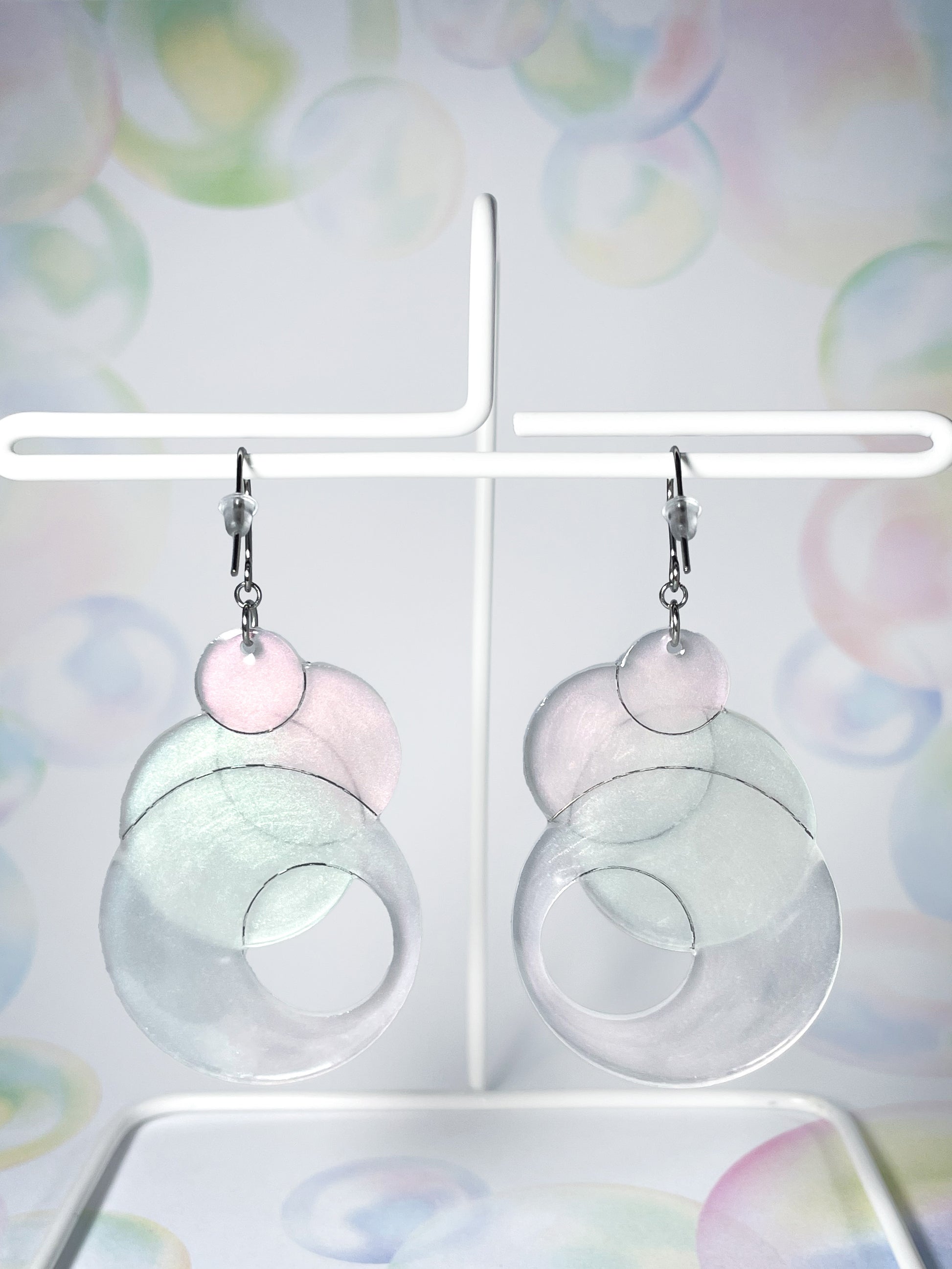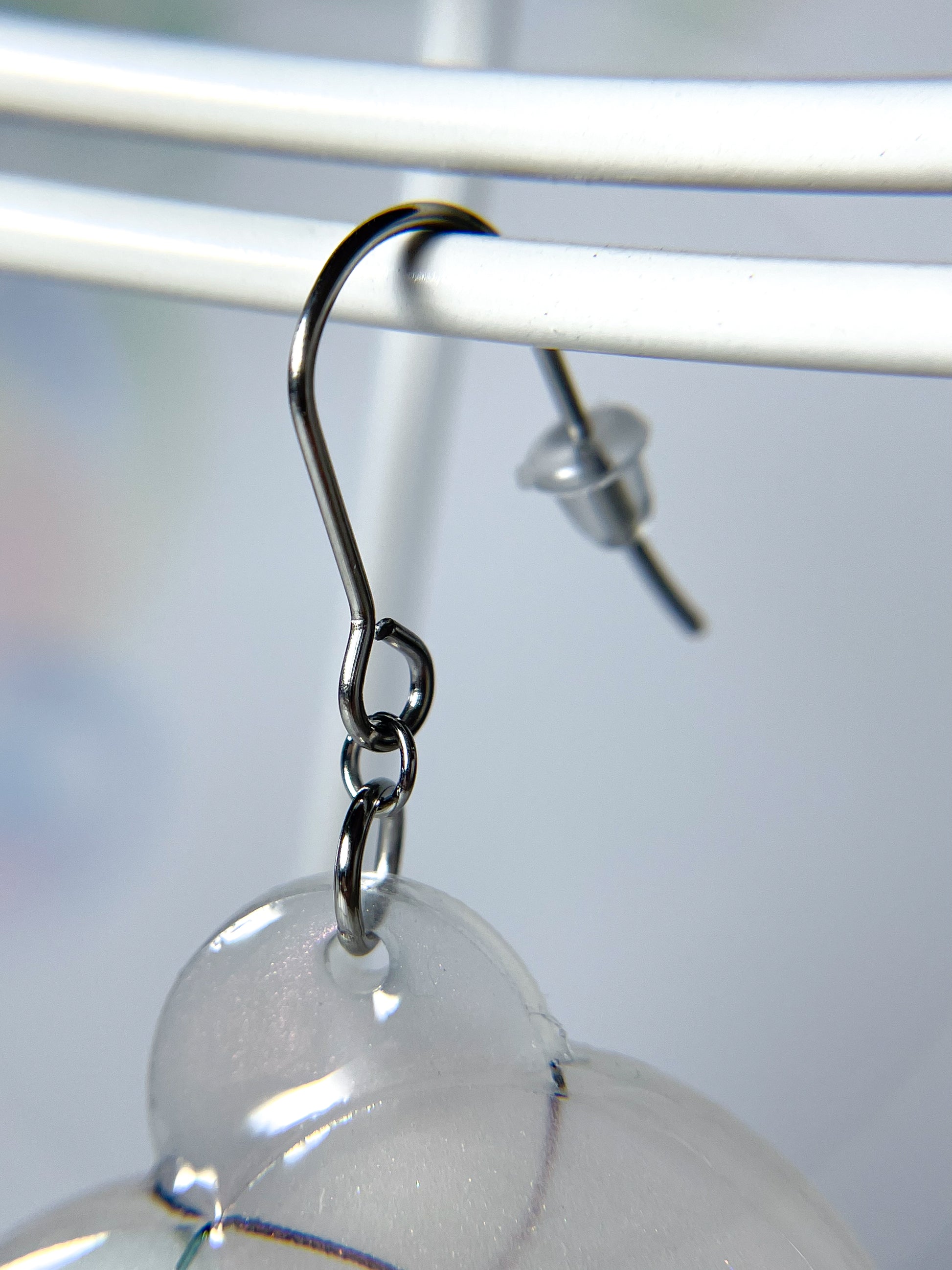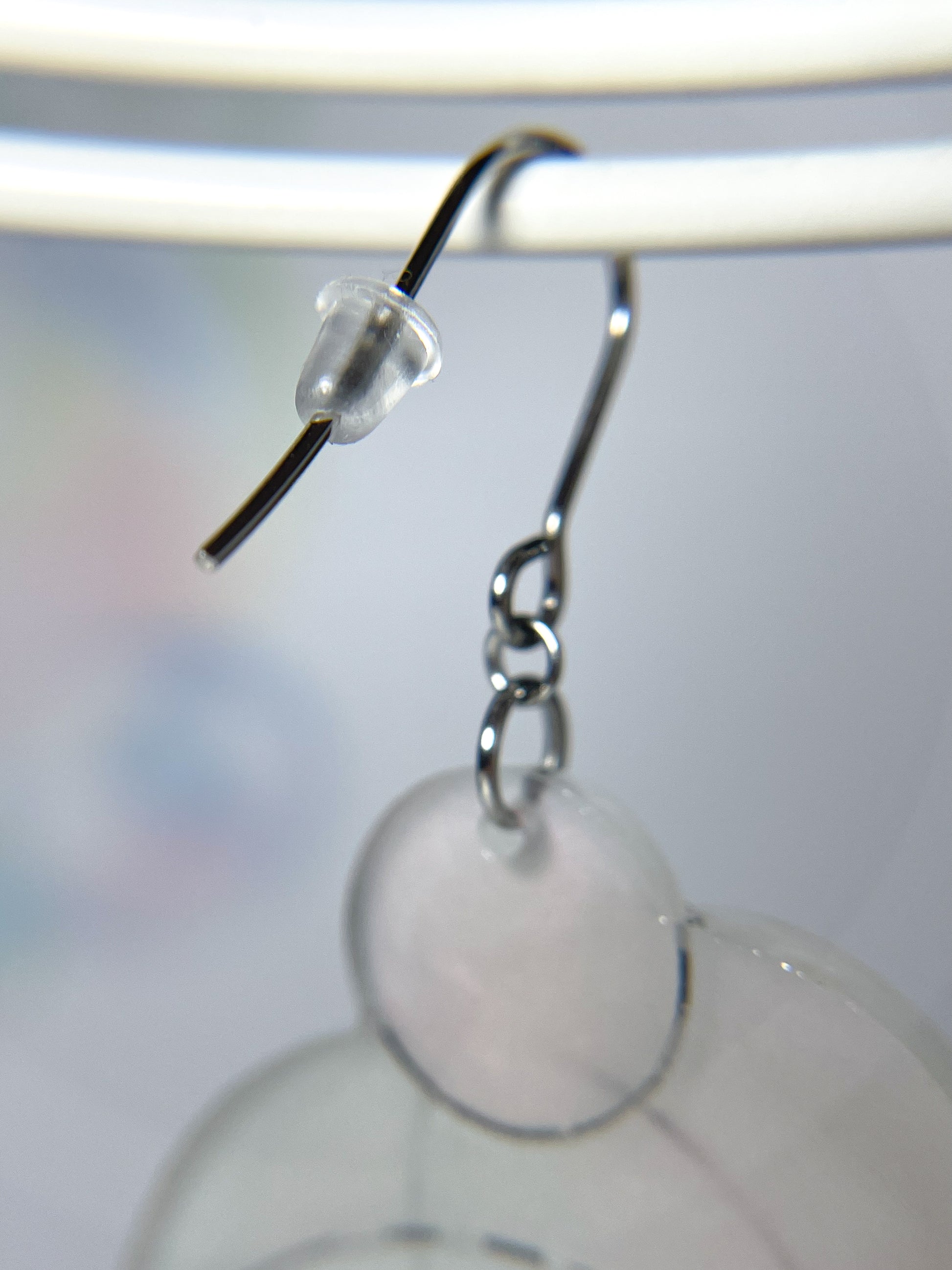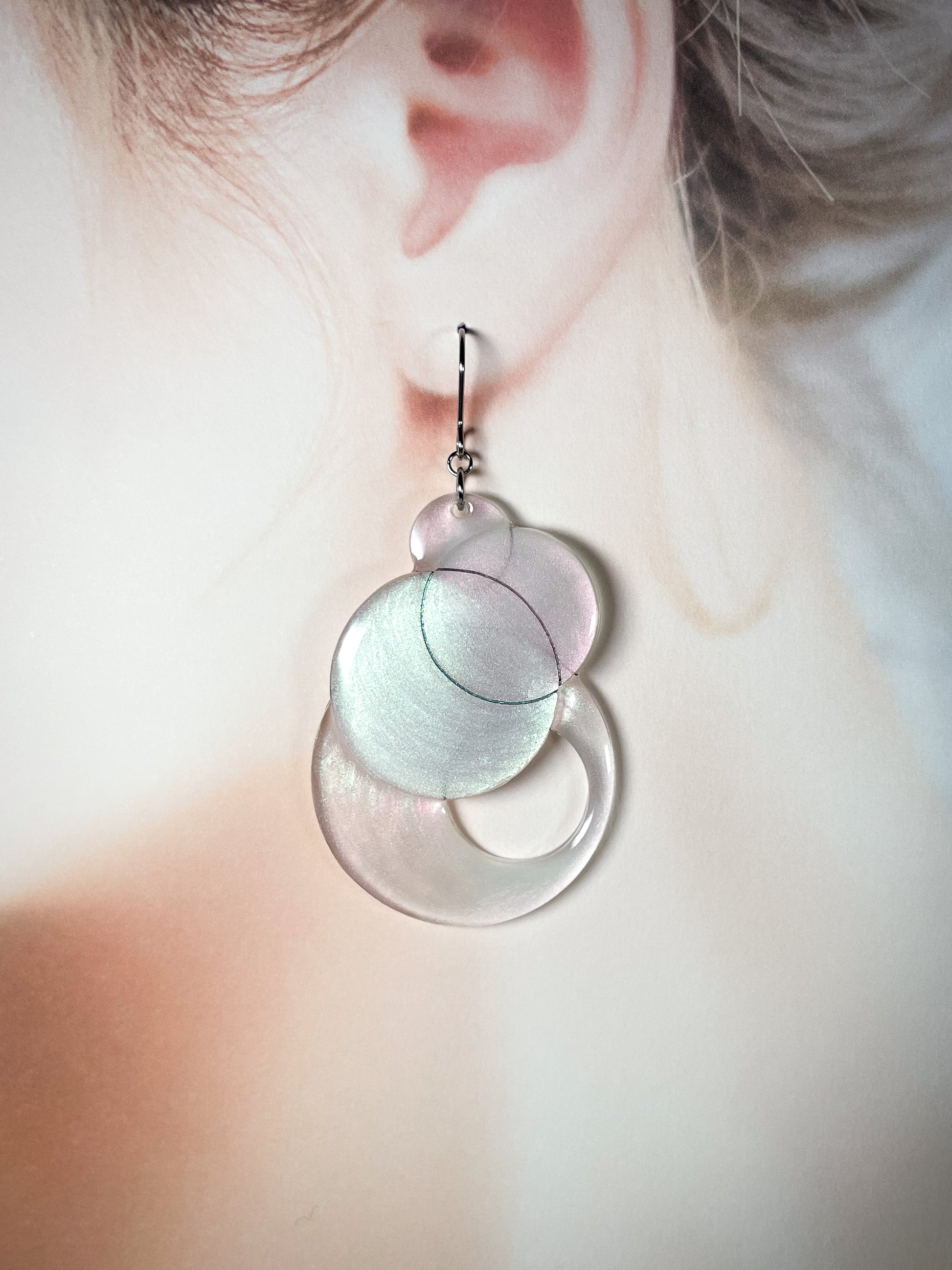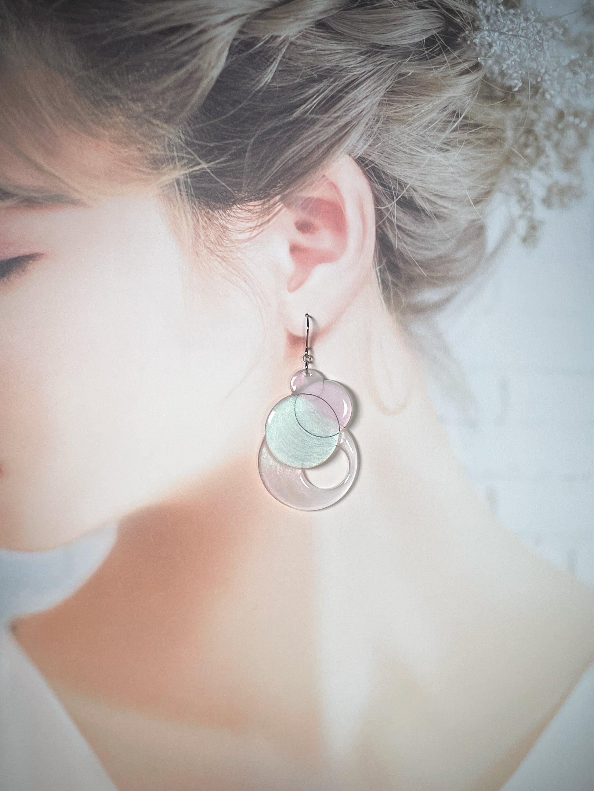 These earrings are made from 4 pieces of acrylic plates, hand-painted and coated with acrylic UV/LED resin and finished with surgical stainless steel silver hooks.