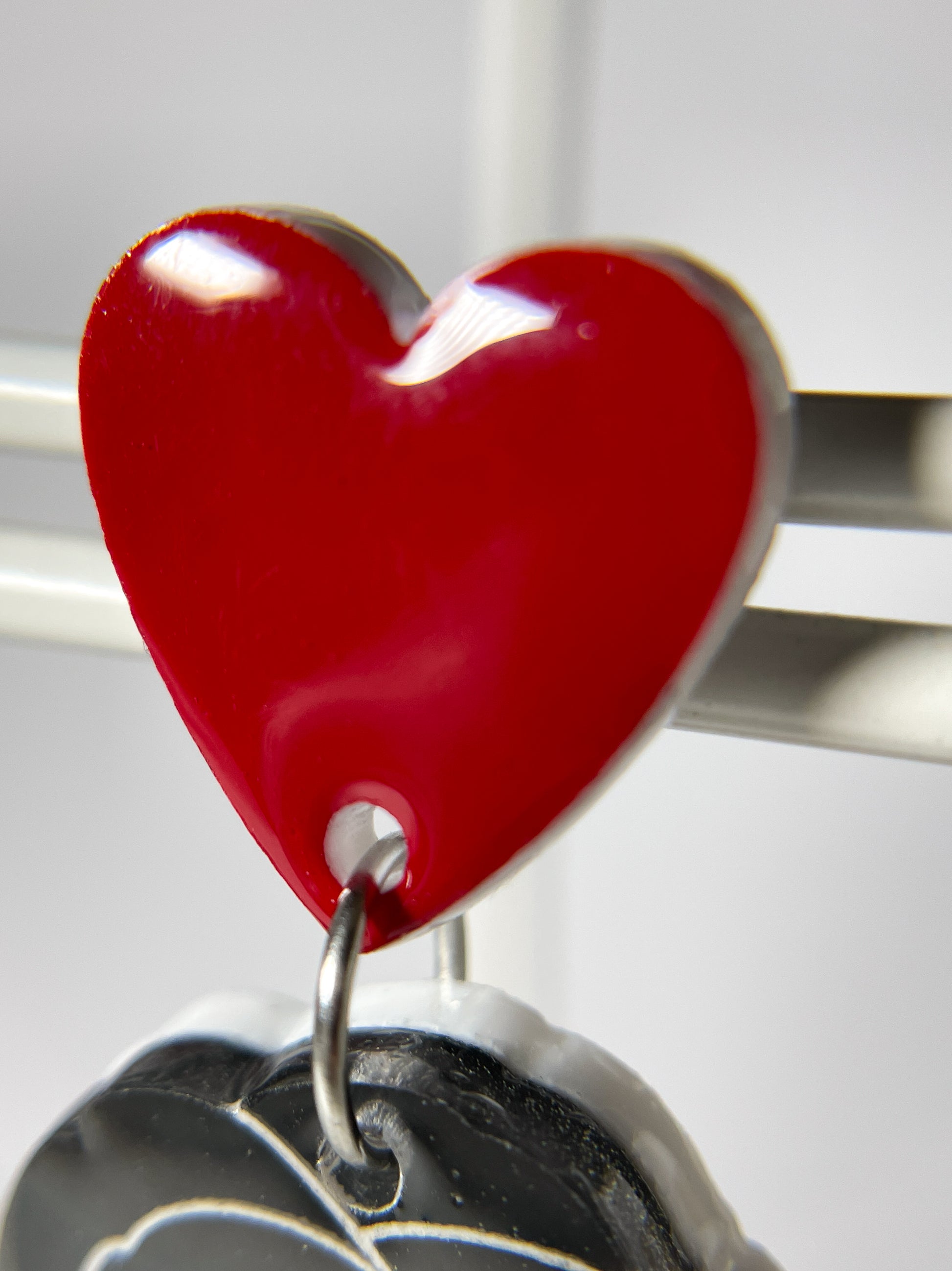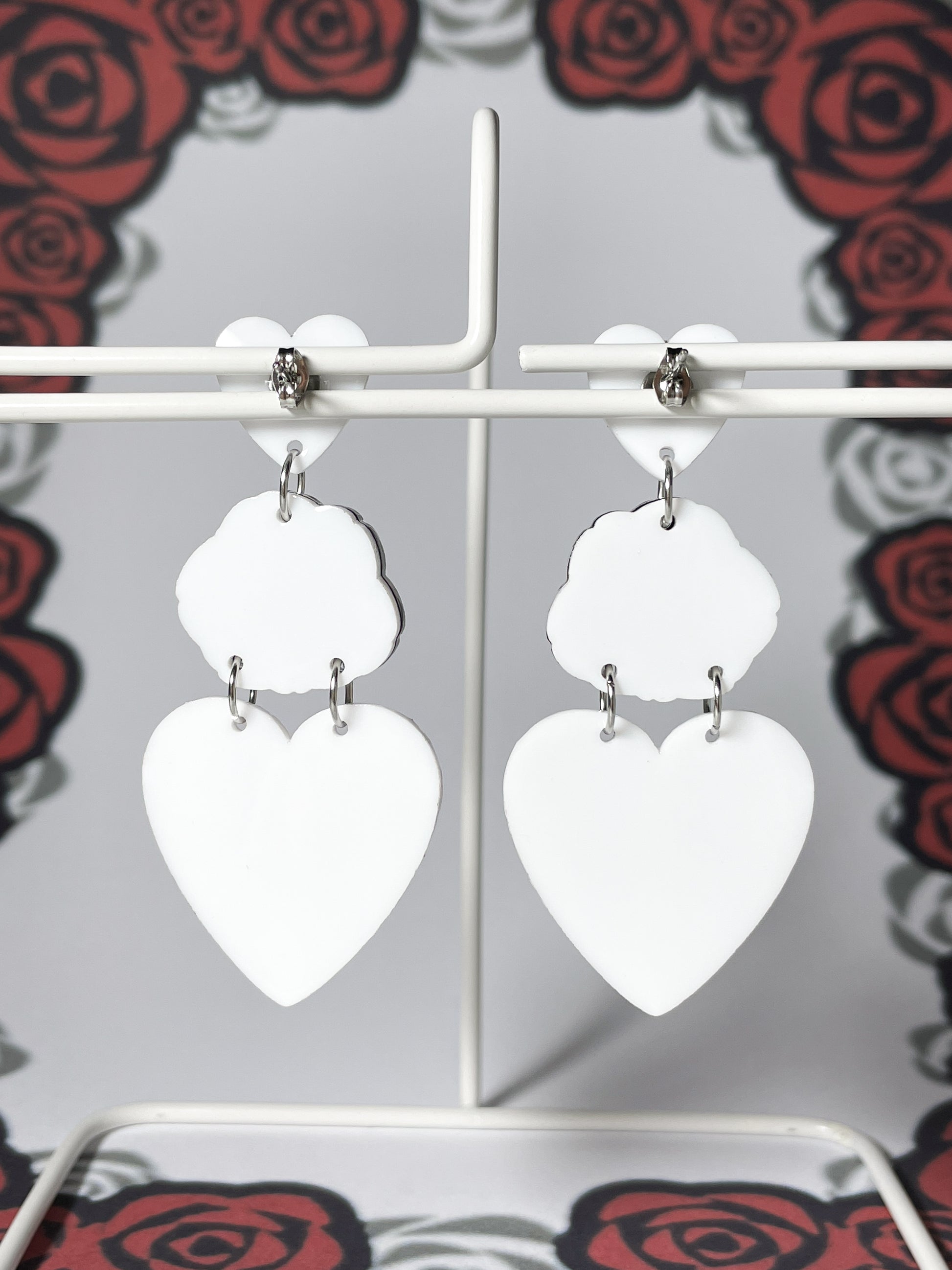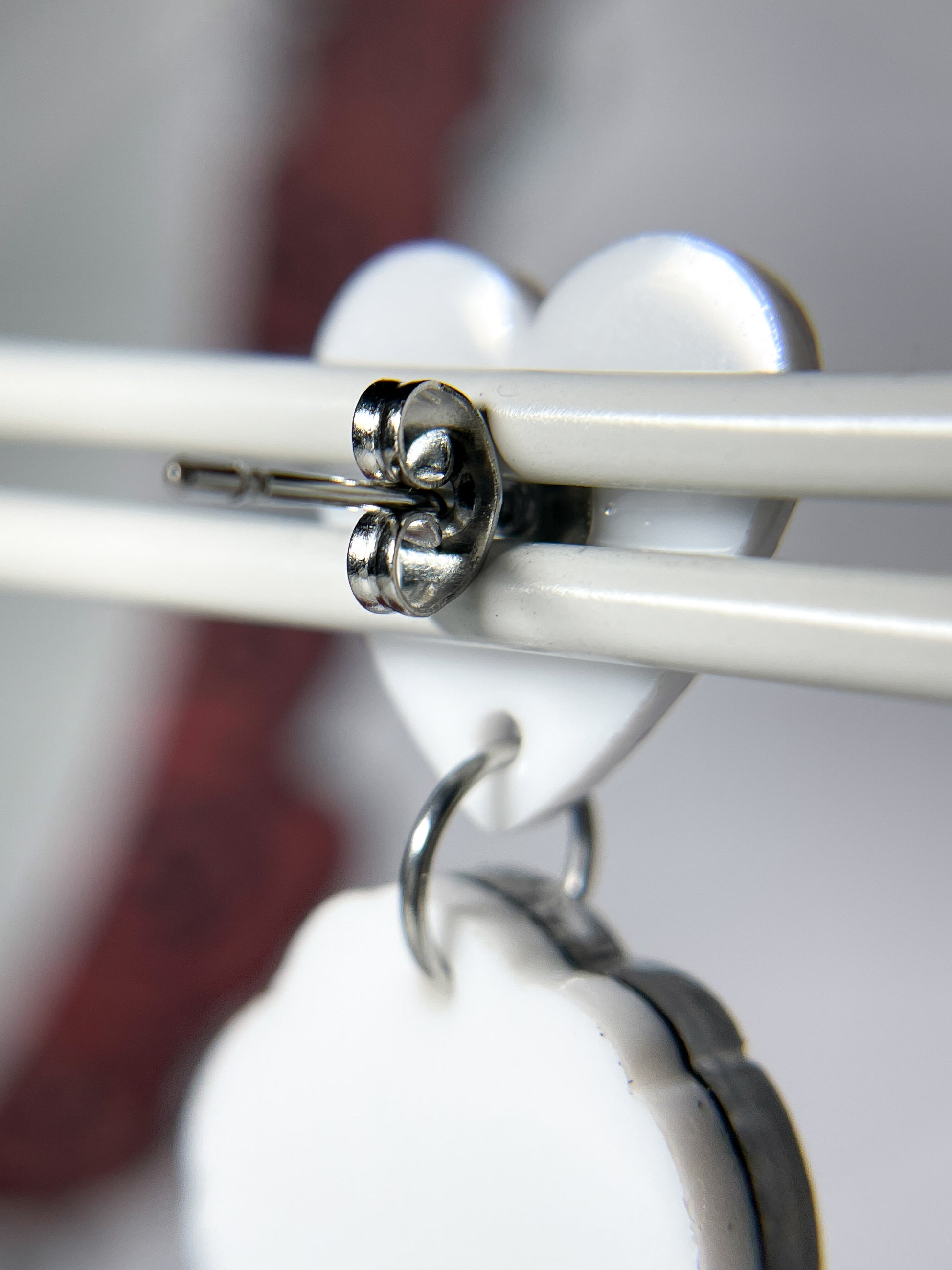 These earrings are made from 8 pieces of acrylic plates, hand-painted and coated with acrylic UV/LED resin and finished with silver-plated surgical stainless steel studs.