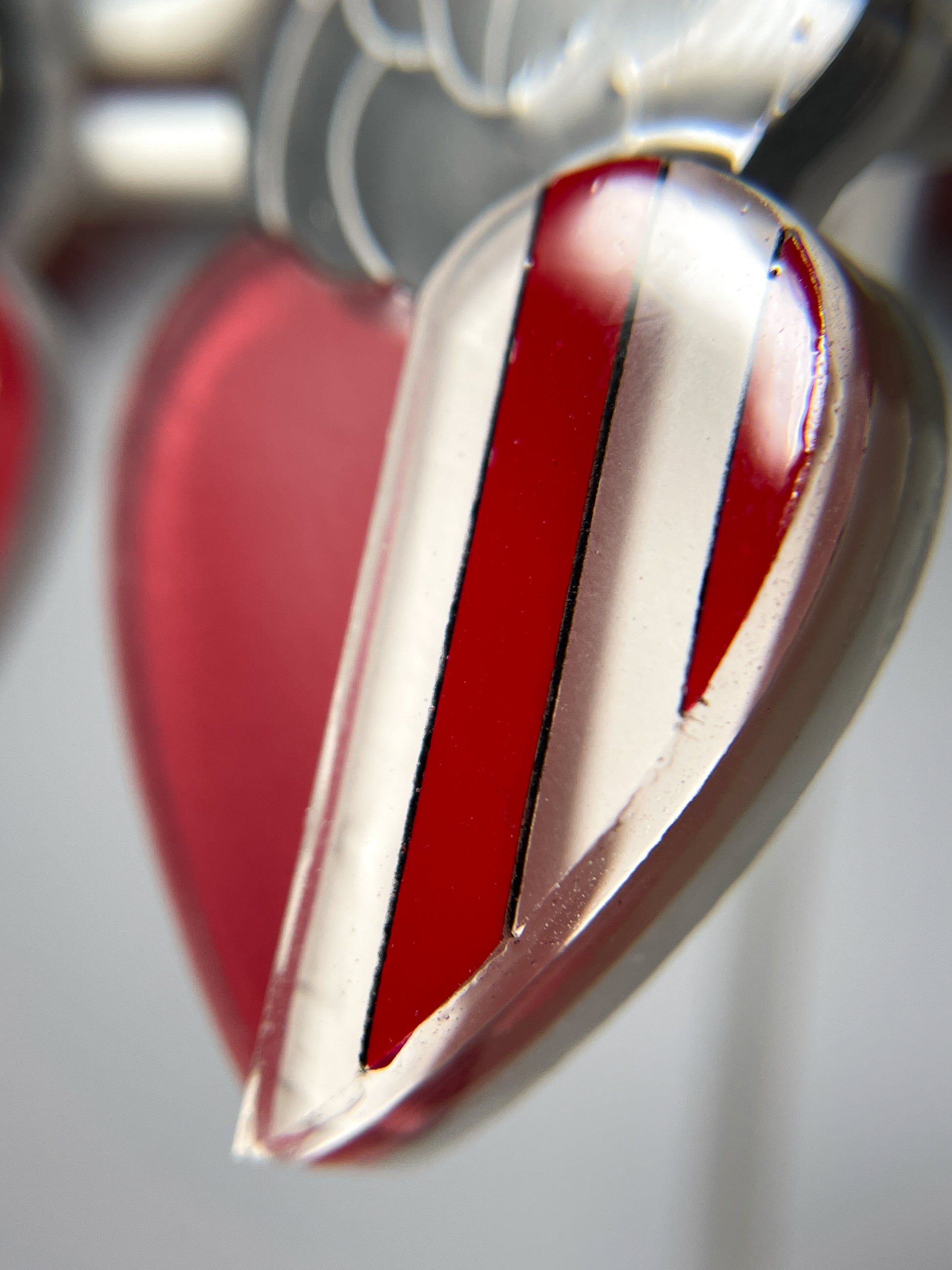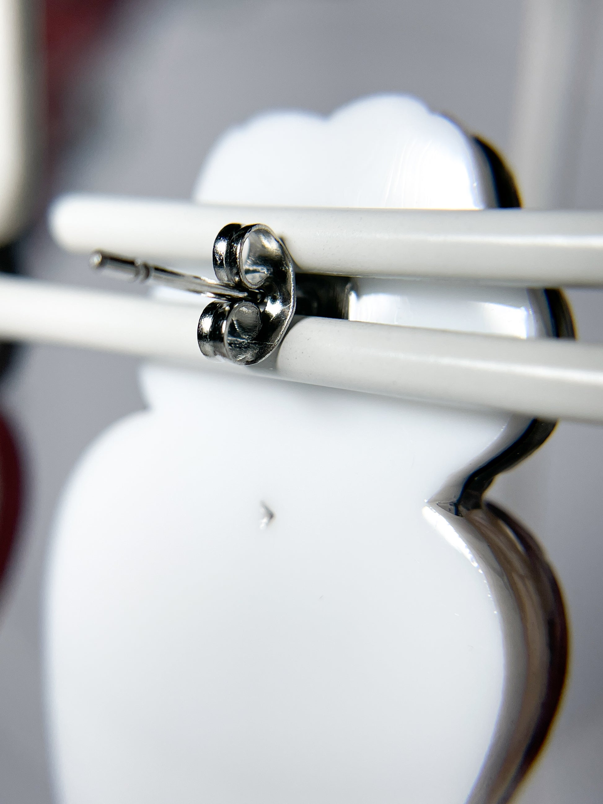 These earrings are made from 6 pieces of acrylic plates, hand-painted and coated with acrylic UV/LED resin and finished with silver-plated surgical stainless steel studs.