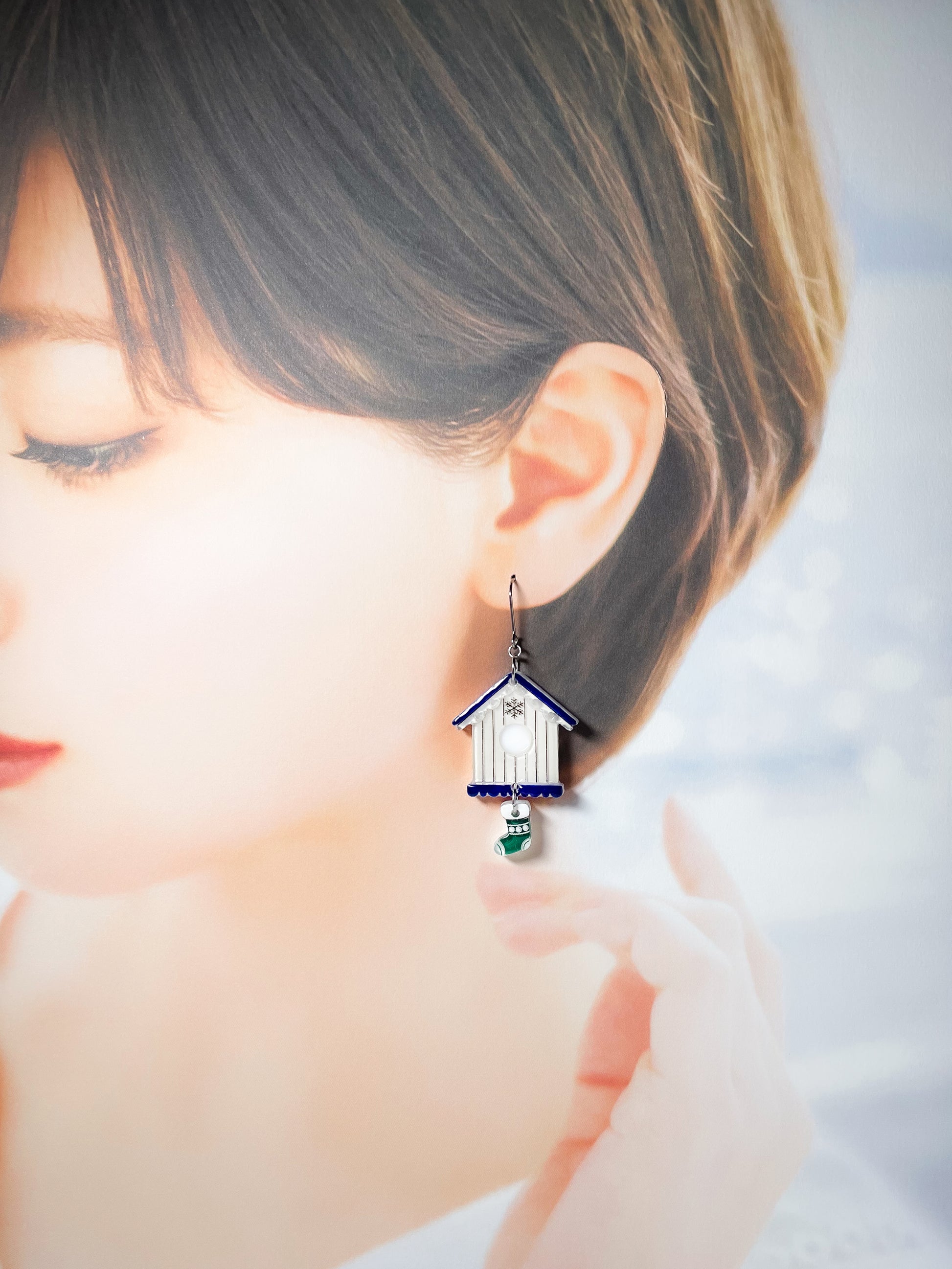 These earrings are made from 16 pieces of acrylic plates, hand-painted and coated with acrylic UV/LED resin and finished with silver-plated surgical stainless steel studs.