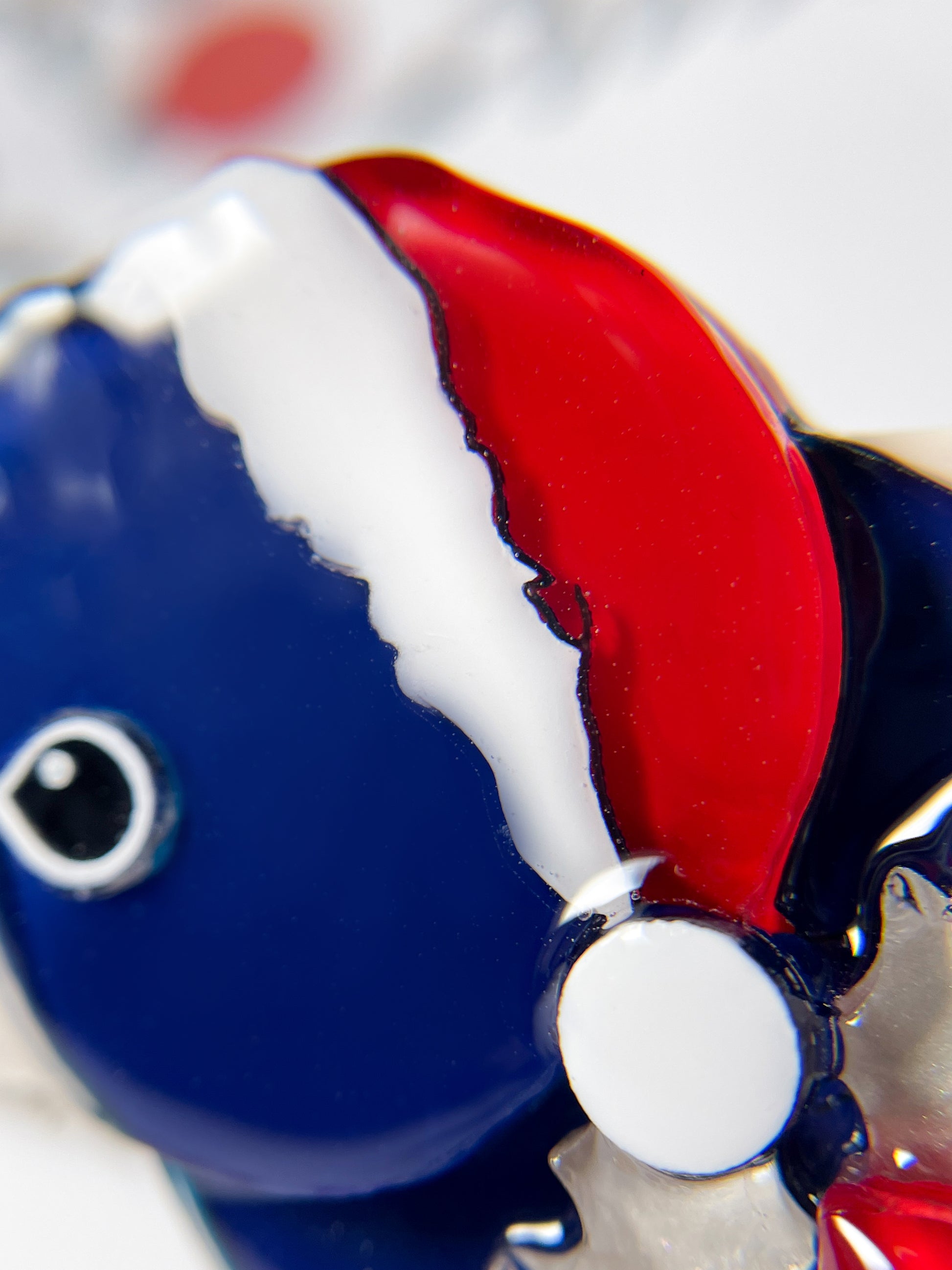 This brooch is made from 11 pieces of hand-painted acrylic plates, assembled and coated with acrylic UV/LED resin and backed with a silver brooch pin.