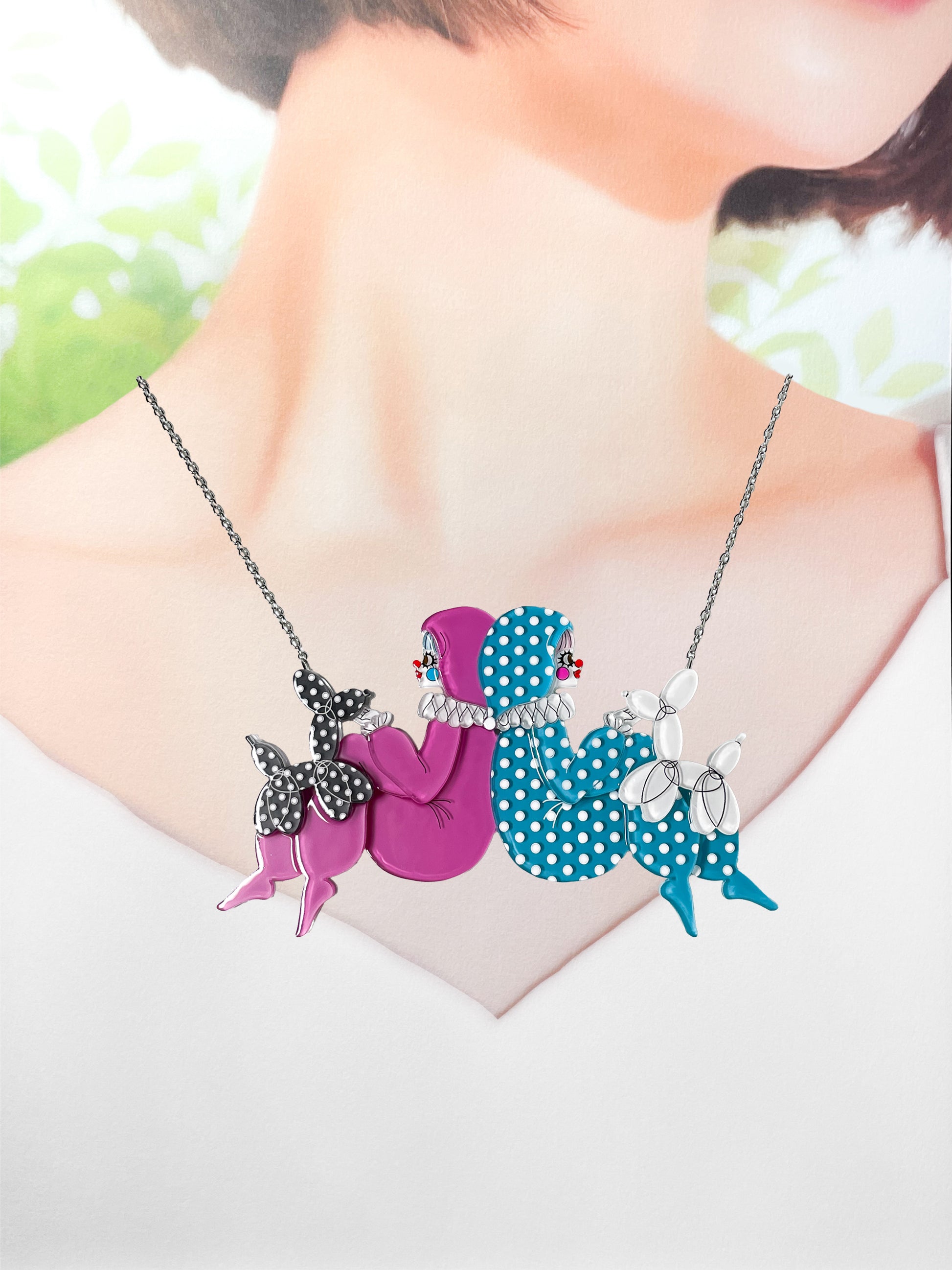 Clowns with Balloon Dogs Necklace