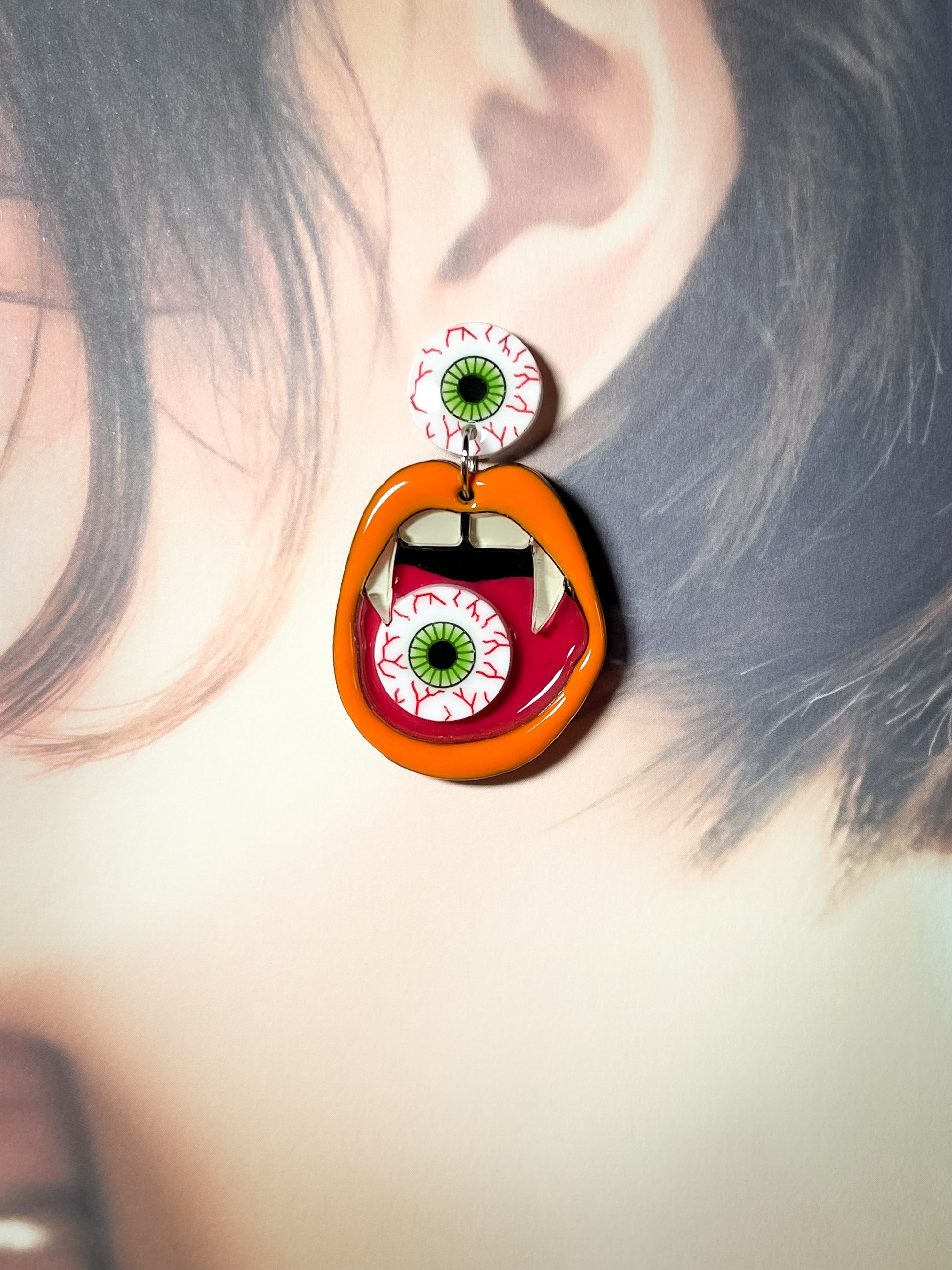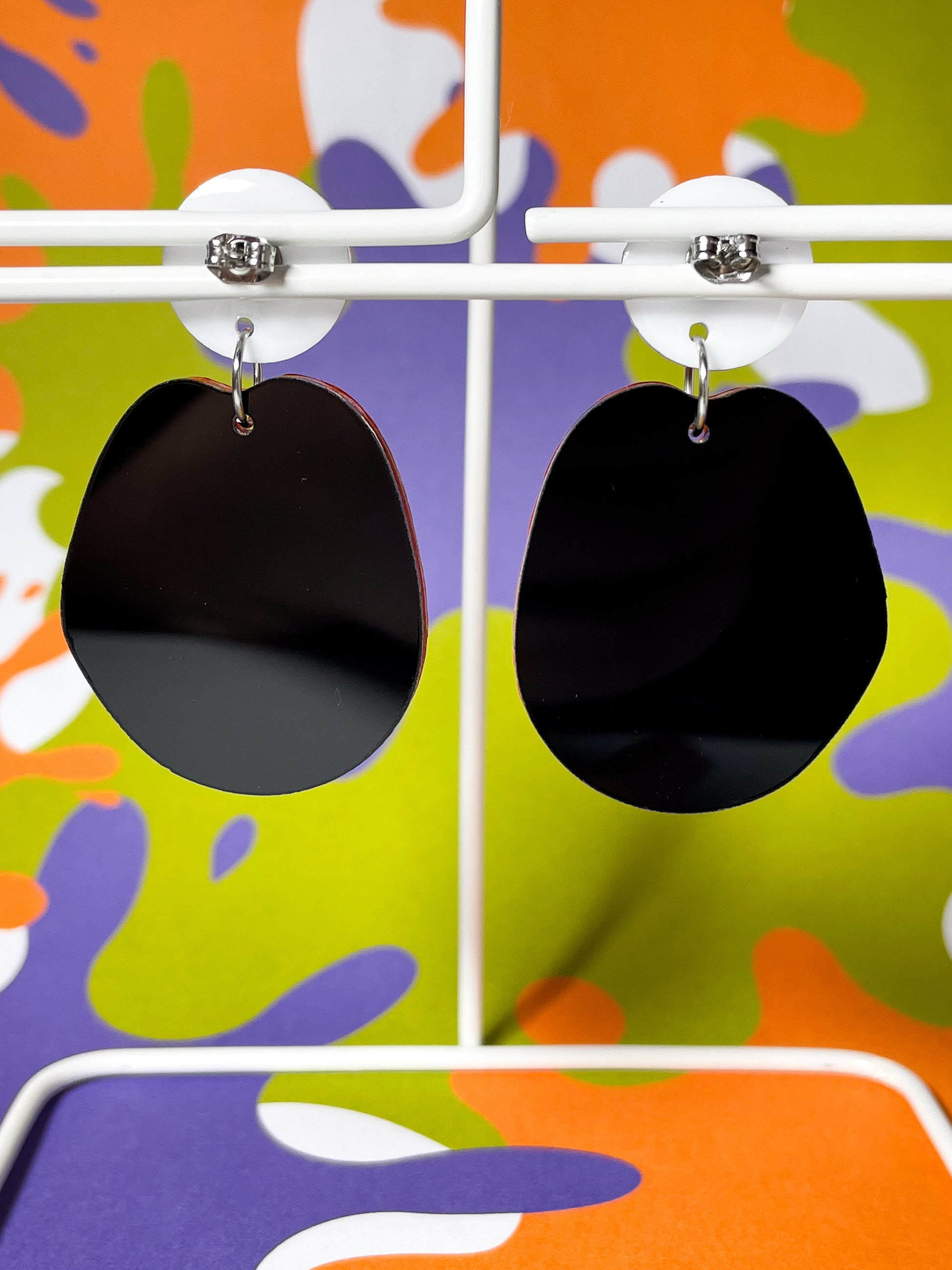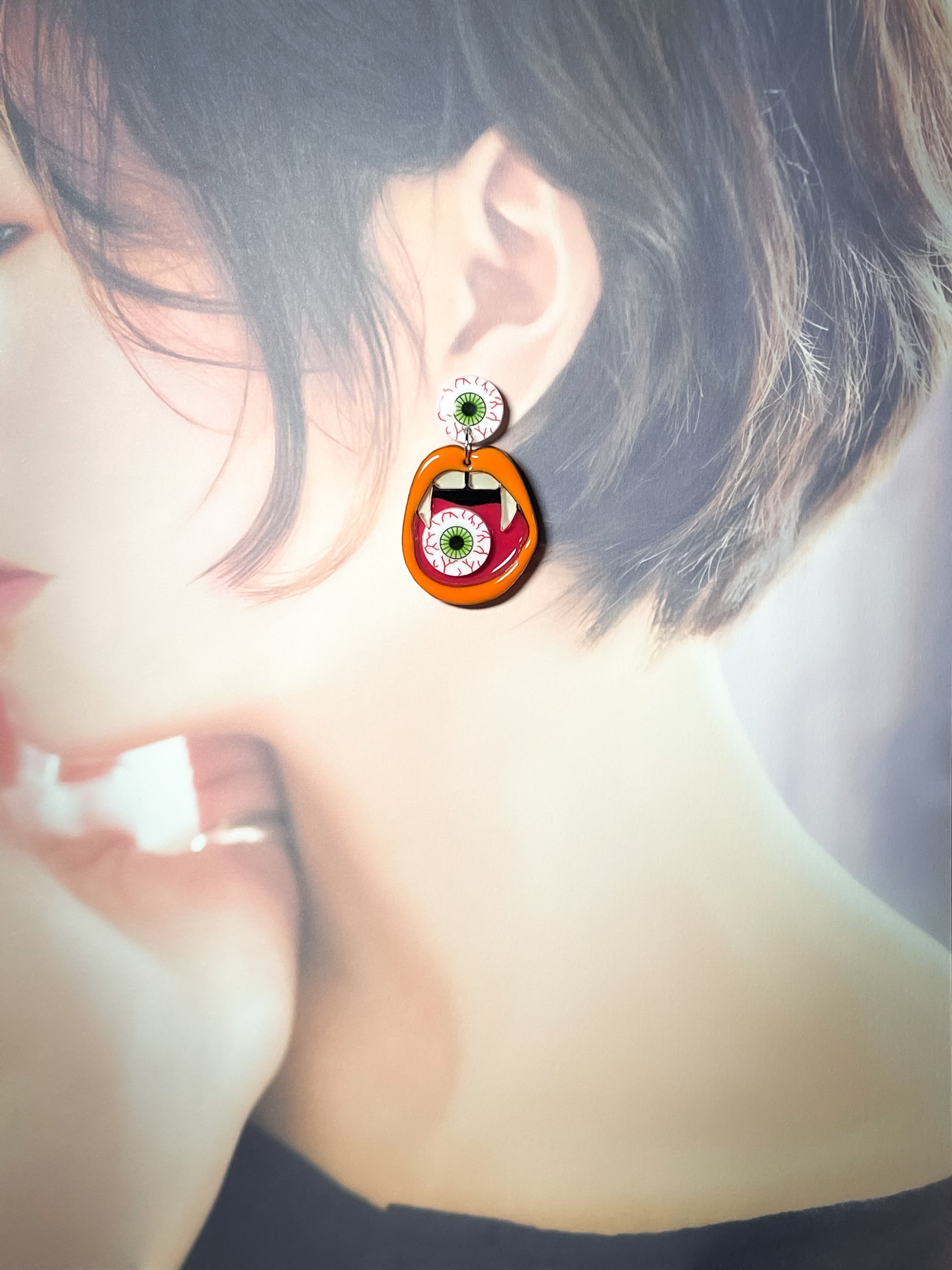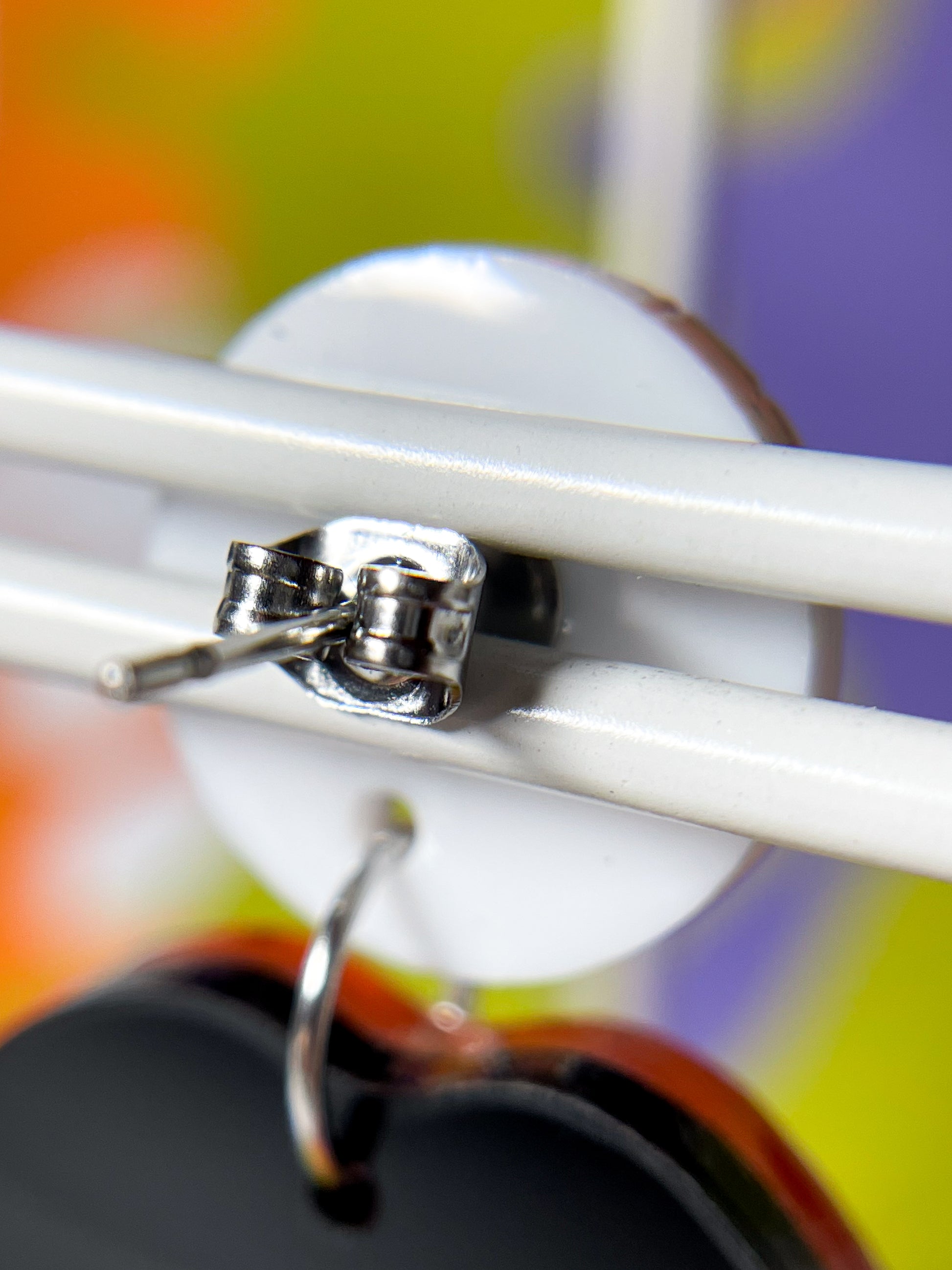 These earrings are made from 8 pieces of acrylic plates, hand-painted and coated with acrylic UV/LED resin and finished with silver-plated surgical stainless steel studs.