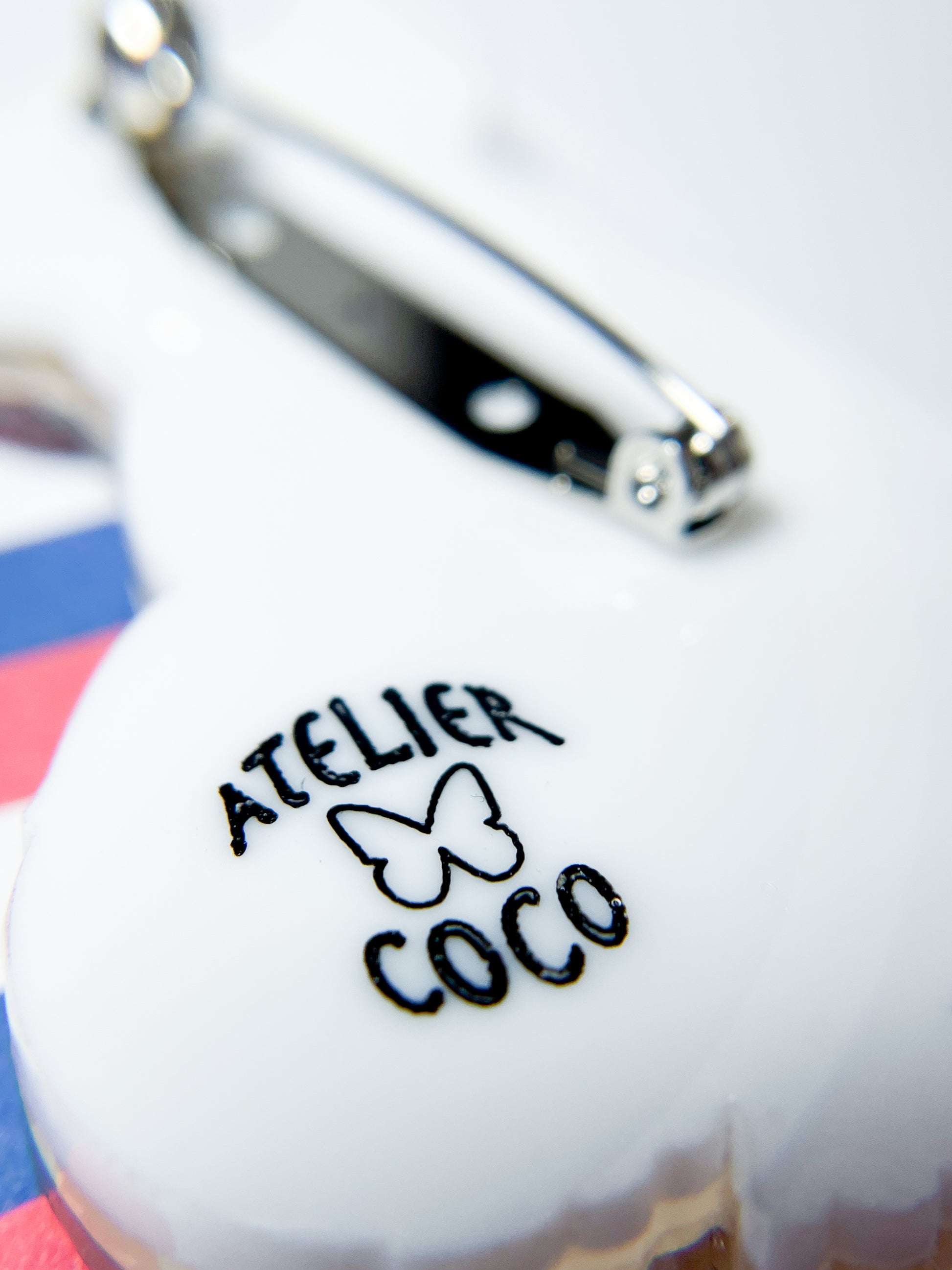 Original design by a Japanese accessory artist Coco and each brooch has the "ATELIER COCO" logo on the back.