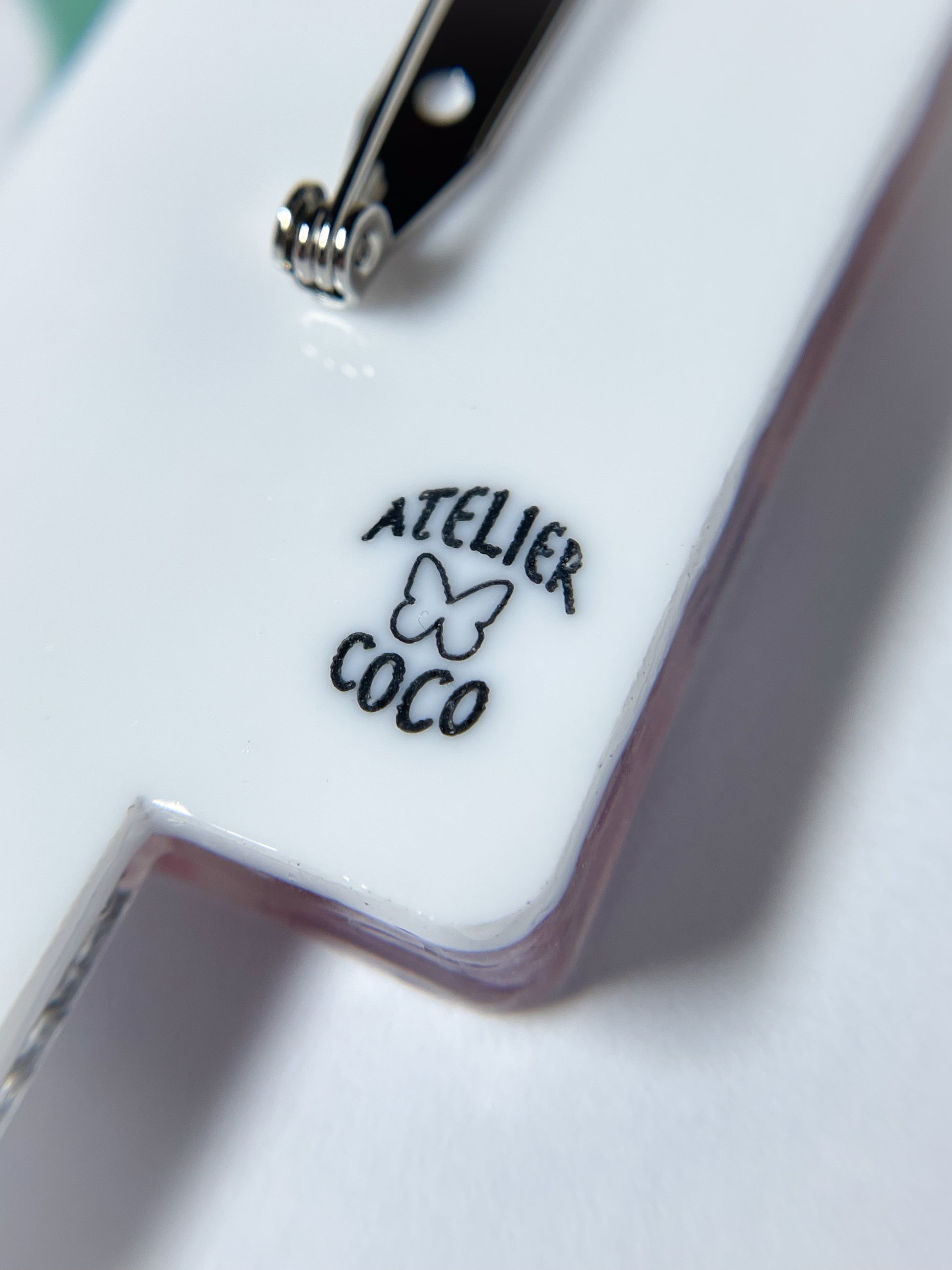 Original design by a Japanese accessory artist Coco and each brooch has the "ATELIER COCO" logo on the back.