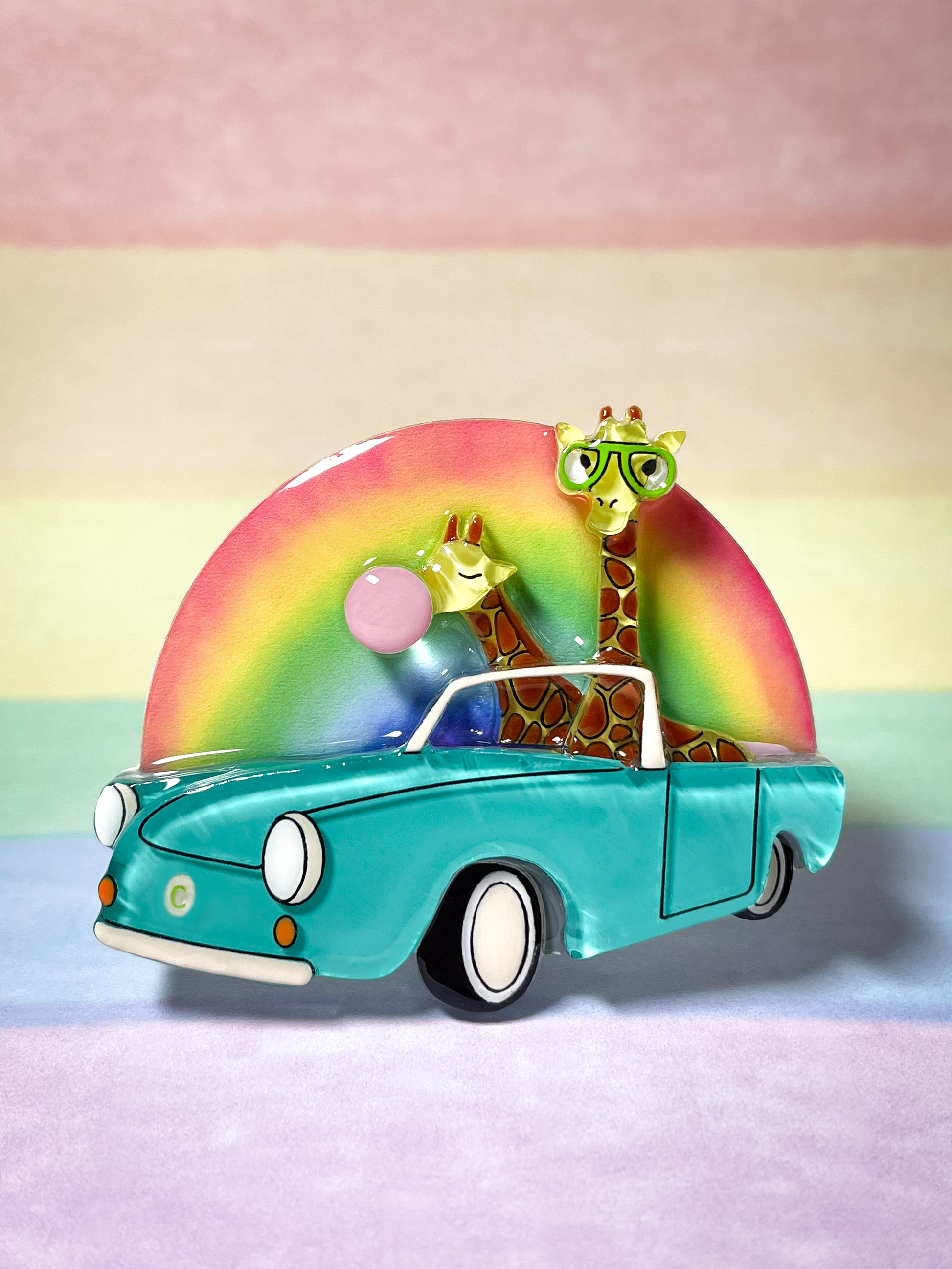Giraffes Drive in the Rainbow Brooch
