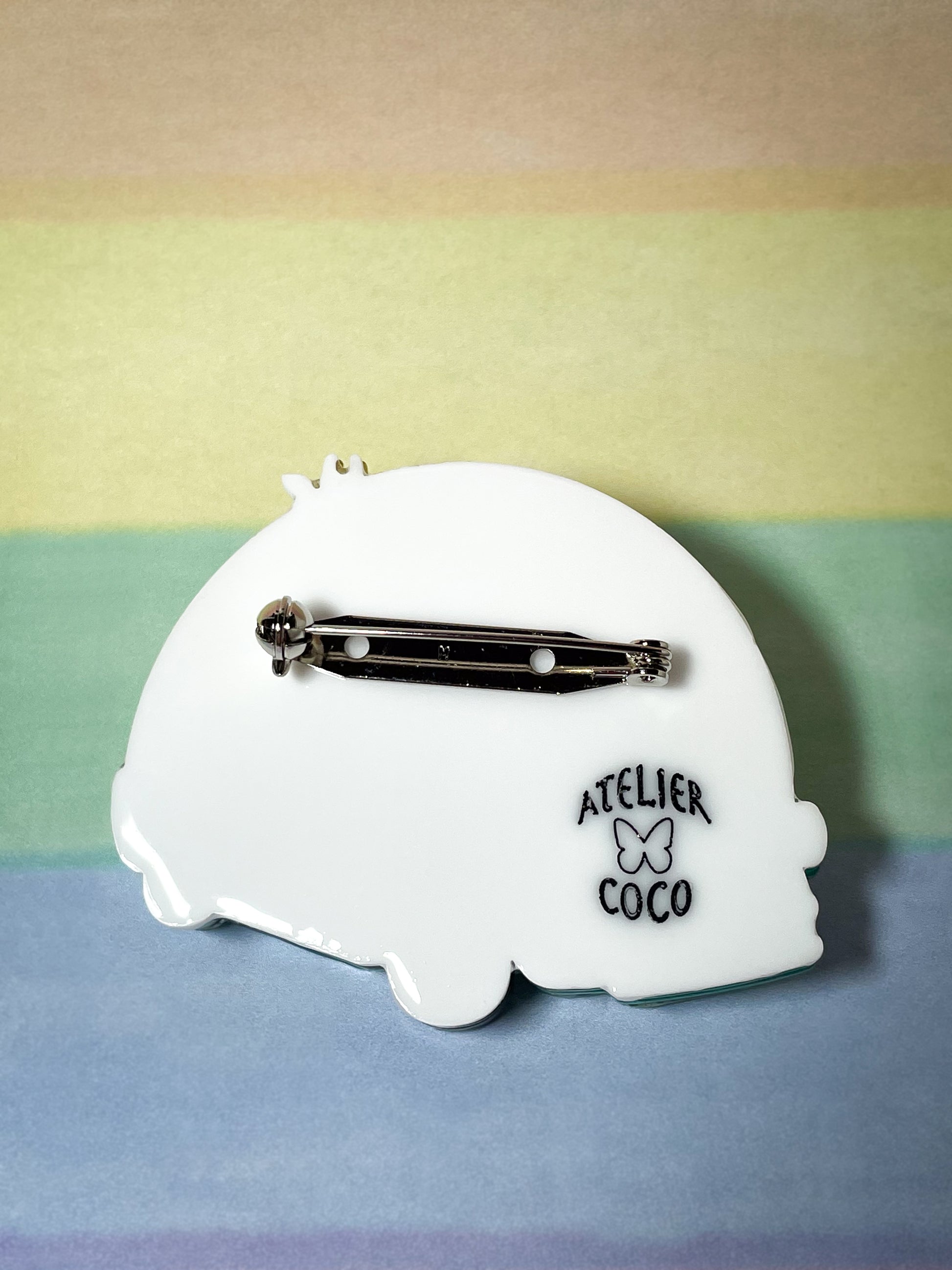 Original design by a Japanese accessory artist Coco and each brooch has the "ATELIER COCO" logo on the back.