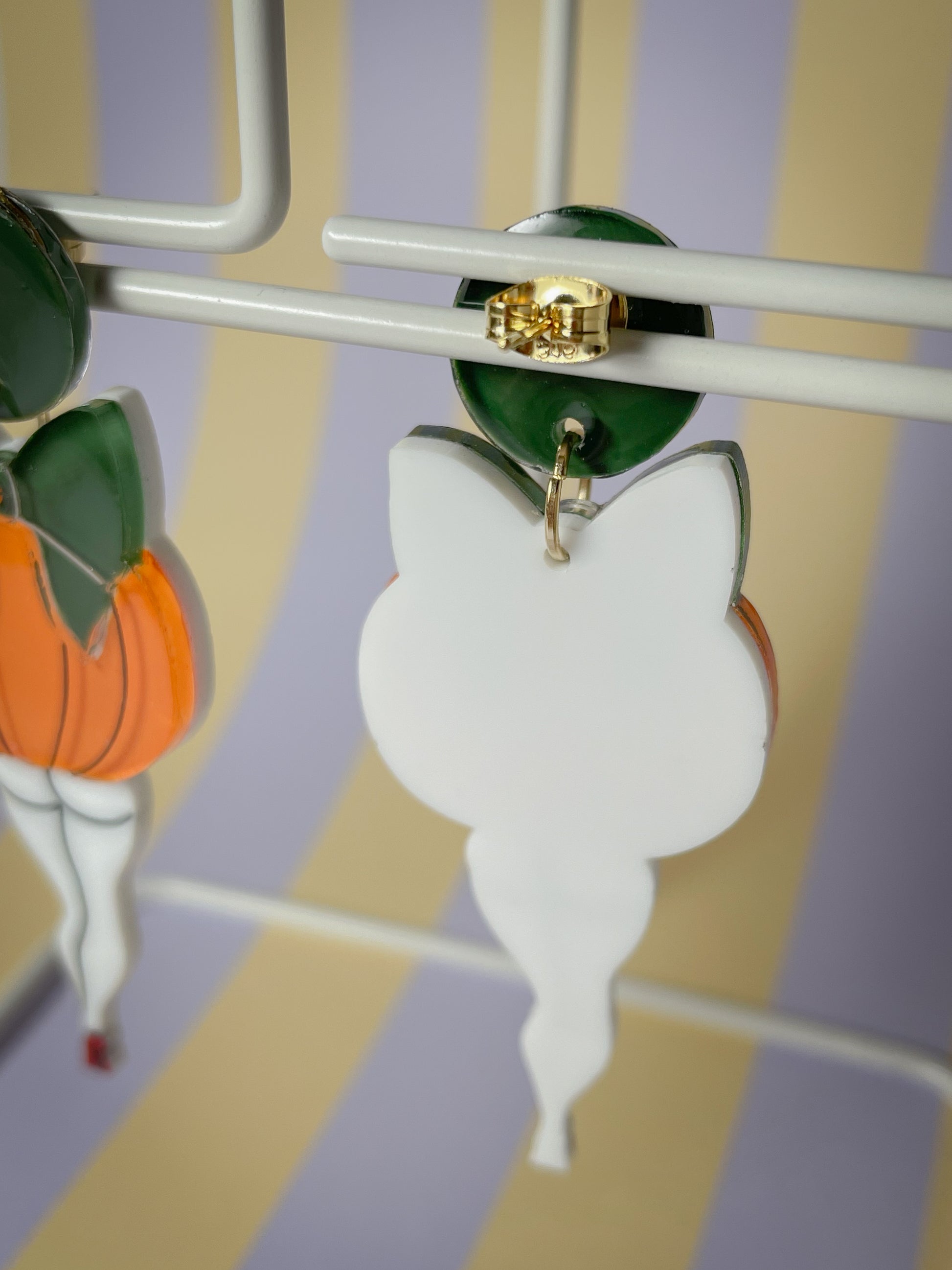 Those earrings are made from 8 pieces of acrylic plates, hand-painted and coated with acrylic UV/LED resin and finished with gold-plated surgical stainless steel studs.