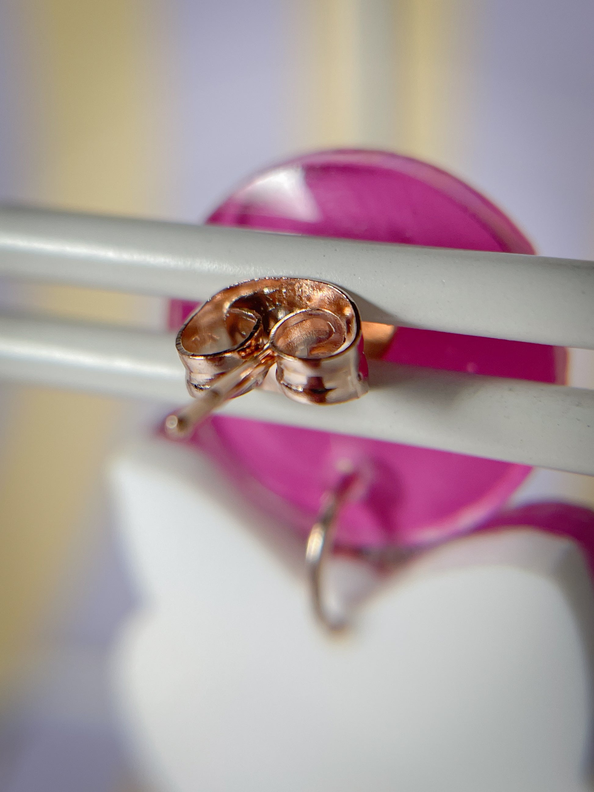 Those earrings are made from 8 pieces of acrylic plates, hand-painted and coated with acrylic UV/LED resin and finished with pink gold-plated surgical stainless steel studs.