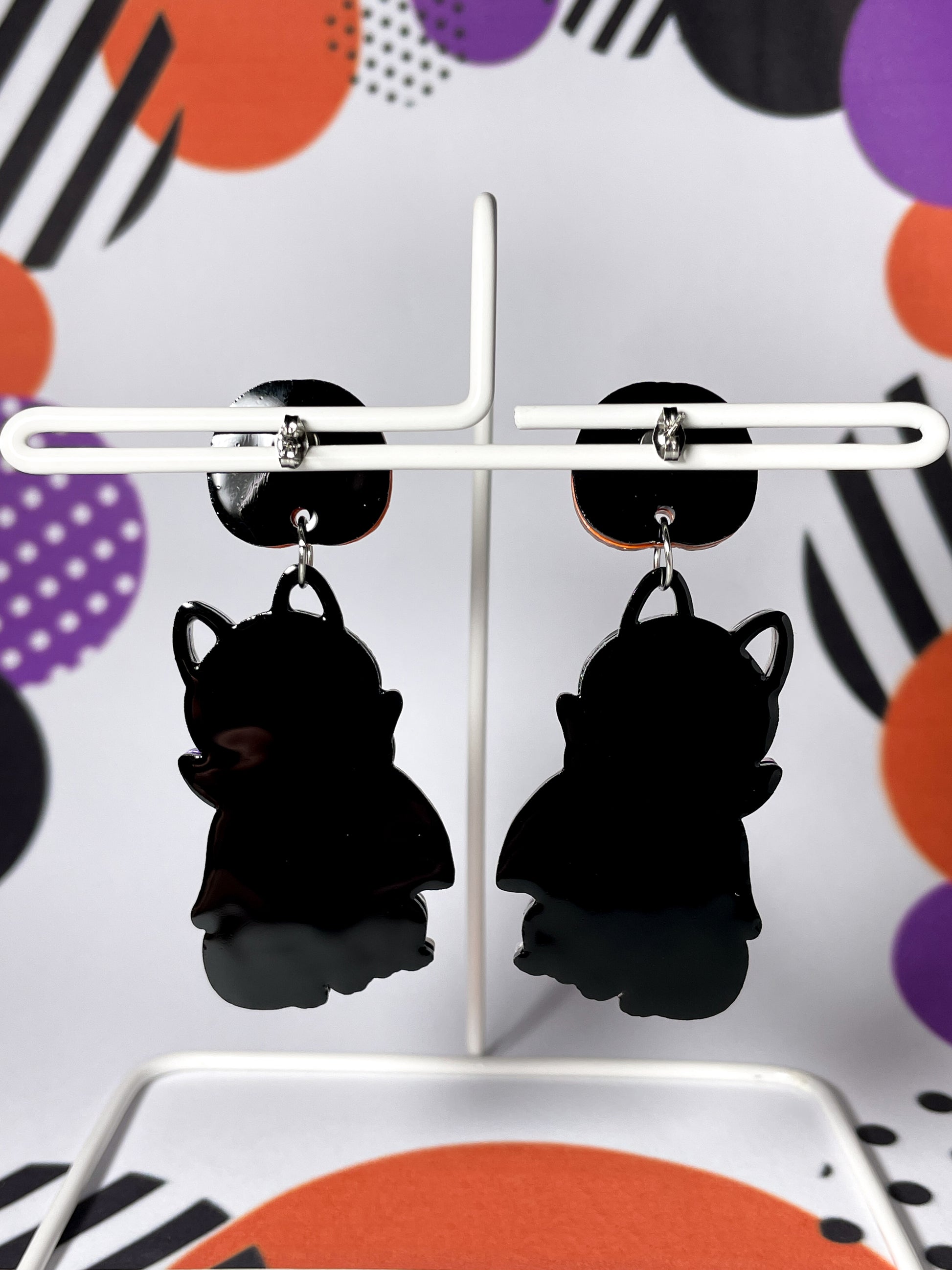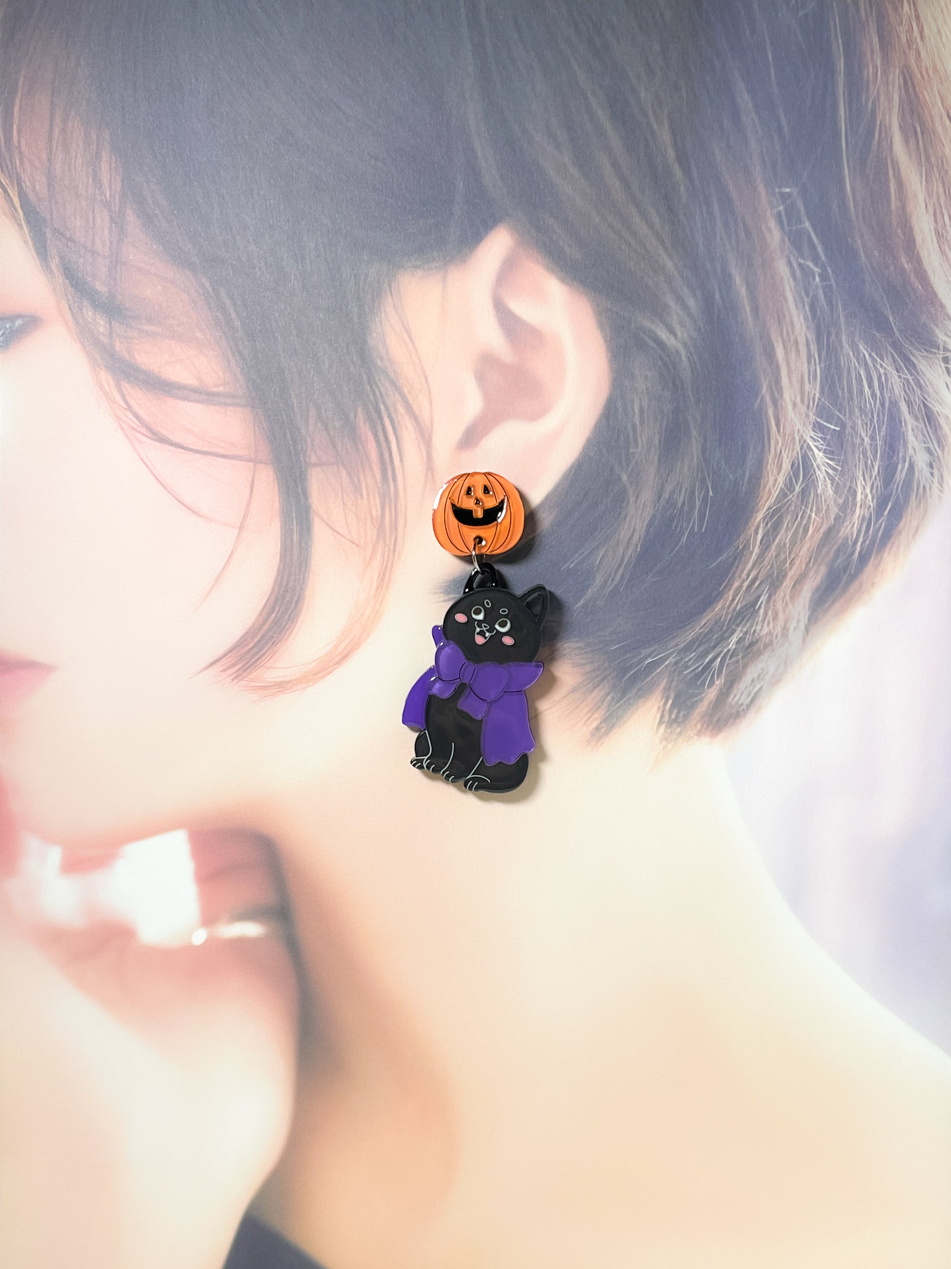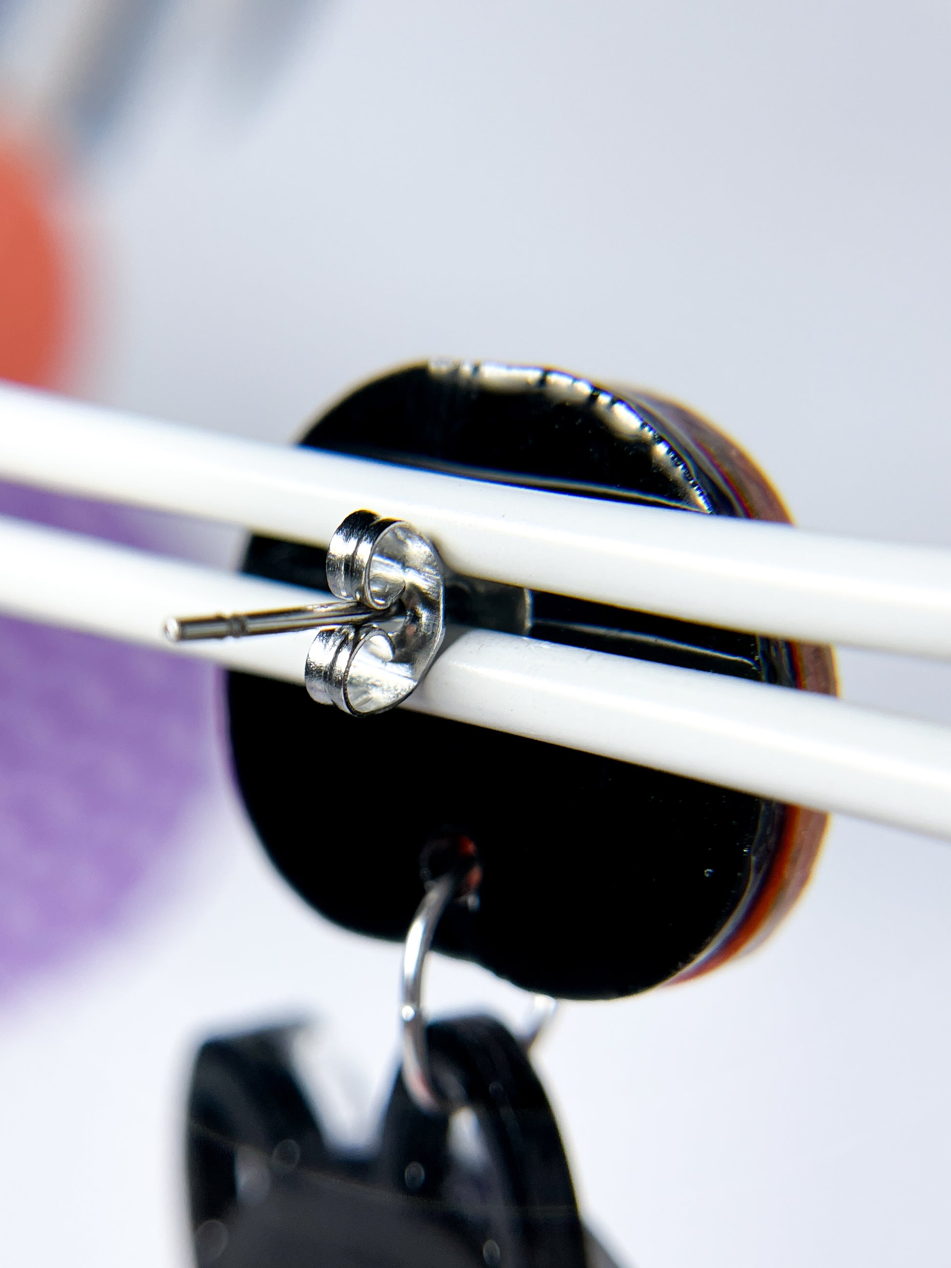 These earrings are made from 14 pieces of acrylic plates, hand-painted and coated with acrylic UV/LED resin and finished with silver-plated surgical stainless steel studs.