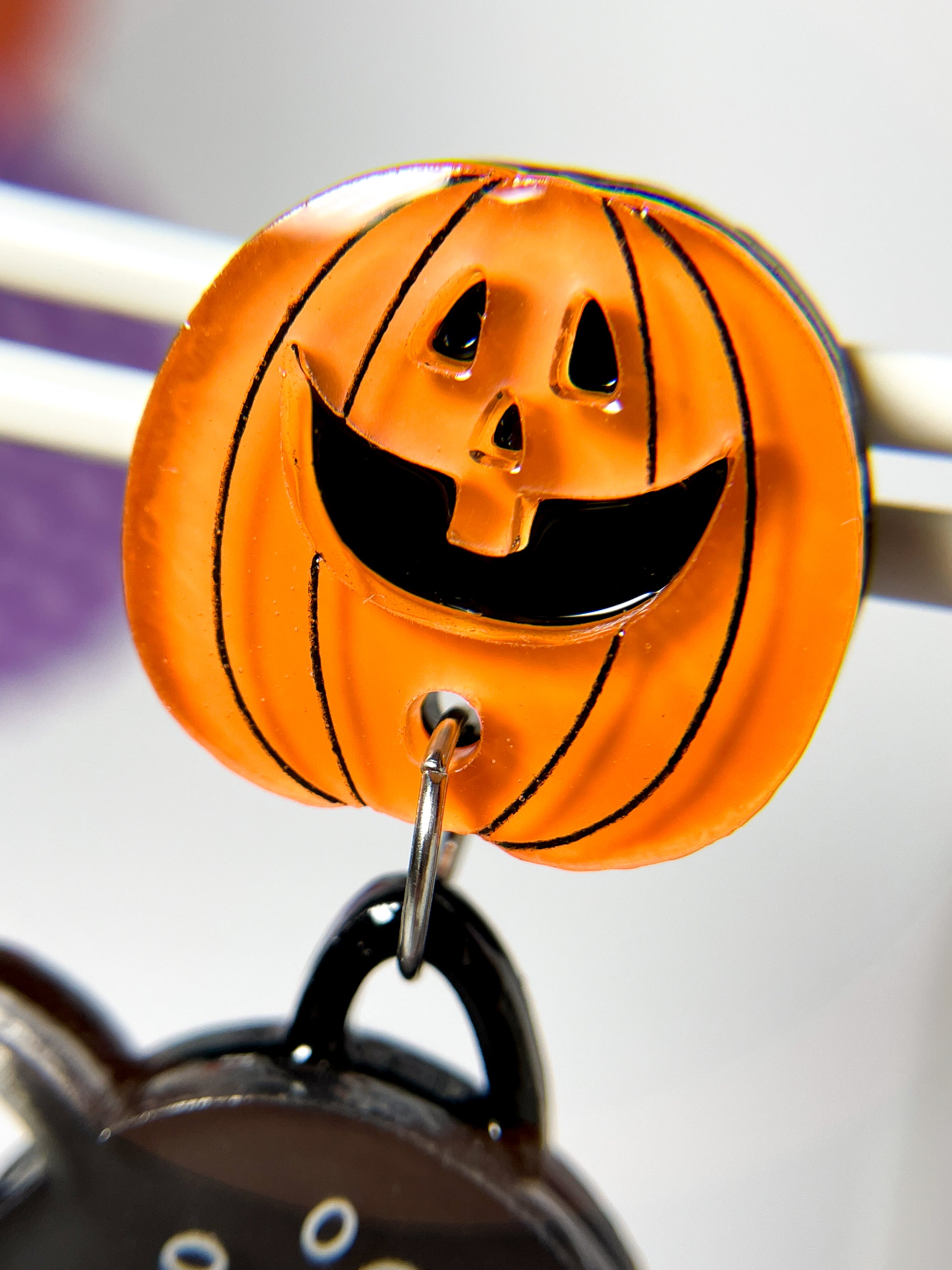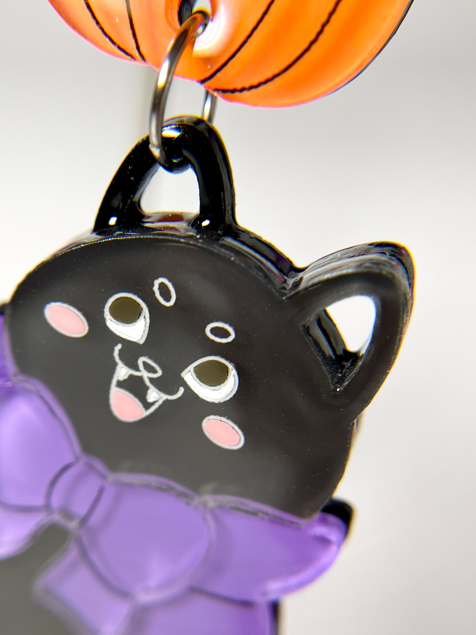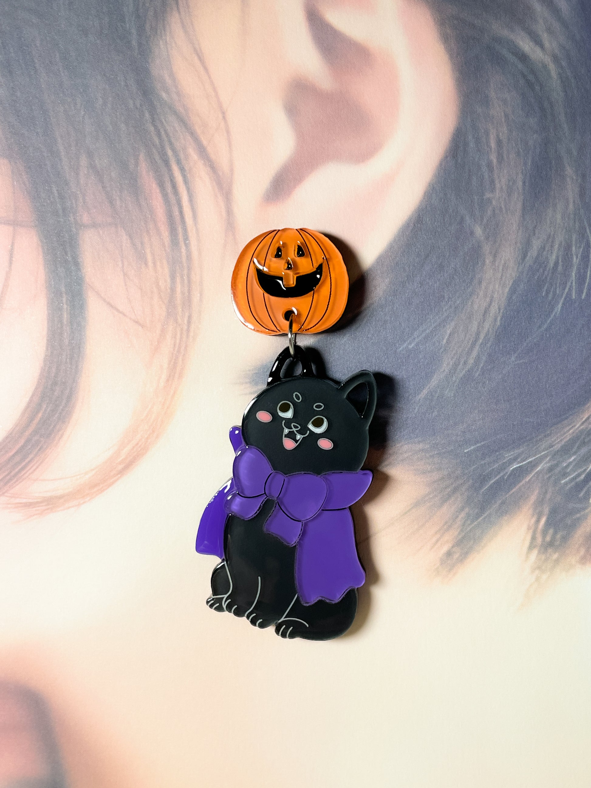 These earrings are made from 14 pieces of acrylic plates, hand-painted and coated with acrylic UV/LED resin and finished with silver-plated surgical stainless steel studs.