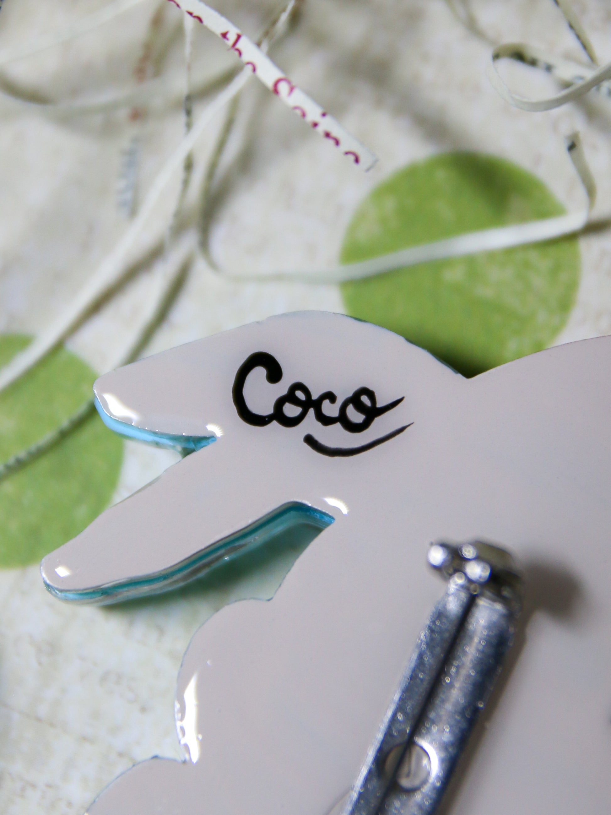 This brooch is made from 7 pieces of hand-painted acrylic plates, assembled and coated with acrylic UV/LED resin and backed with a silver brooch pin.