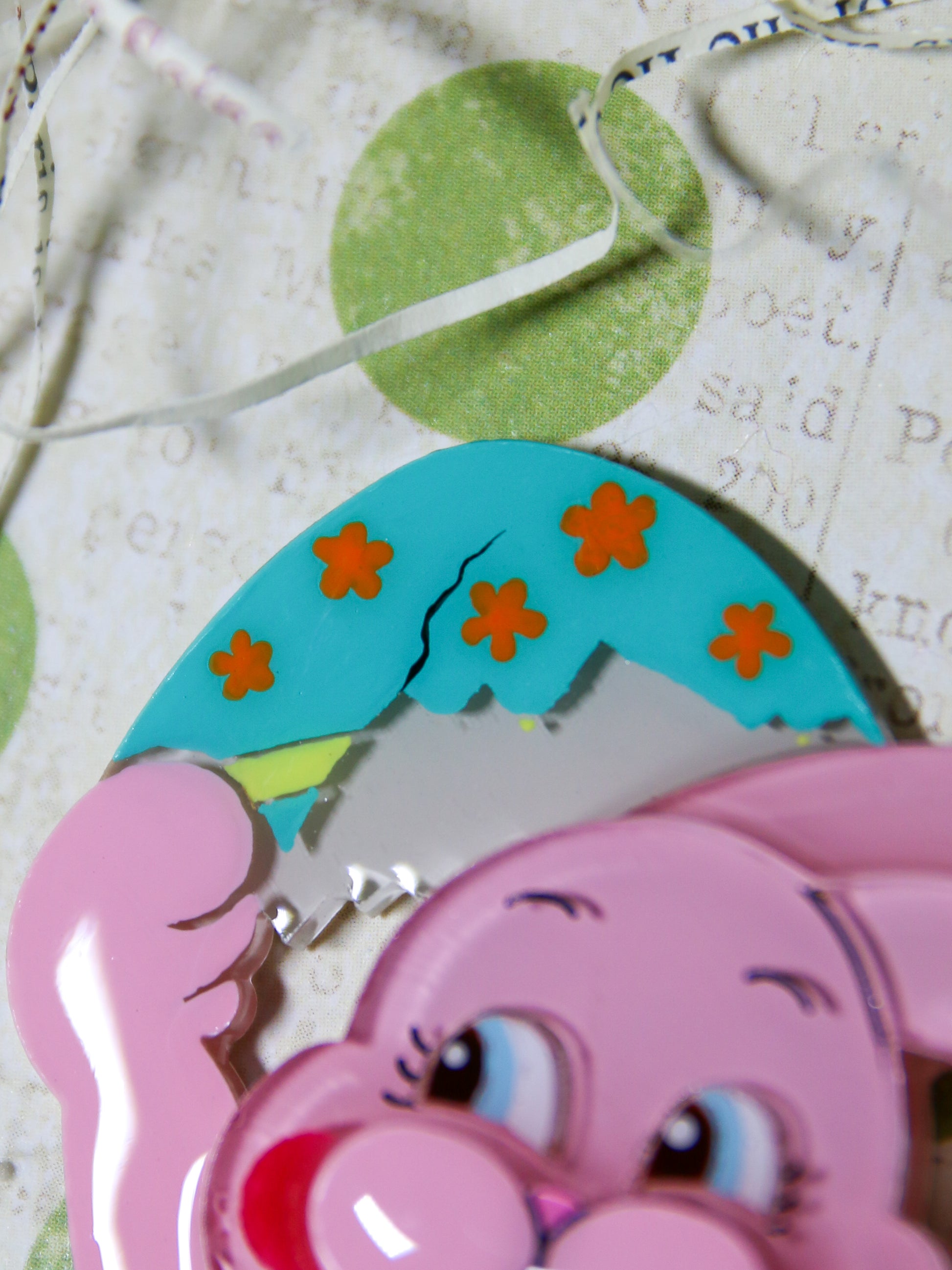 This brooch is made from 7 pieces of hand-painted acrylic plates, assembled and coated with acrylic UV/LED resin and backed with a silver brooch pin.
