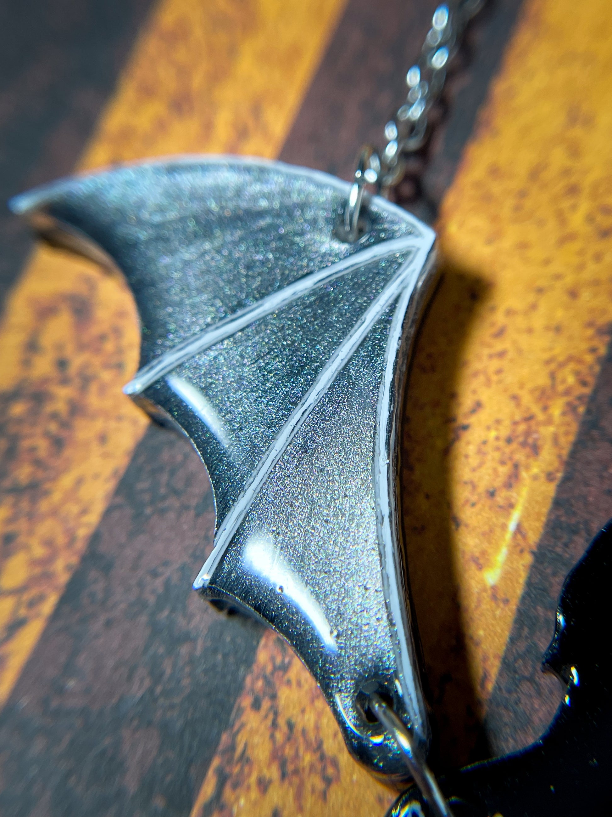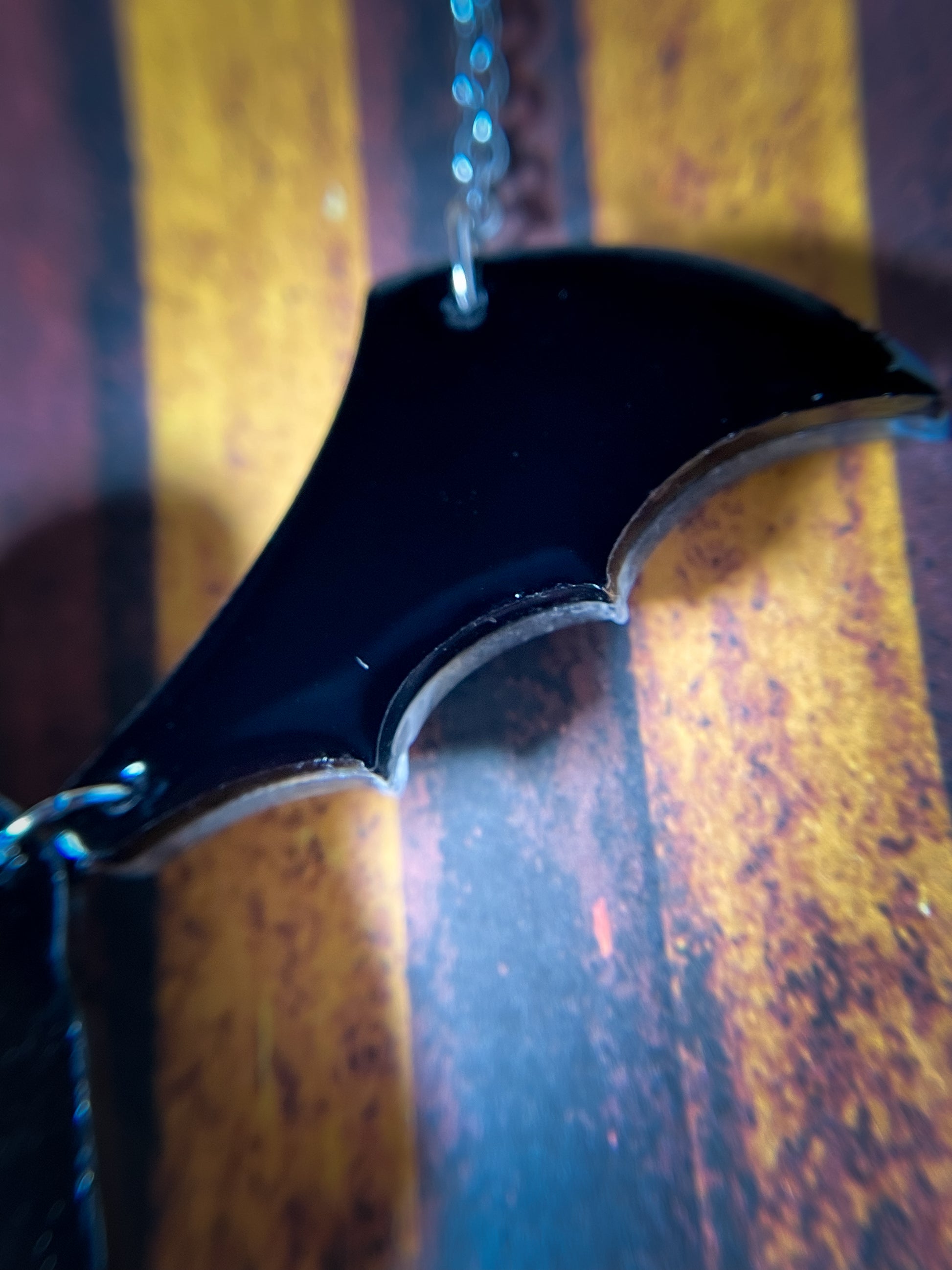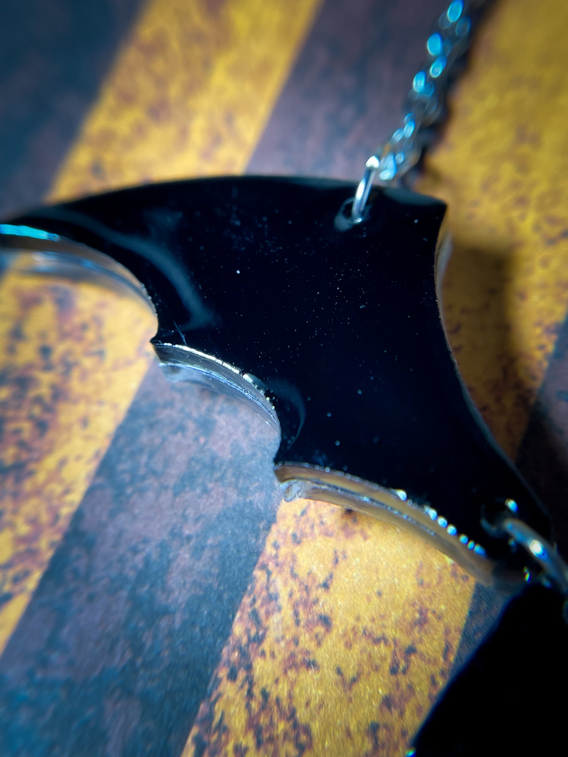 This necklace is made from 31 pieces of hand-painted acrylic plates, assembled and coated with acrylic UV/LED resin and finished with a silver surgical stainless steel chain with an extender.