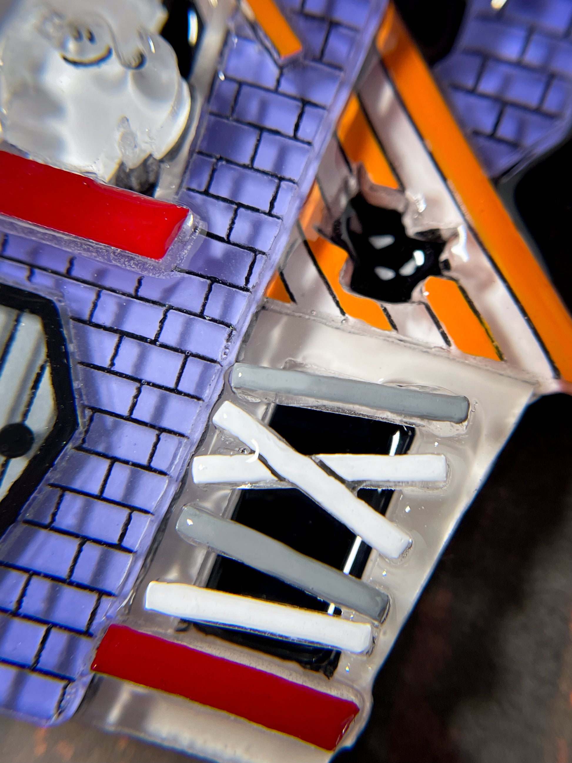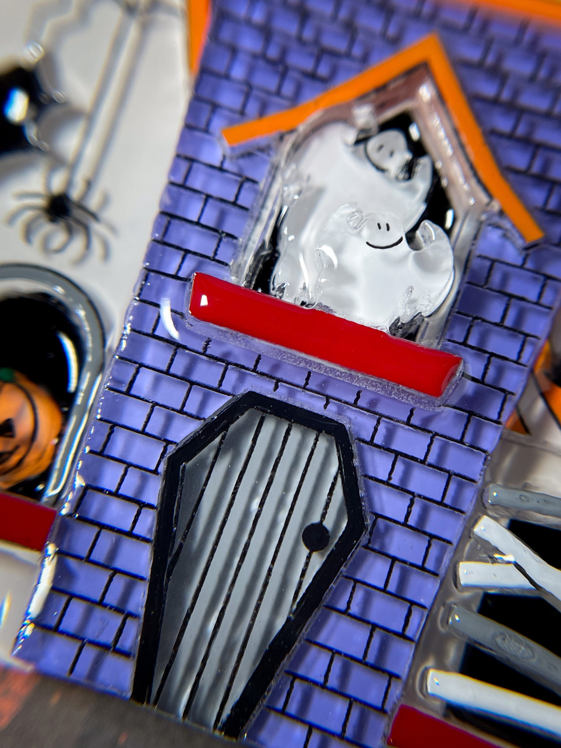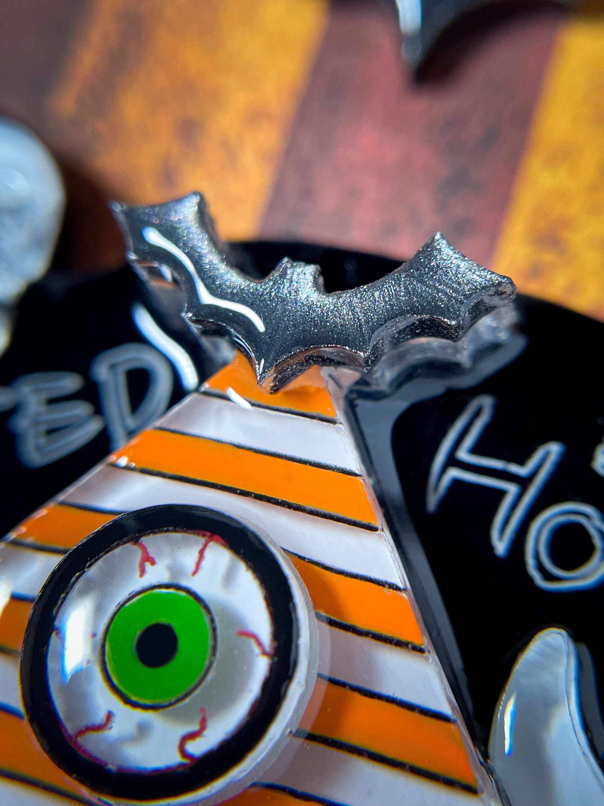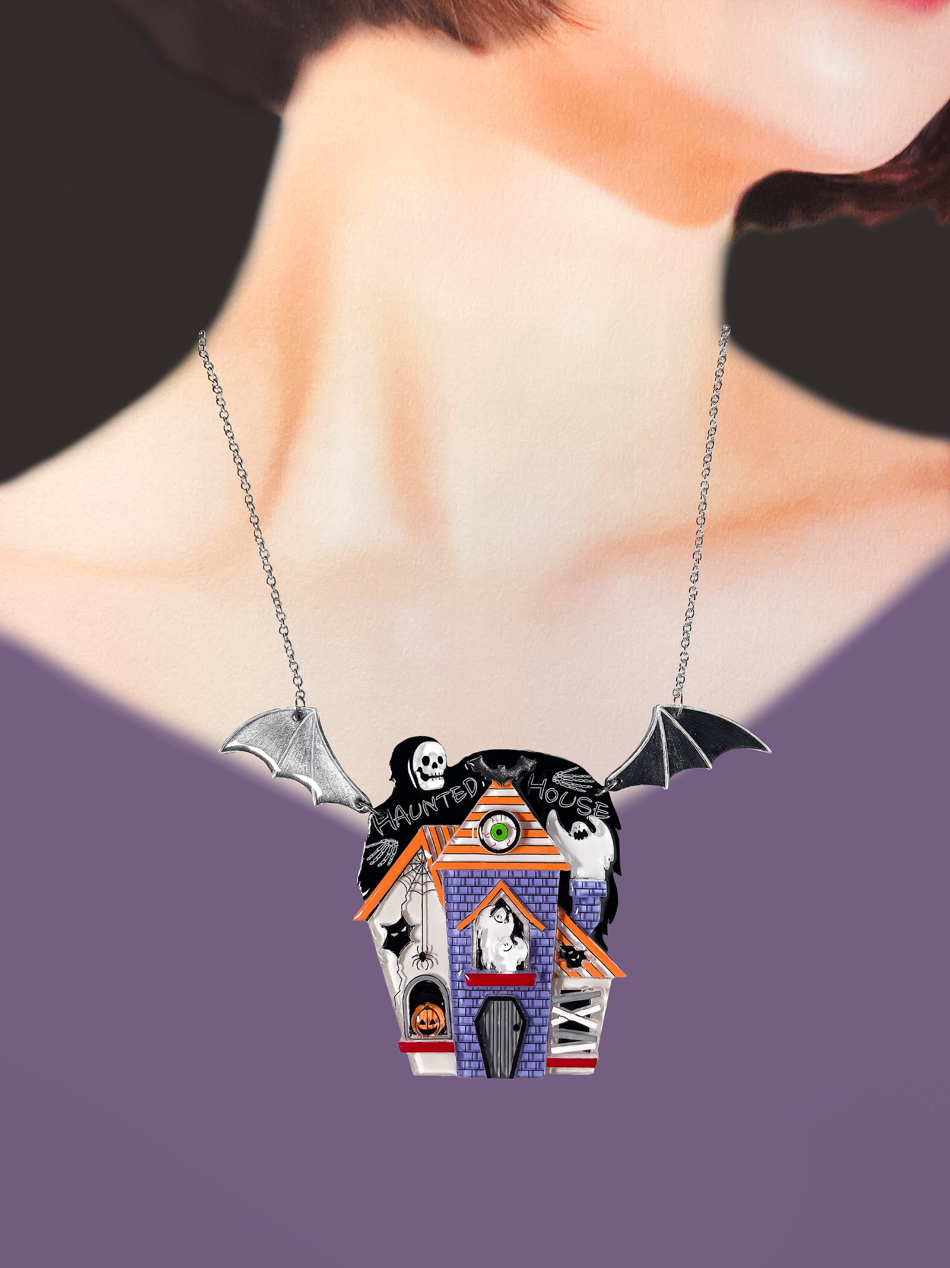 This necklace is made from 31 pieces of hand-painted acrylic plates, assembled and coated with acrylic UV/LED resin and finished with a silver surgical stainless steel chain with an extender.