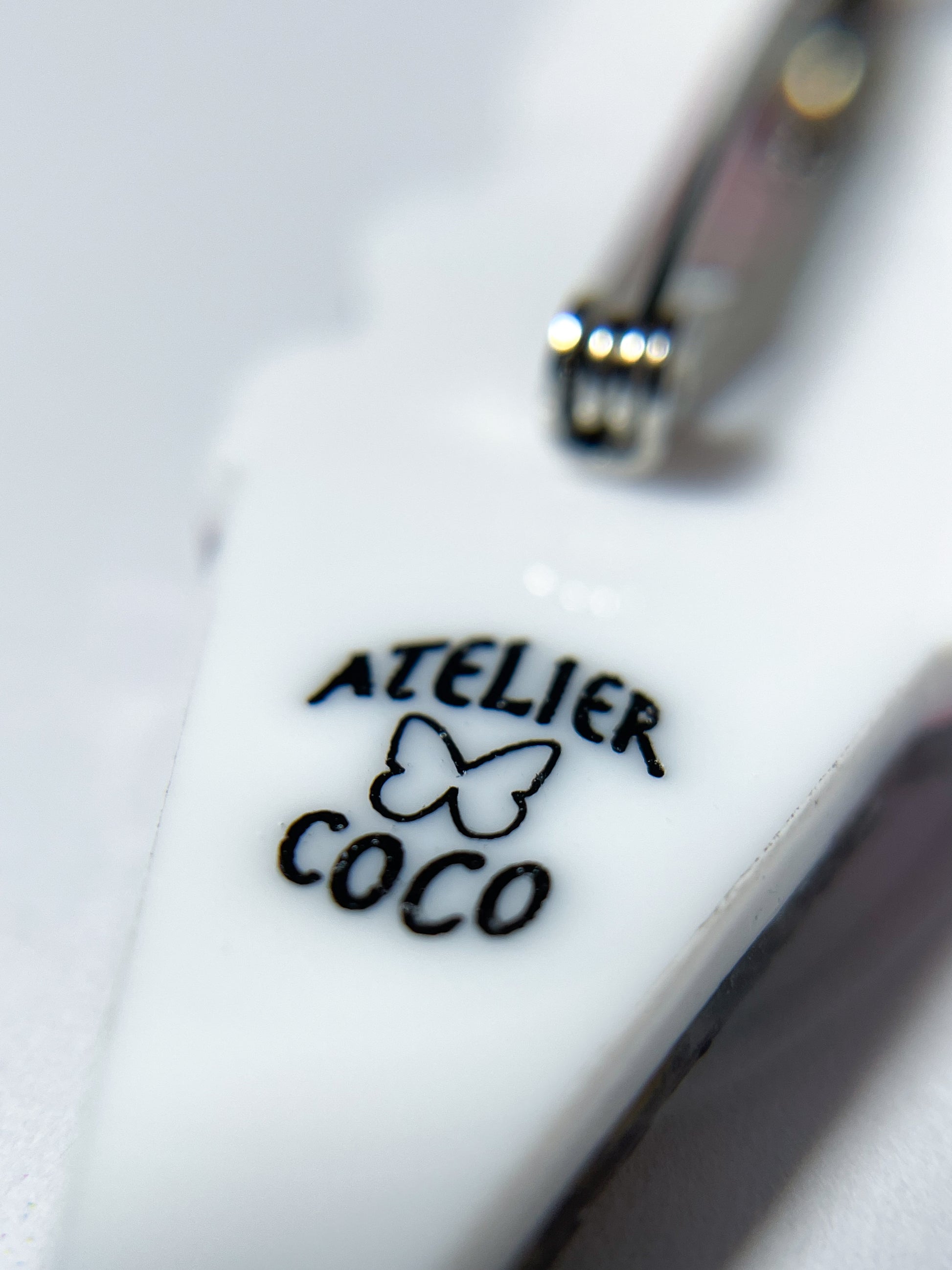 Original design by a Japanese accessory artist Coco and each brooch has the "ATELIER COCO" logo on the back.