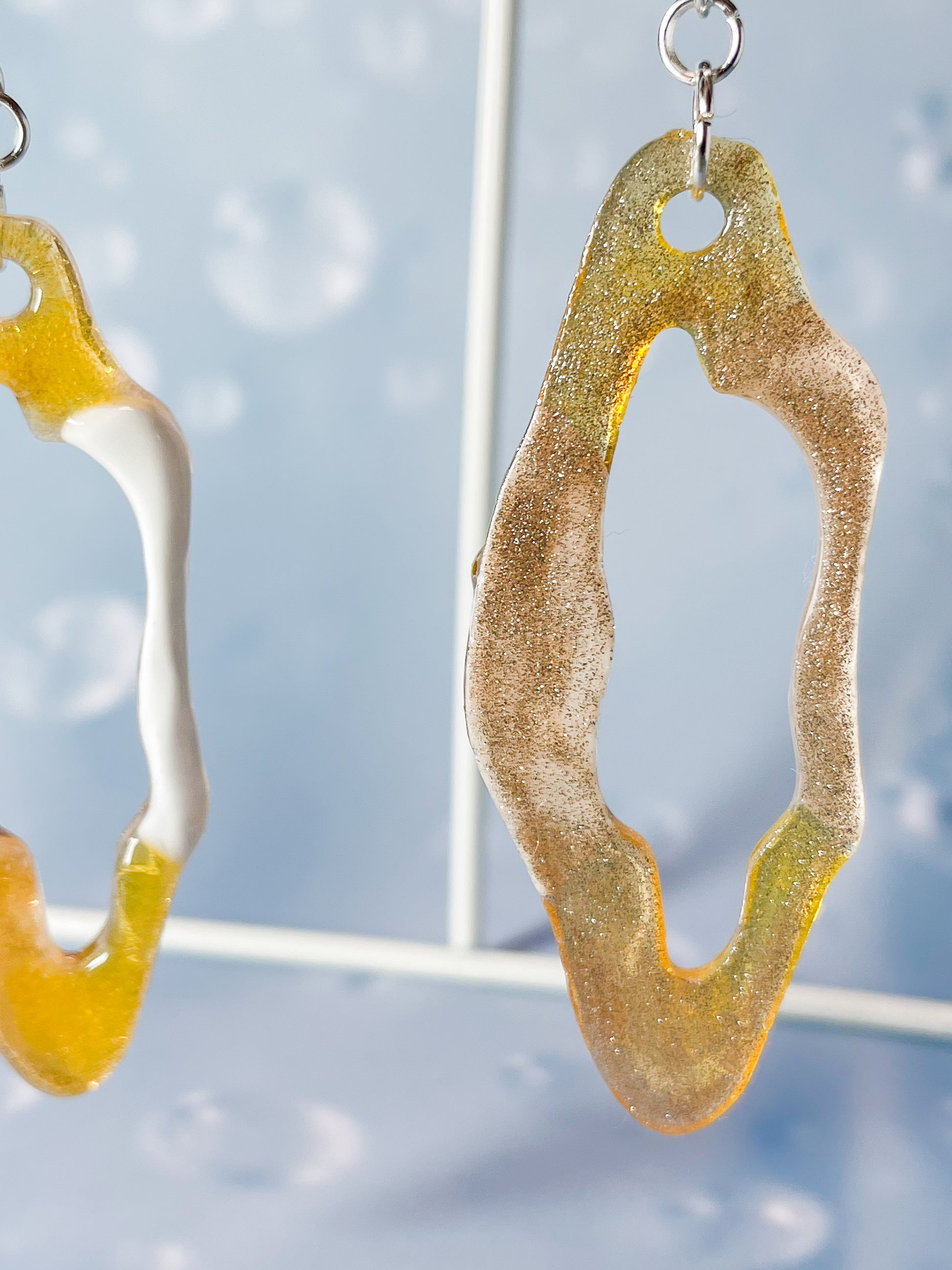 Those earrings are made from 2 pieces of acrylic plates, hand-painted and coated with acrylic UV/LED resin and finished with hypoallergenic silver hooks.