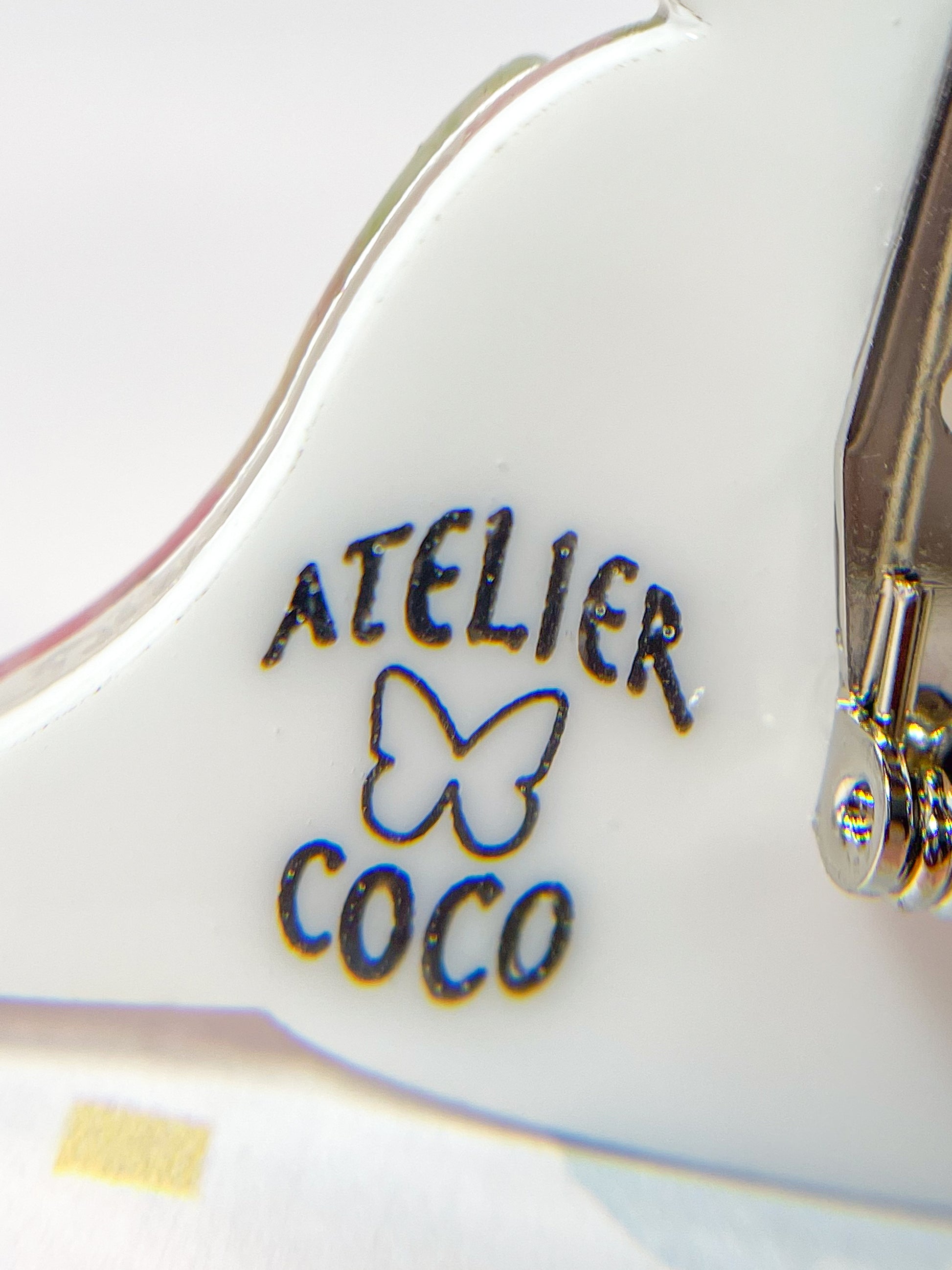Original design by a Japanese accessory artist Coco and each brooch has the "ATELIER COCO" logo on the back.