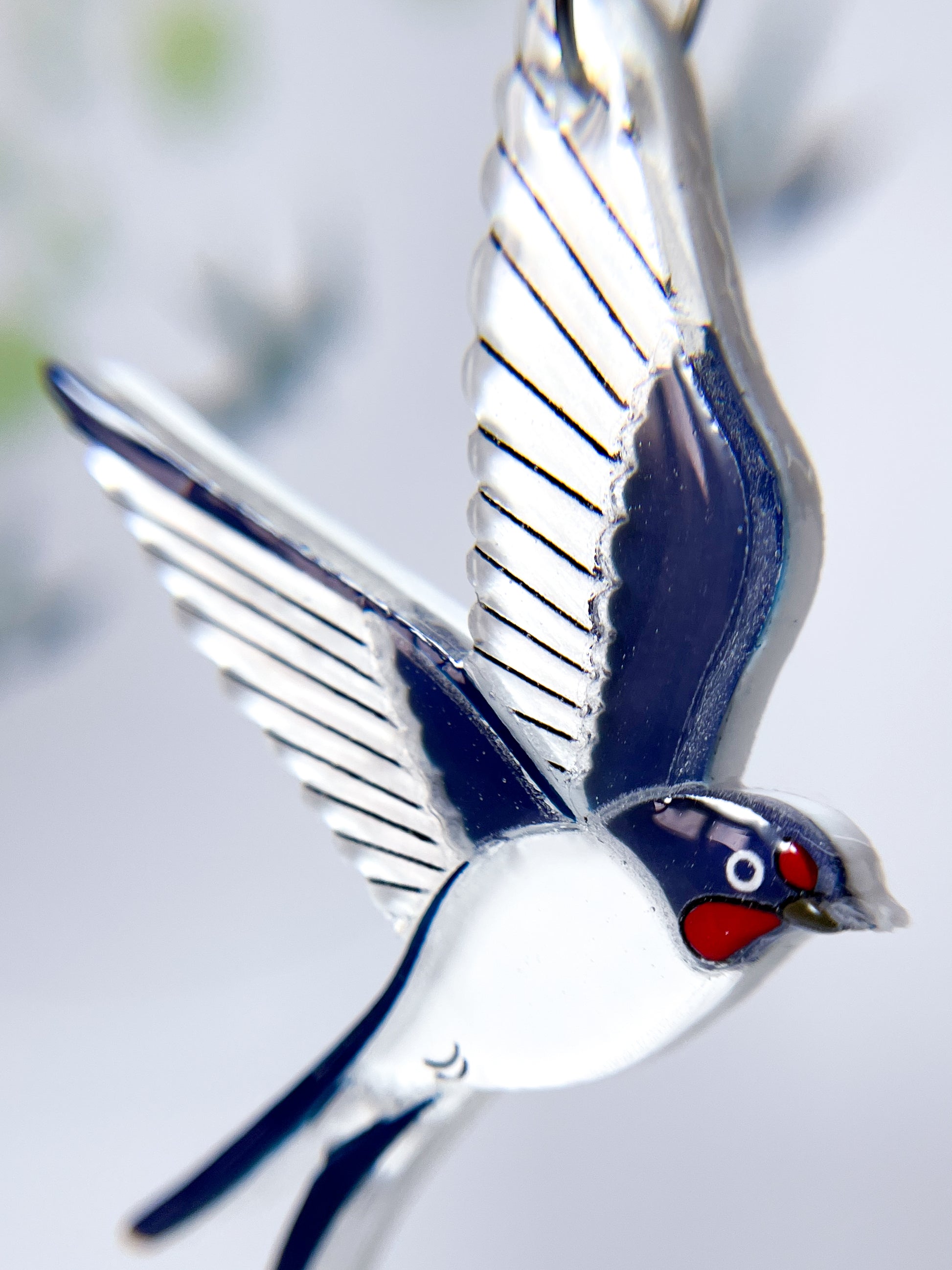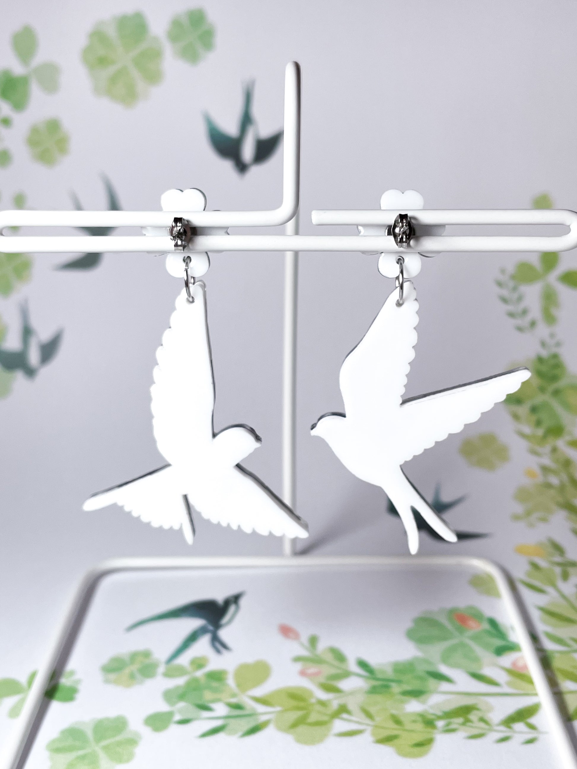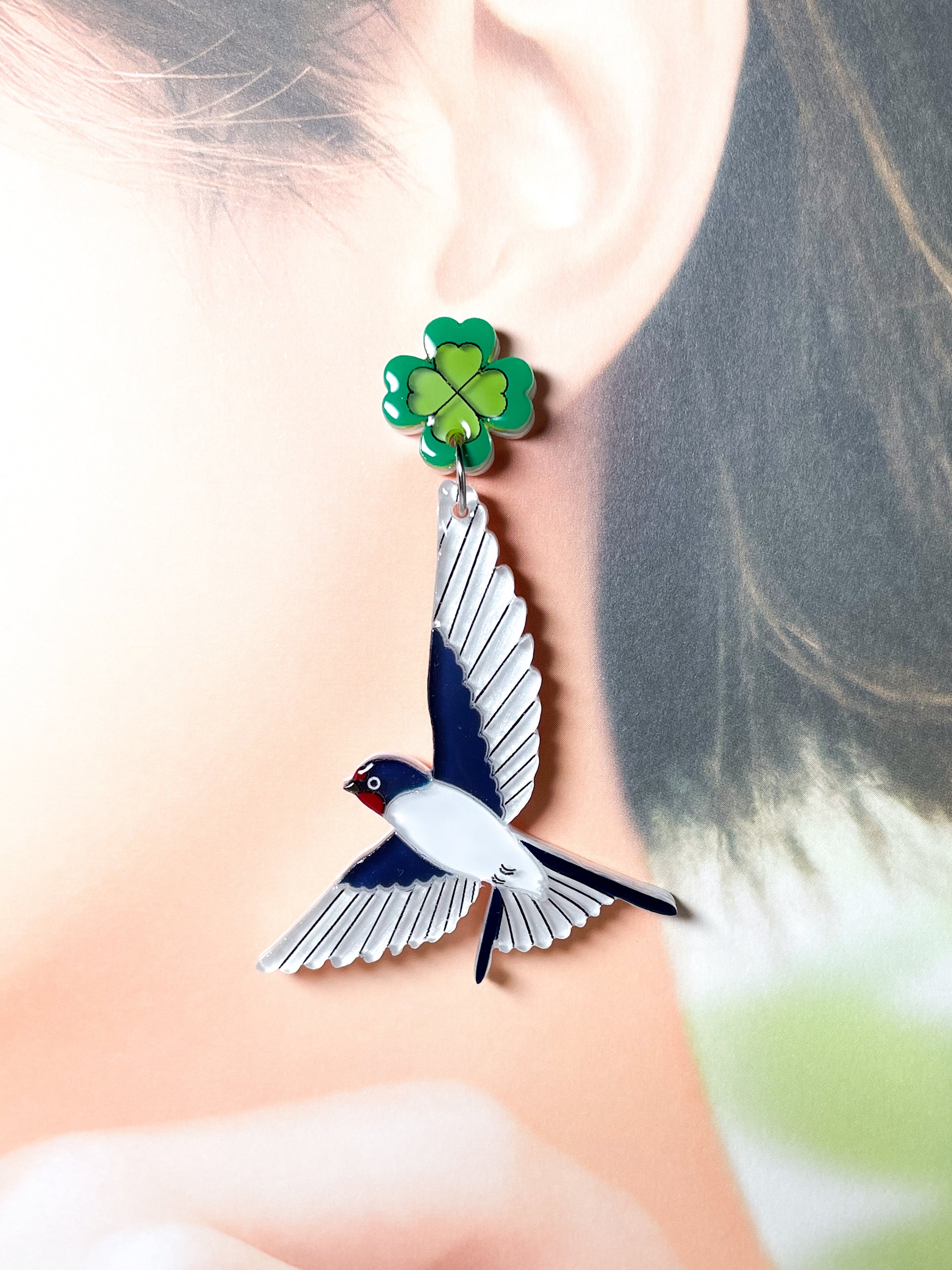 These earrings are made from 20 pieces of acrylic plates, hand-painted and coated with acrylic UV/LED resin and finished with silver-plated surgical stainless steel studs.