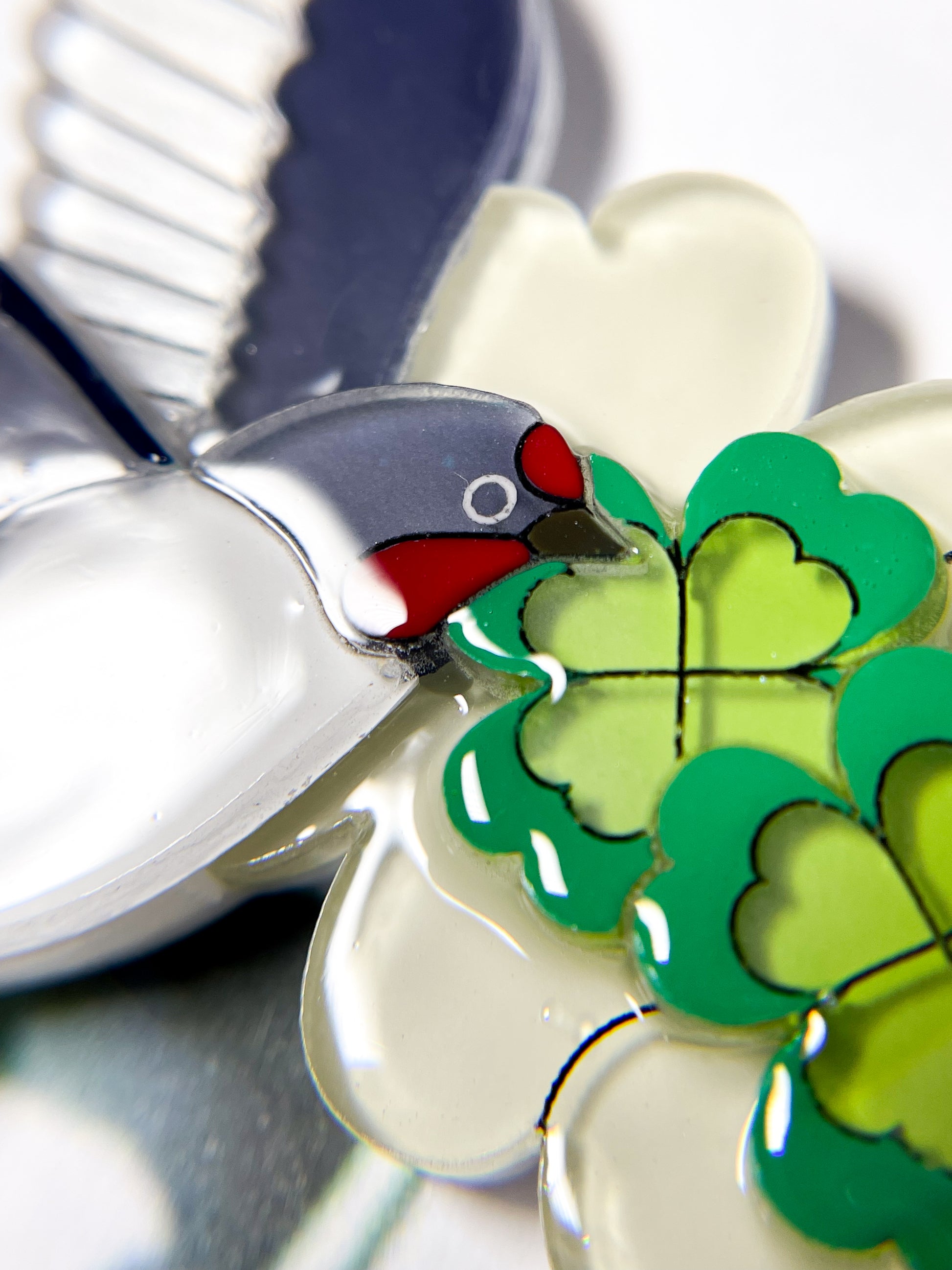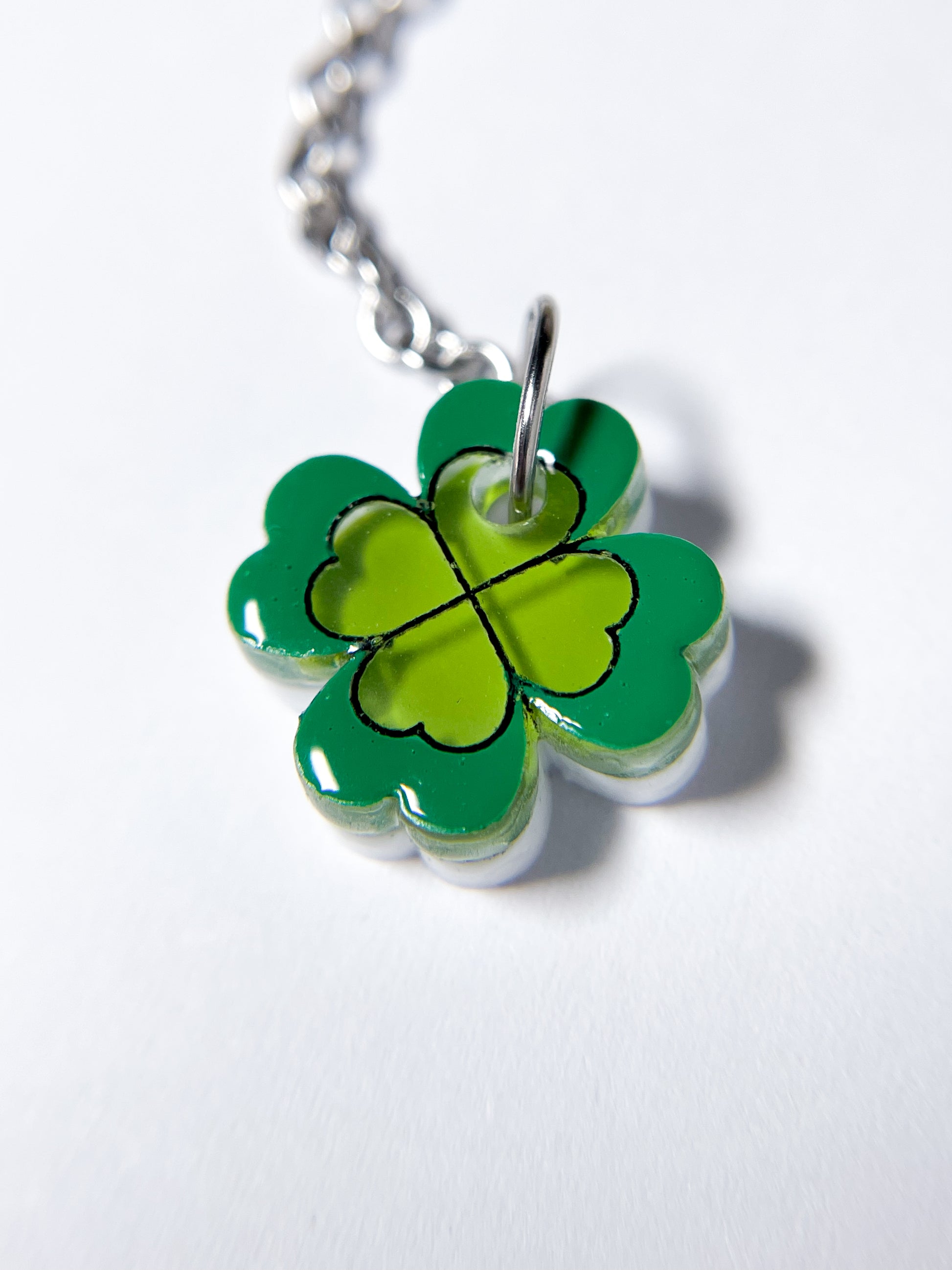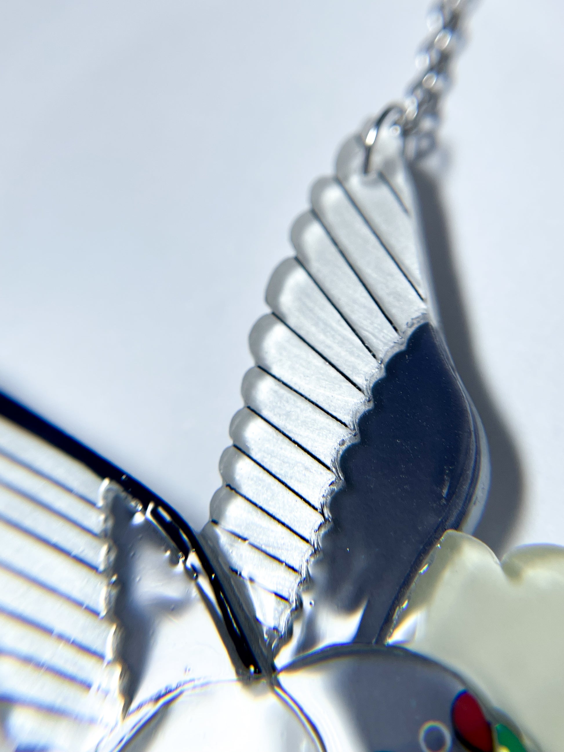 This necklace is made from 22 pieces of hand-painted acrylic plates, assembled and coated with acrylic UV/LED resin and finished with a silver surgical stainless steel chain with an extender.